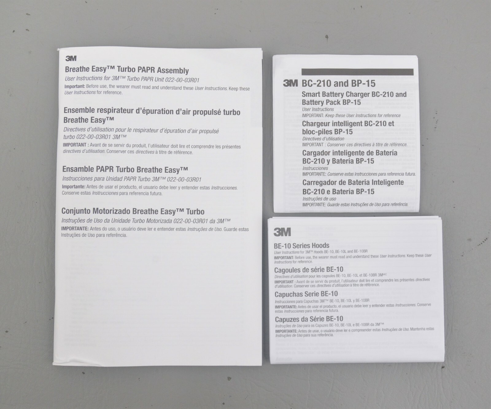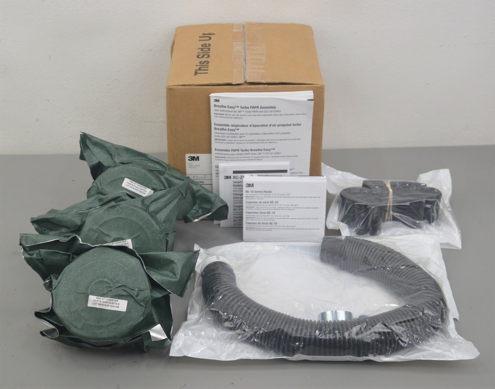 This New, 3M, Breathe Easy, Butyl Rubber Hood Respirator Conversion Kit, RBE-HUP, is in excellent unused condition.  These items were removed from their original packaging for photograph purposes only.  Includes Hood Breathing Tube RBE-BTH, Decon Belt RBE-BLT, (3) Canisters RBE-57 and User Instructions.  This kit comes with a 30 day satisfaction guarantee.  Includes everything in the pictures and nothing else.