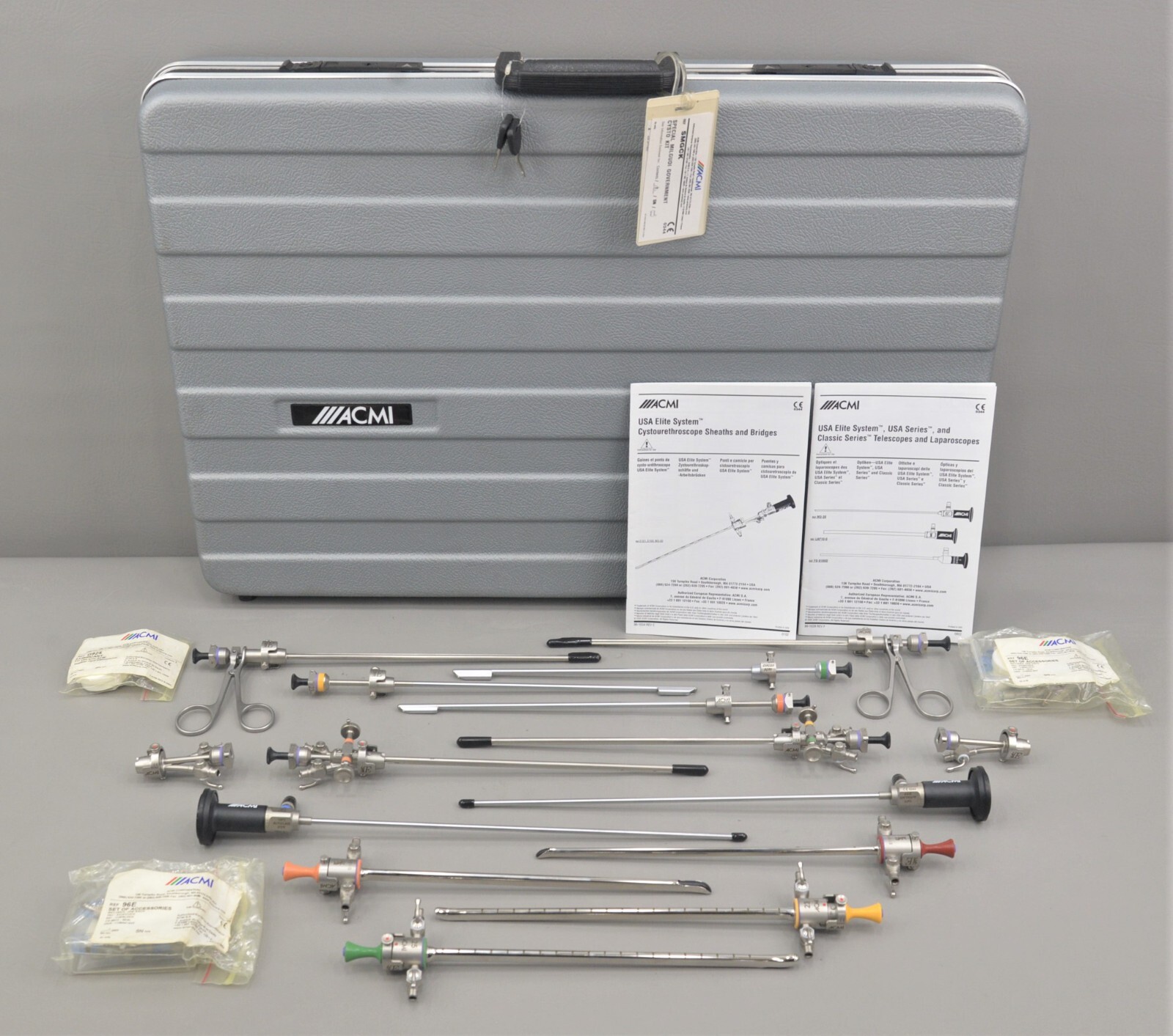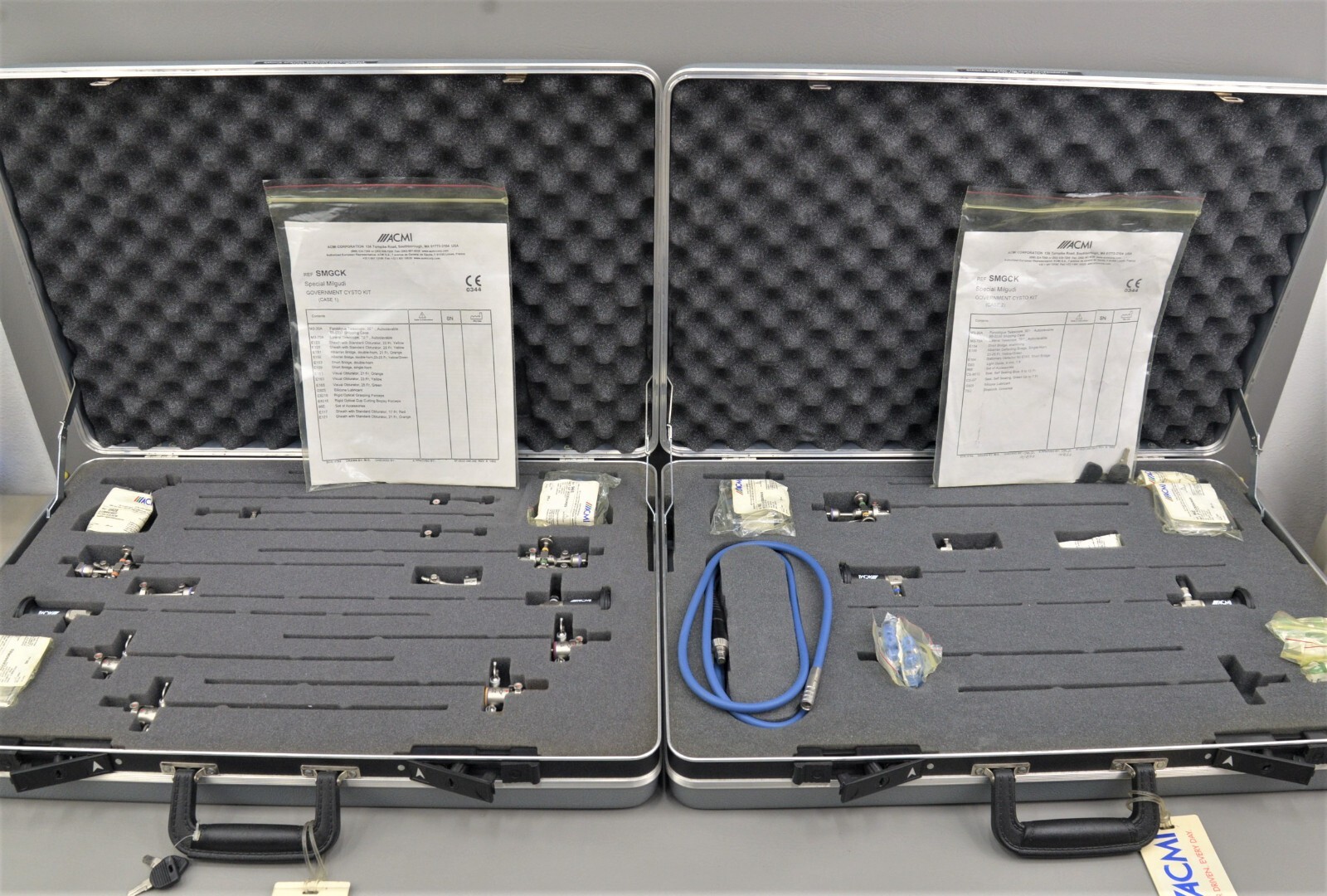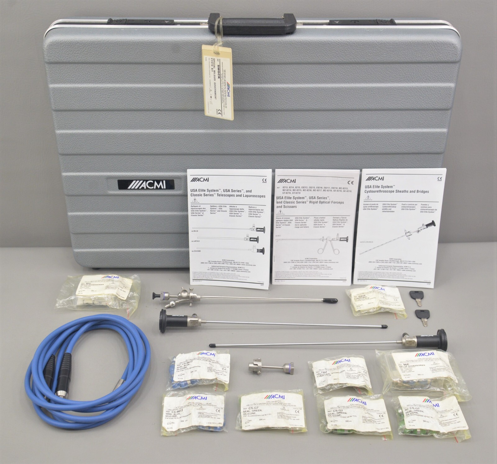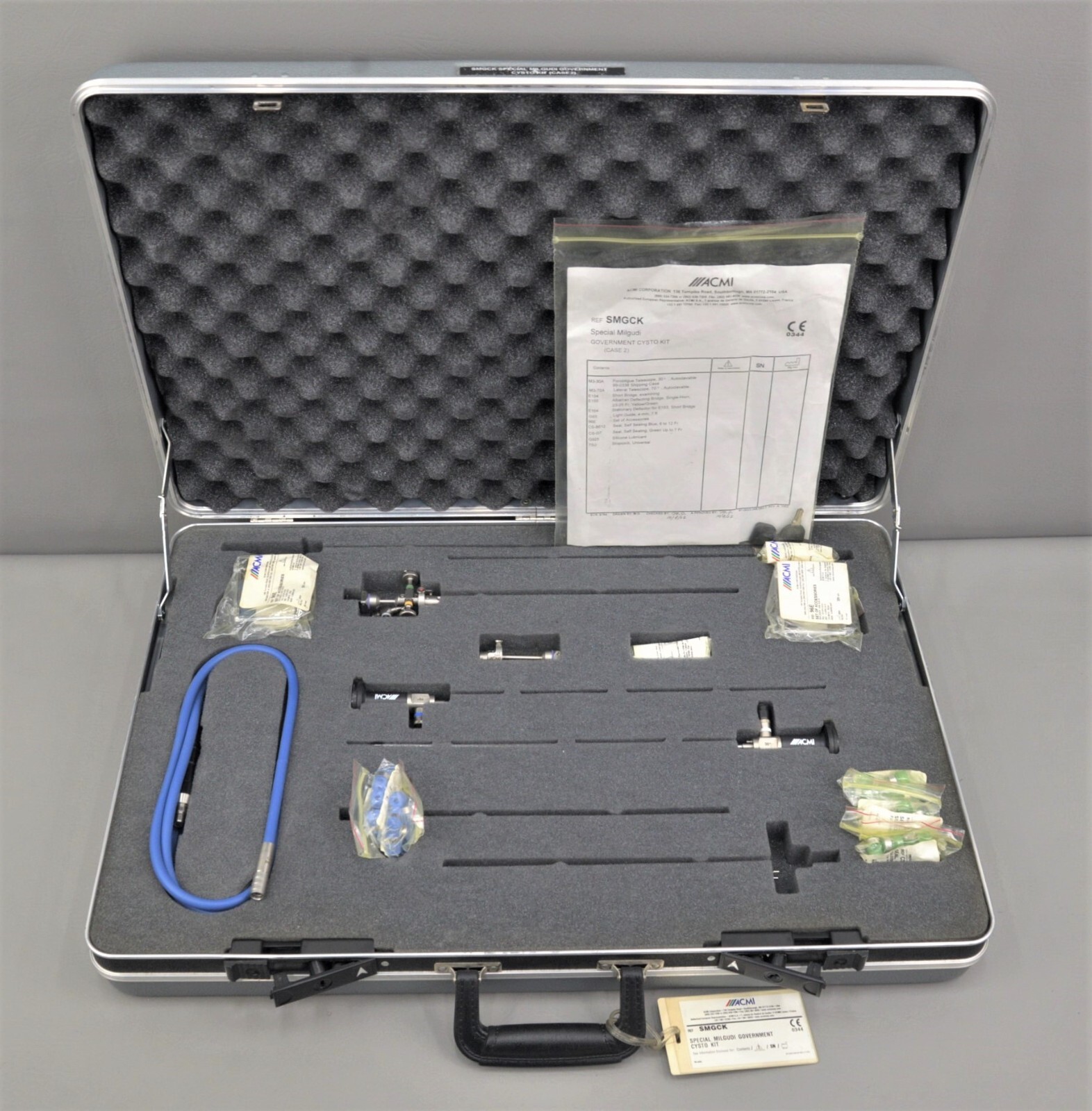 This ACMI Elite System Special Milgudi Government Cystoscopic Kit SMGCK is in excellent condition. The overall cosmetic condition of this kit is excellent with the exception of a few minor scuff marks on the cases associated with previous handling (see photo). Please see list of included items below. This set comes with a 30 day satisfaction guarantee! Includes everything displayed in the photos and nothing else.