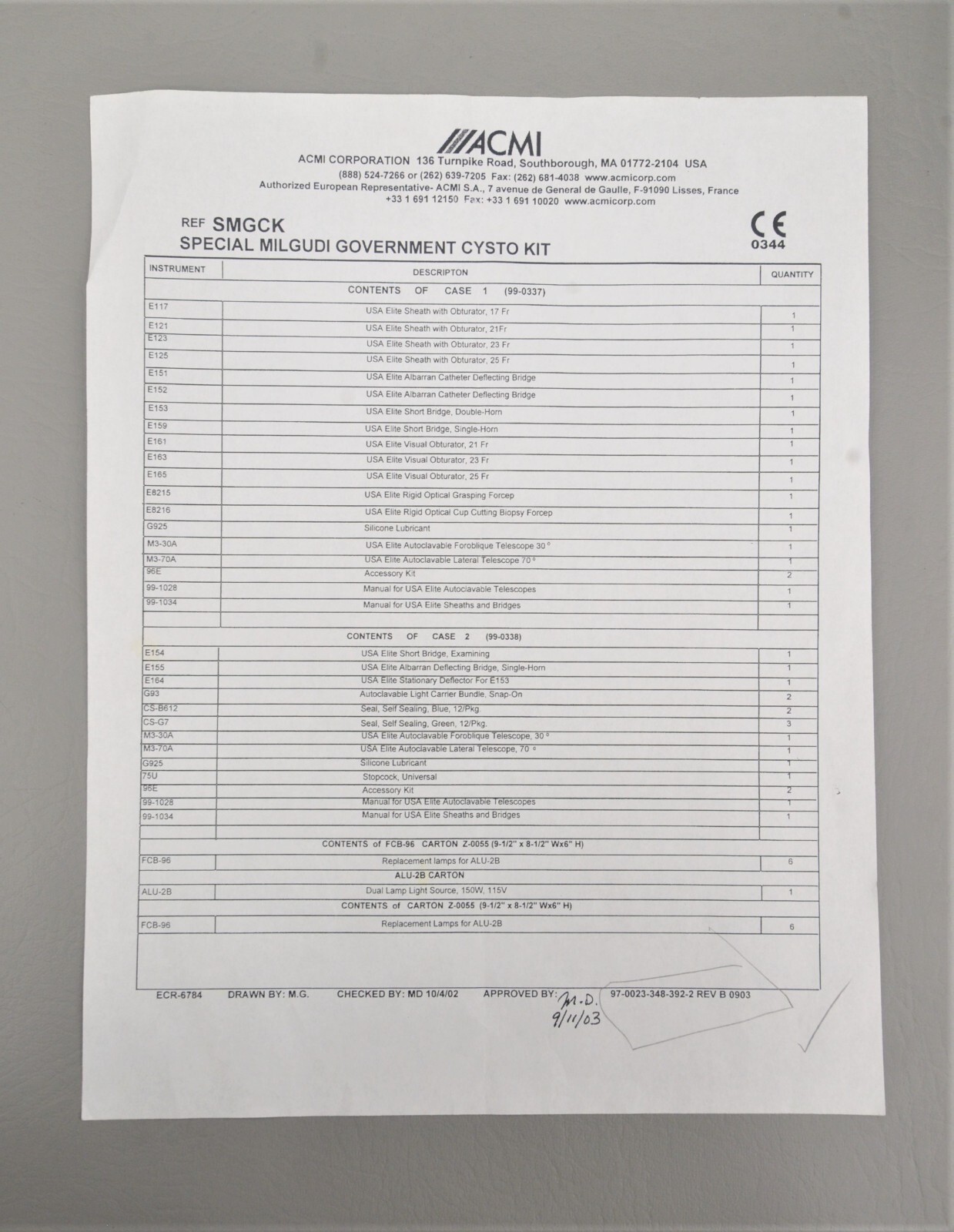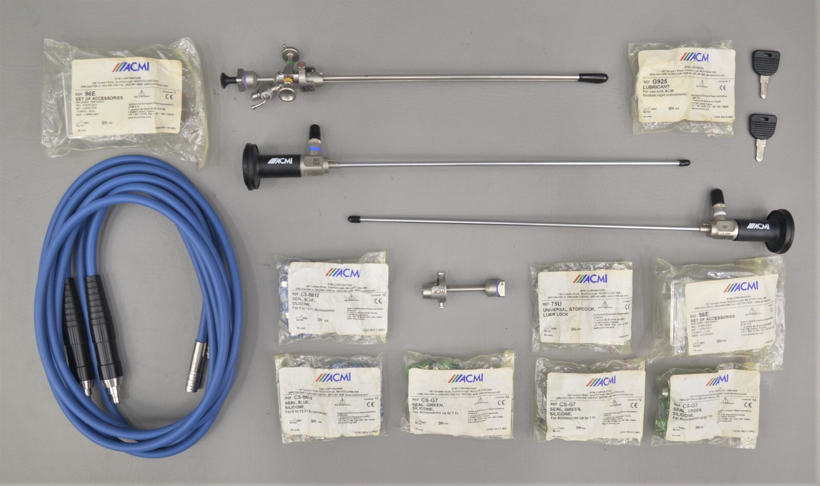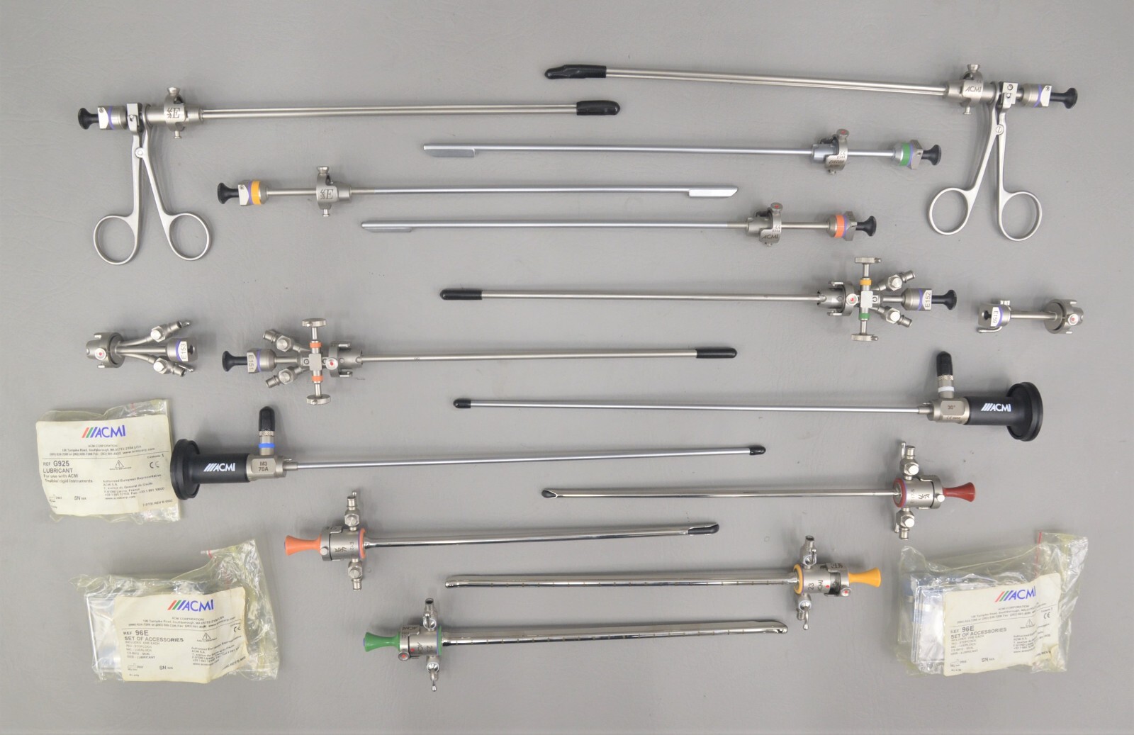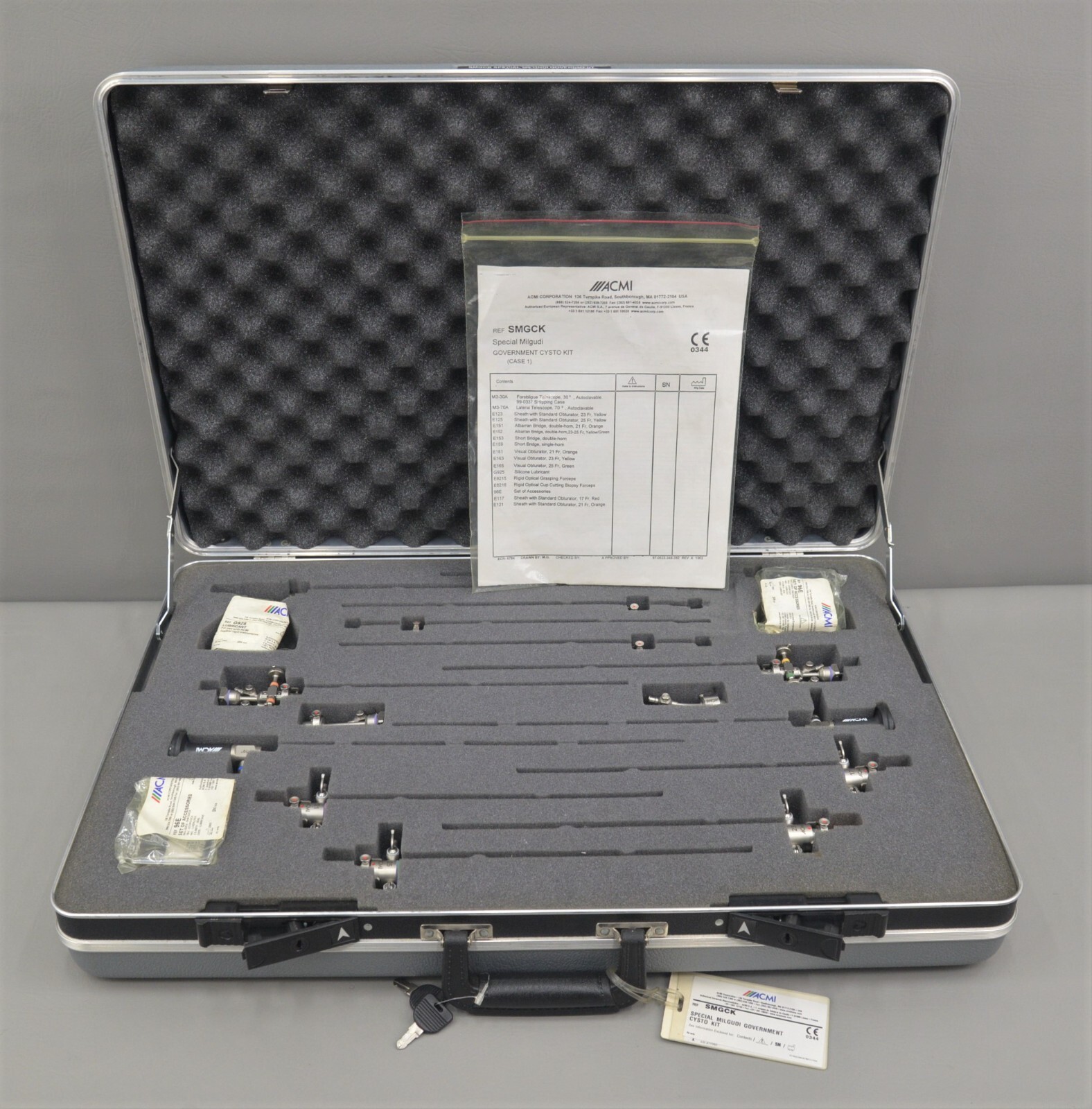 This ACMI Elite System Special Milgudi Government Cystoscopic Kit SMGCK is in excellent condition. The overall cosmetic condition of this kit is excellent with the exception of a few minor scuff marks on the cases associated with previous handling (see photo). Please see list of included items below. This set comes with a 30 day satisfaction guarantee! Includes everything displayed in the photos and nothing else.