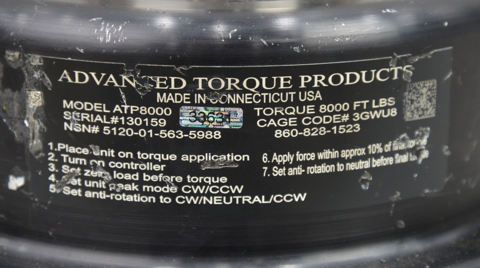 This Advanced Torque Products ATP8000 Torque Multiplier is in good condition. It powers on and responds to menu selection. The overall cosmetic condition is good with the exception of a few scuffs from pervious use (see photos). This item comes with a 30 day satisfaction guarantee. Does not include display battery charger. A serial cable was used for testing but is not included. Includes every other item in the pictured and nothing else.