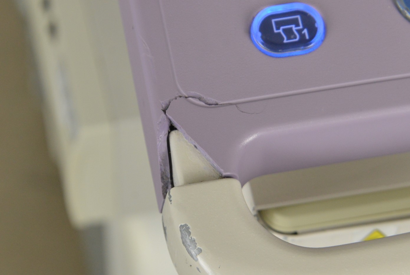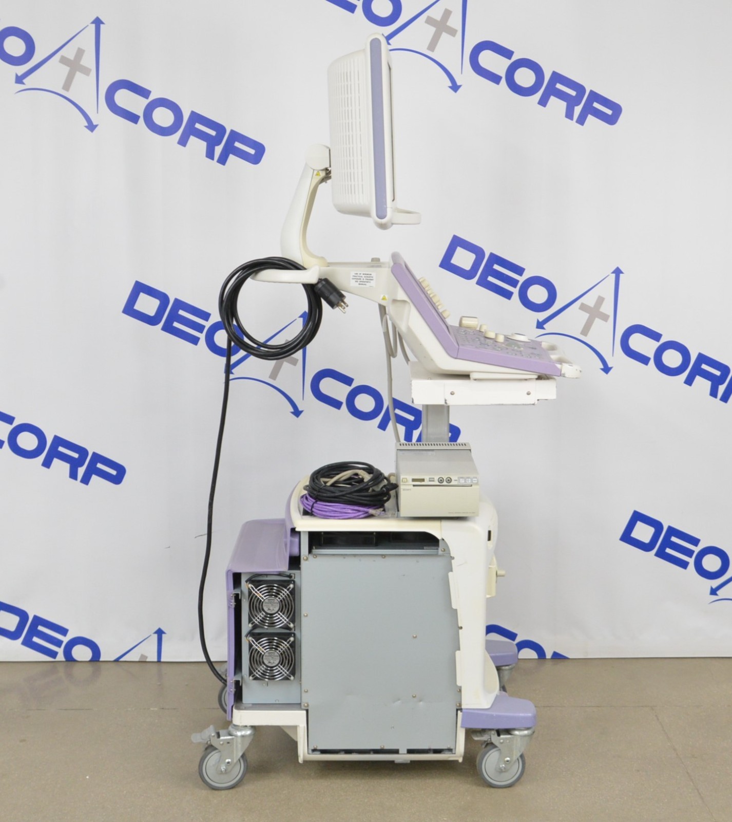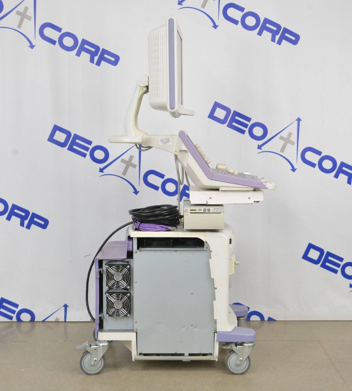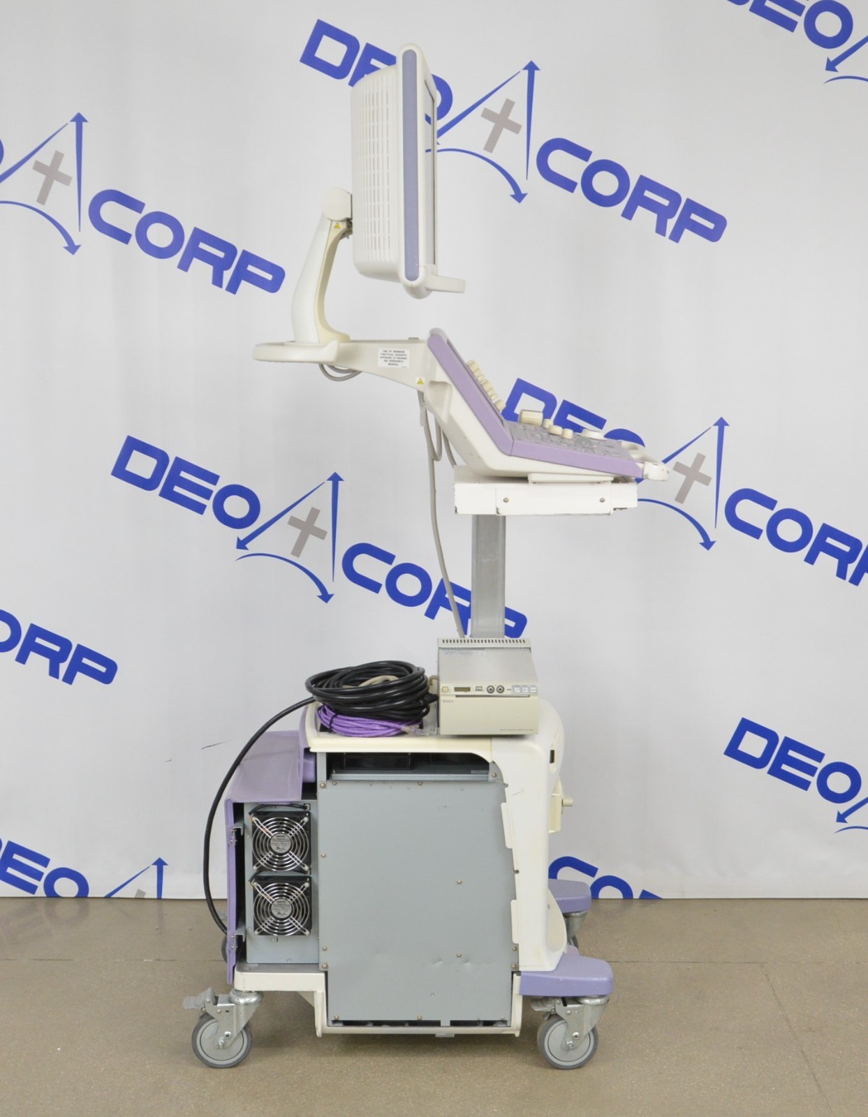 This Aloka Prosound Alpha 6 Imaging System W/ Aloka UST-5542 Handpiece is in good working condition. The unit powers on properly and responds to selections. The display screen produces a clear image. The connections are clean and in good condition. There are scuff marks, cracks, and discoloration from previous use (see photos). The left side panel is missing. The handpiece appears to have dropout and the cable jacket is torn; however, nothing is exposed. This unit comes with a 30 day money back guarantee. Includes everything in the pictures and nothing else.