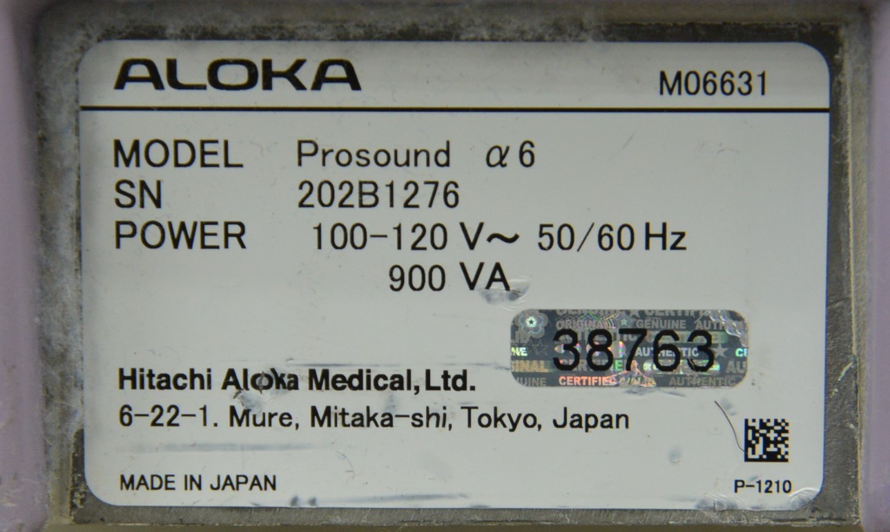 Aloka Prosound Alpha 6 Imaging System W/ Aloka UST-5542 Handpiece