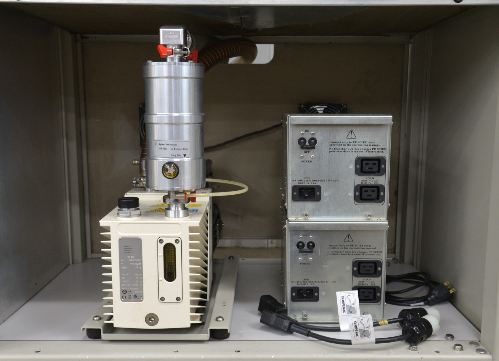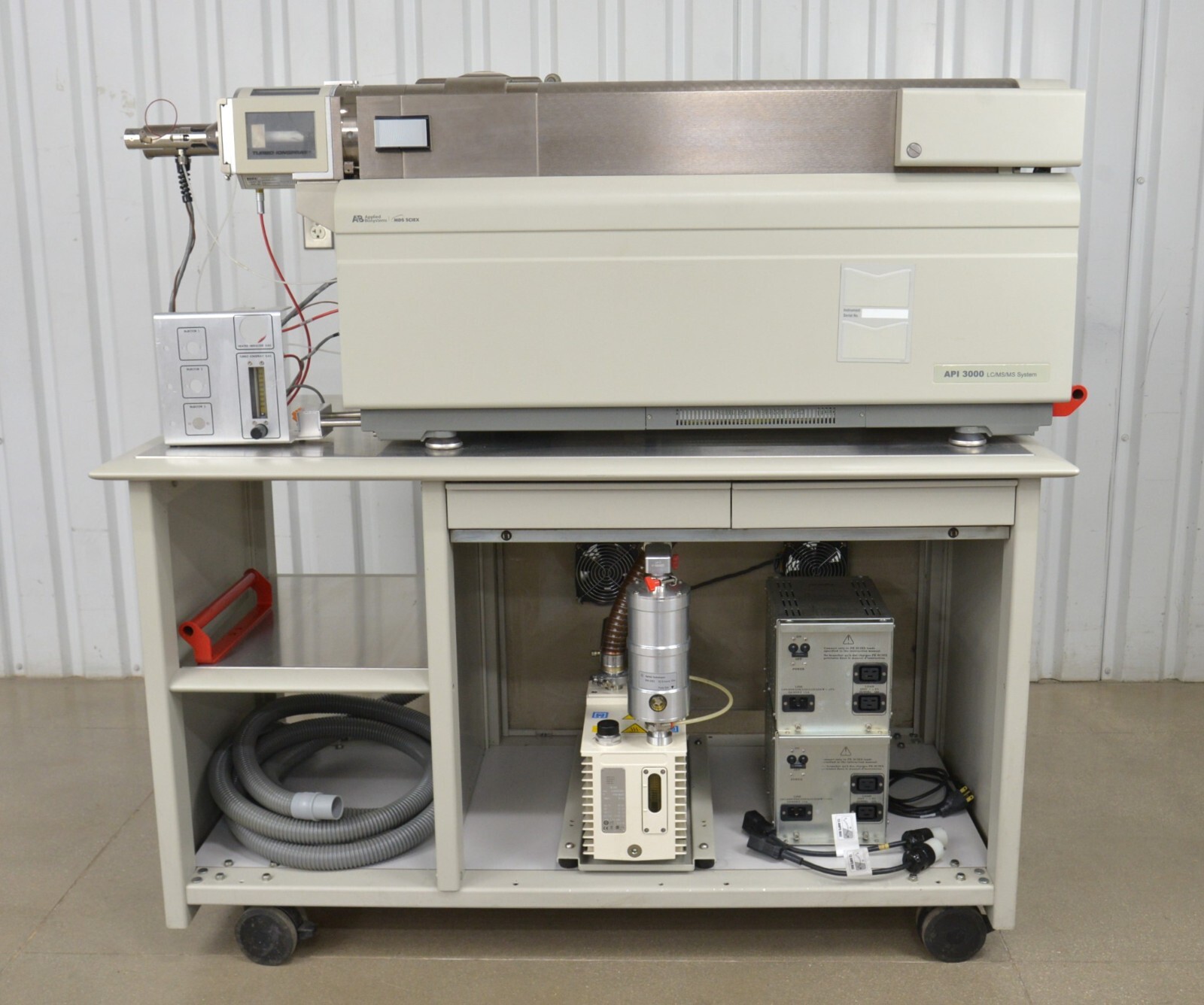 This Applied Biosystems MDS Sciex API 3000 LC/MS/MS Mass Spectrometer System is in good working condition. The system powers on properly. The connections are clean and in good condition. There are minor scuff marks from previous use (see photos). The unit comes with Varian DS 602 rotary pump and power supply. This unit comes with a 30 day satisfaction guarantee. Includes everything in the pictures and nothing else.