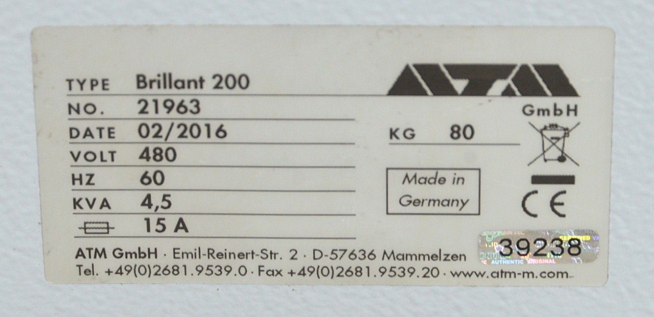 This ATM Brillant 200 Manual Metallographic Wet Abrasive Cut-Off Machine 480V came from a working environment and is in great cosmetic condition. The required voltage for this unit is 480V 3Ph. All connections are clean and in good condition. There is a missing power switch cover and minor scuff marks from previous use (see photos). This unit comes with a 30 day satisfaction guarantee. Includes everything in the pictures and nothing else.