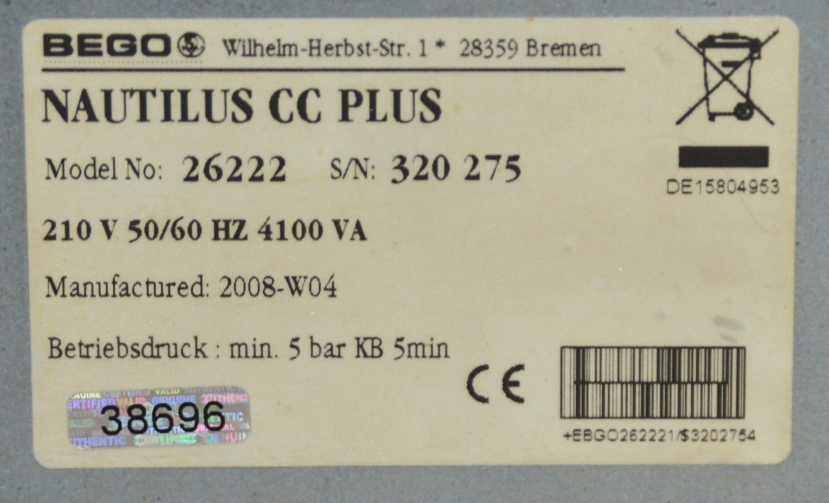 Bego Nautilus CC Plus Dental Vacuum Pressure Casting Machine