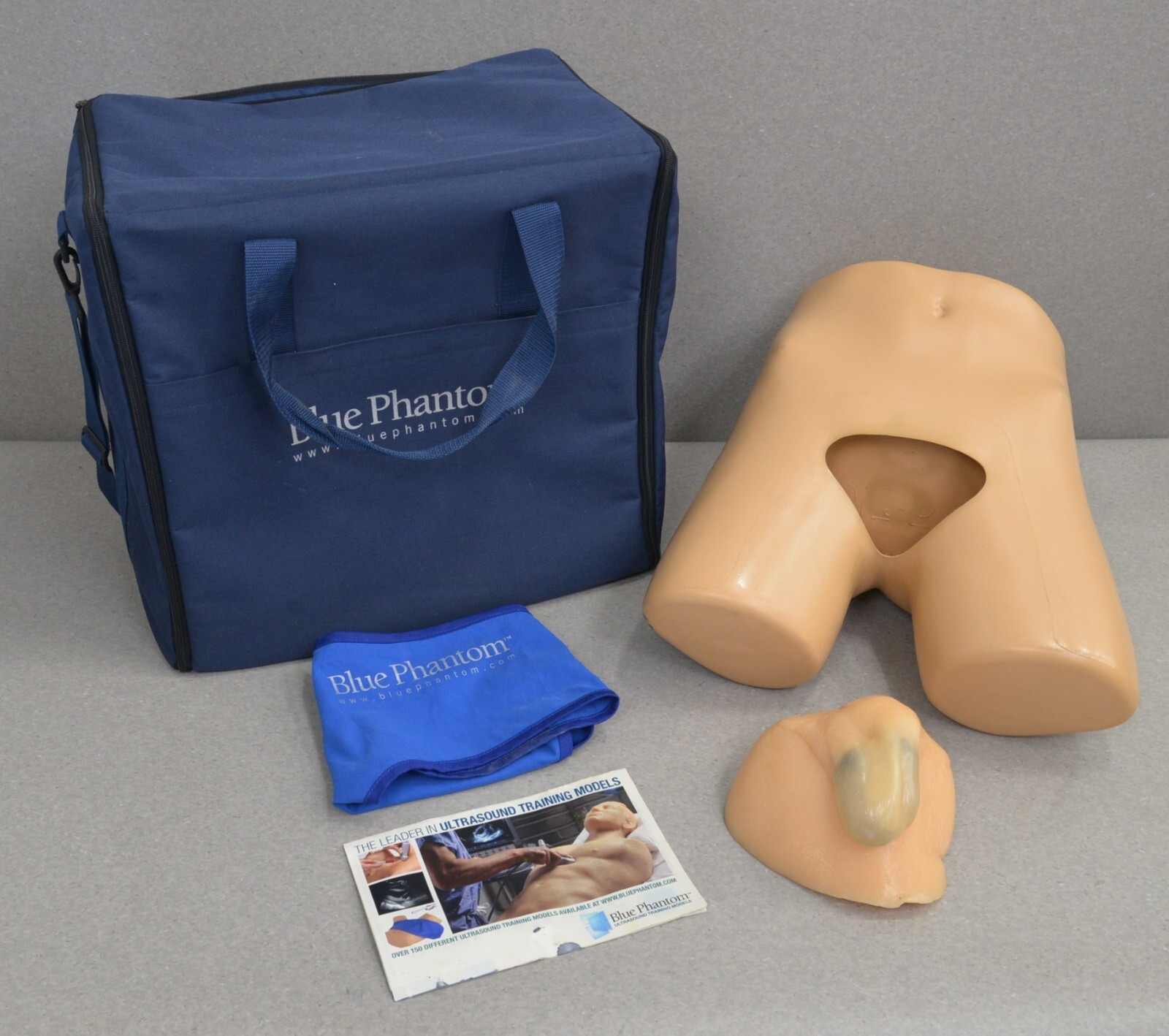 This Blue Phantom Imaging Scrotal Training Model is in good condition. There are minor marks and discoloration on the rubber skin from previous use (see photos). This unit comes with a 30 day satisfaction guarantee. Includes everything in the pictures and nothing else.