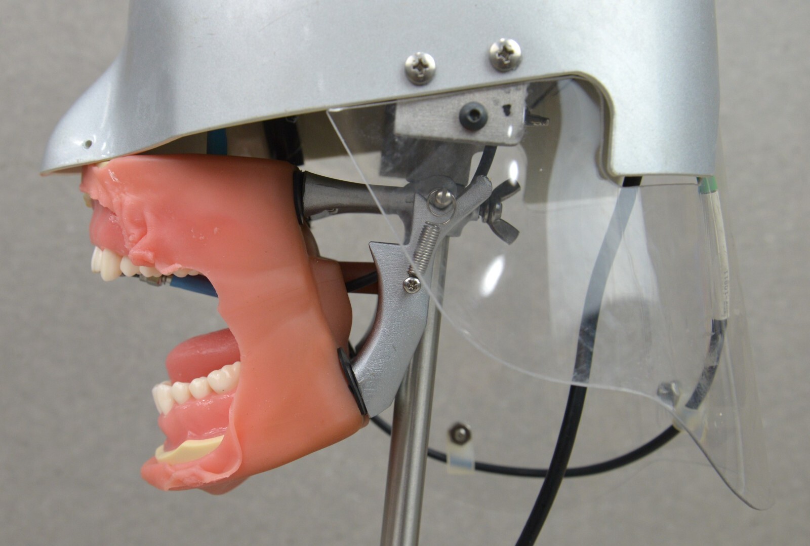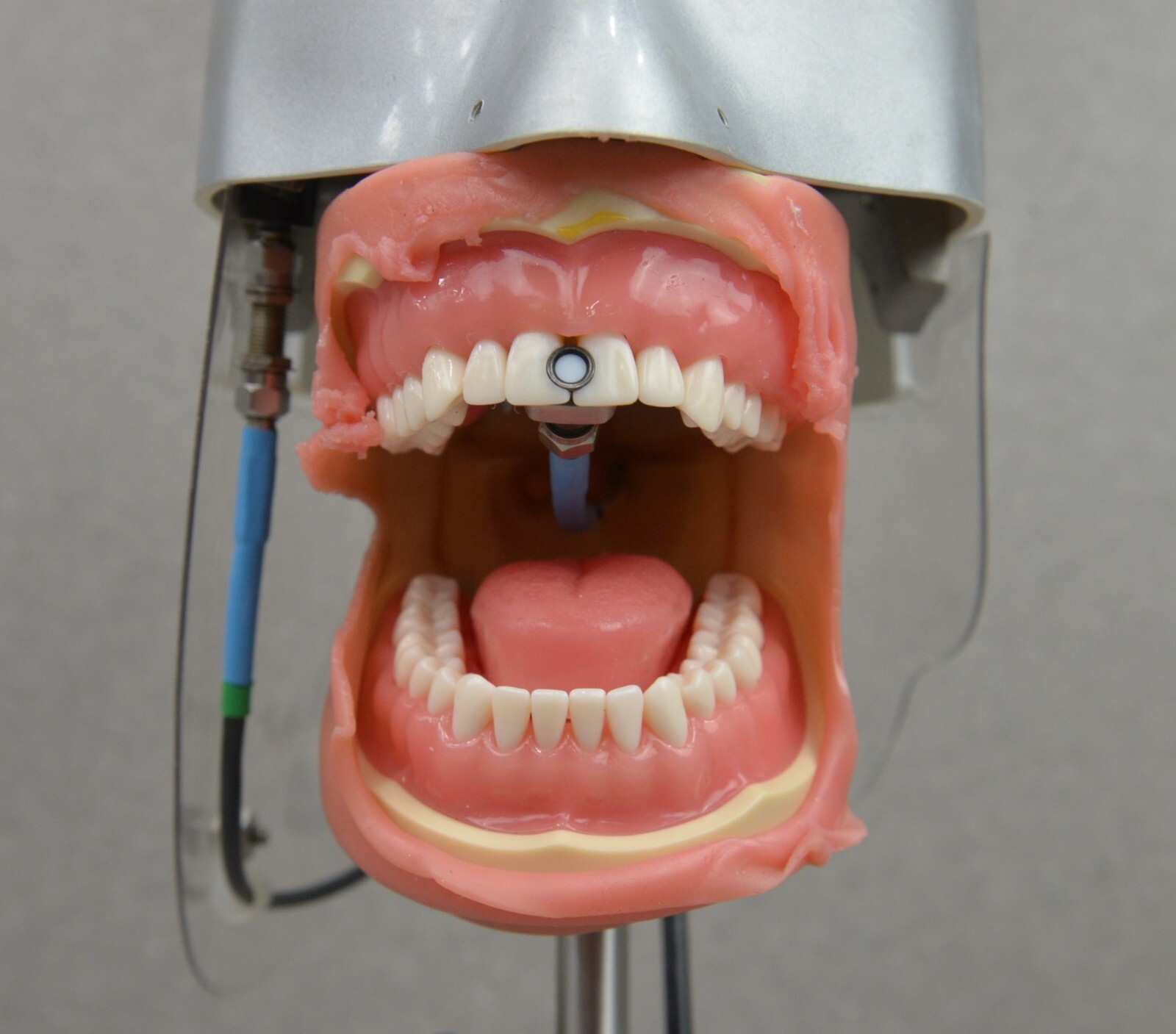 This BlueLight Analytics Marc Patient Simulator Light Resin Curing Trainer is in good working condition. The manual adjustments moves smoothly. The connections are clean and in good condition. There is minor minor tears in the rubber around the gums and cracks in the plastic around the head from previous use (see photos). This unit comes with a 30 day satisfaction guarantee. Includes everything in the pictures and nothing else.