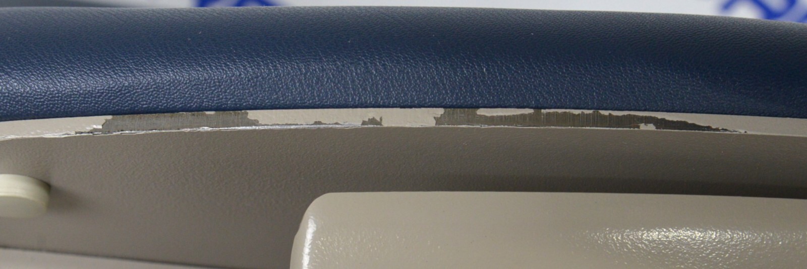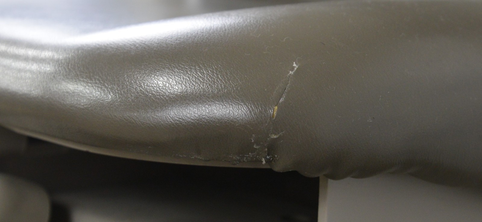 At the time of this listing there is 1 Royal Blue and 1 Dove Grey. The Dove Grey’s upholstery is torn on the crease of the table and there is small section of upholstery repaired on the seat. There are also cracks along the head section’s plastic. Please contact us for more information.