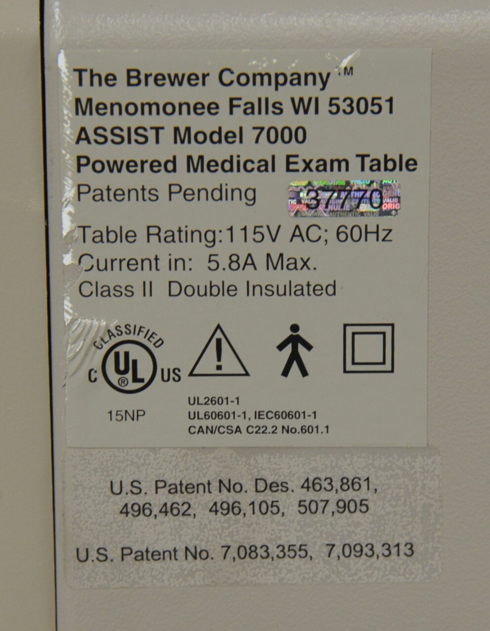 This Brewer Assist 7000 Power Procedure Table W/ Foot Switch is in great working condition. The unit powers on and all adjustment move properly. The footswitch responds properly to selections. There are minor scuff marks from previous use (see photos). This unit comes with a 30 day money back guarantee. Includes everything in the pictures and nothing else.