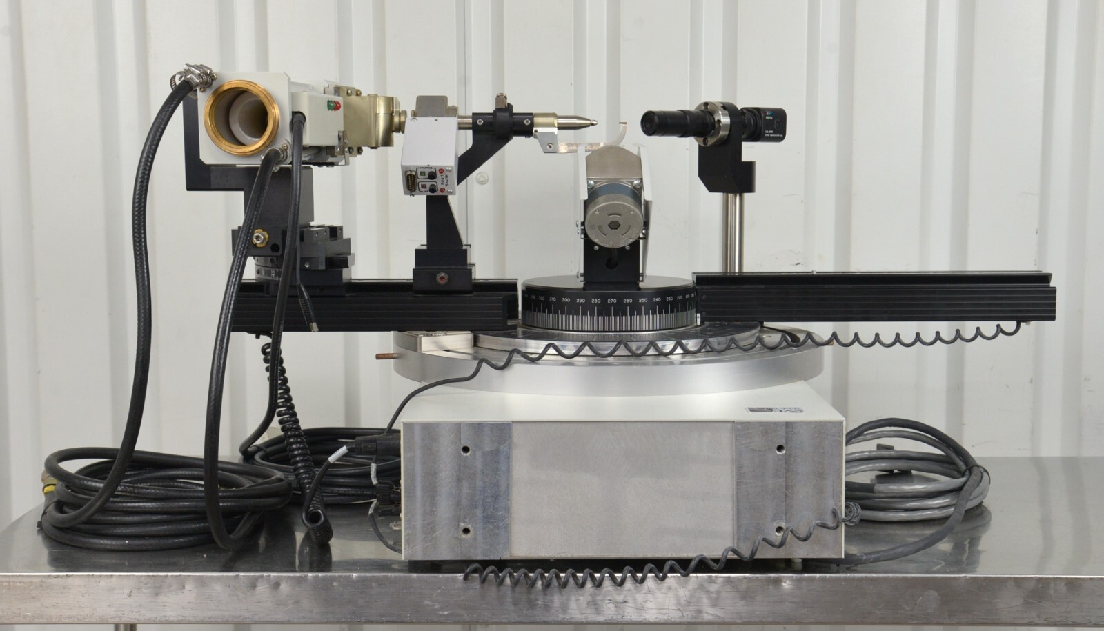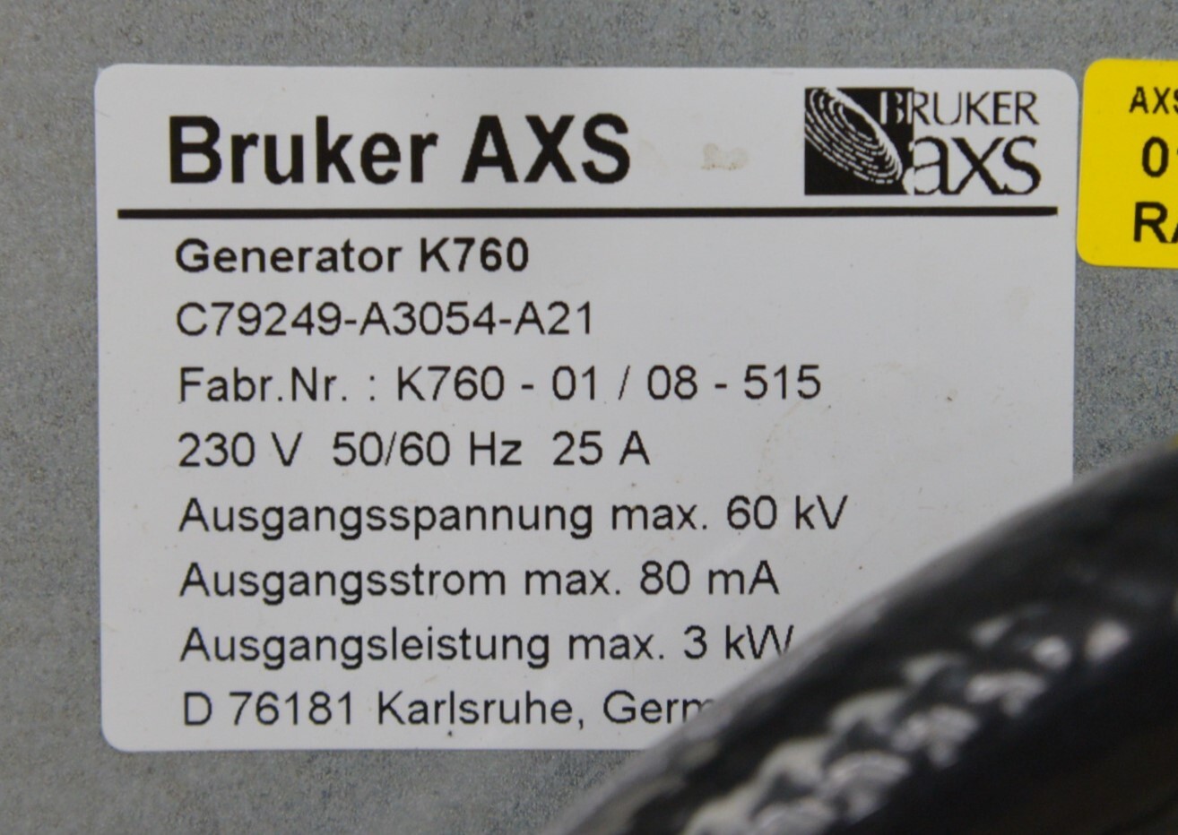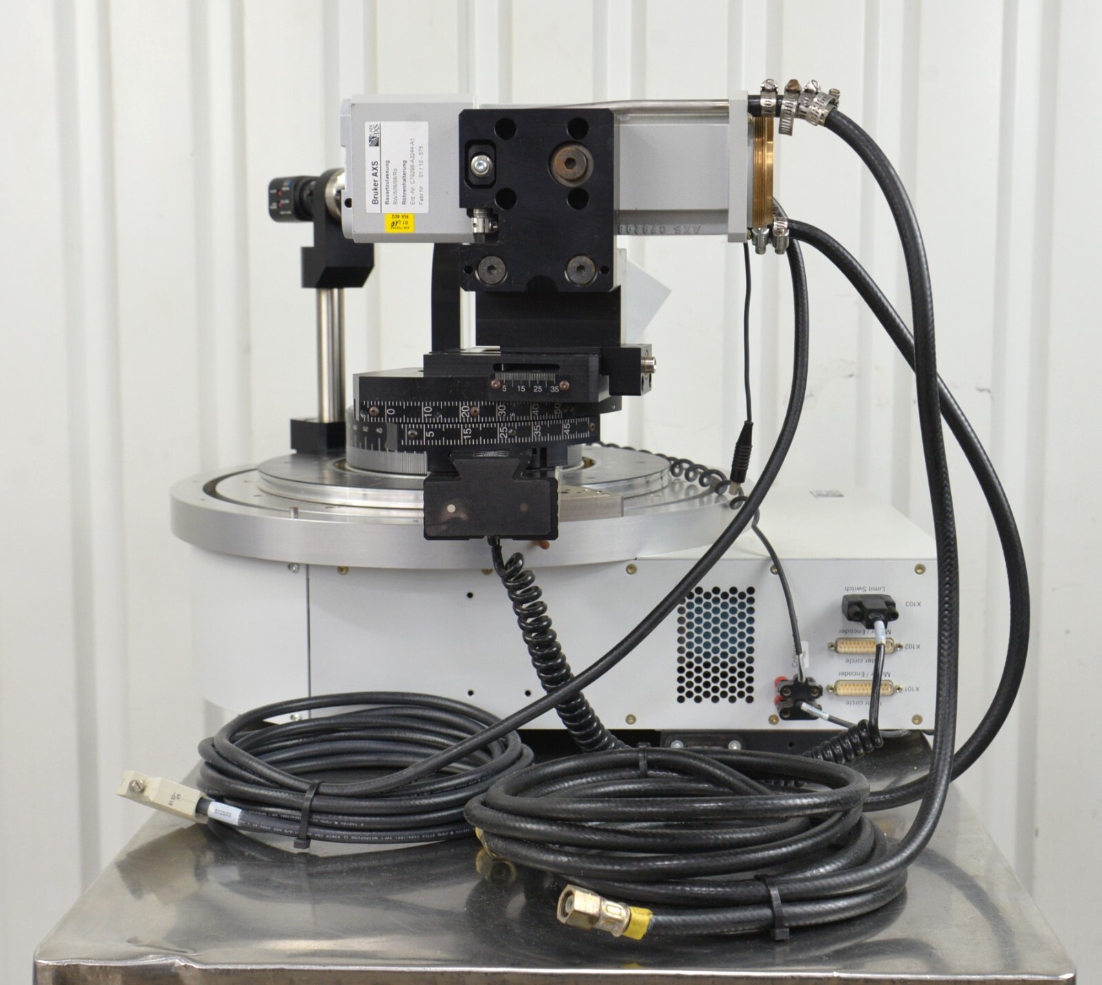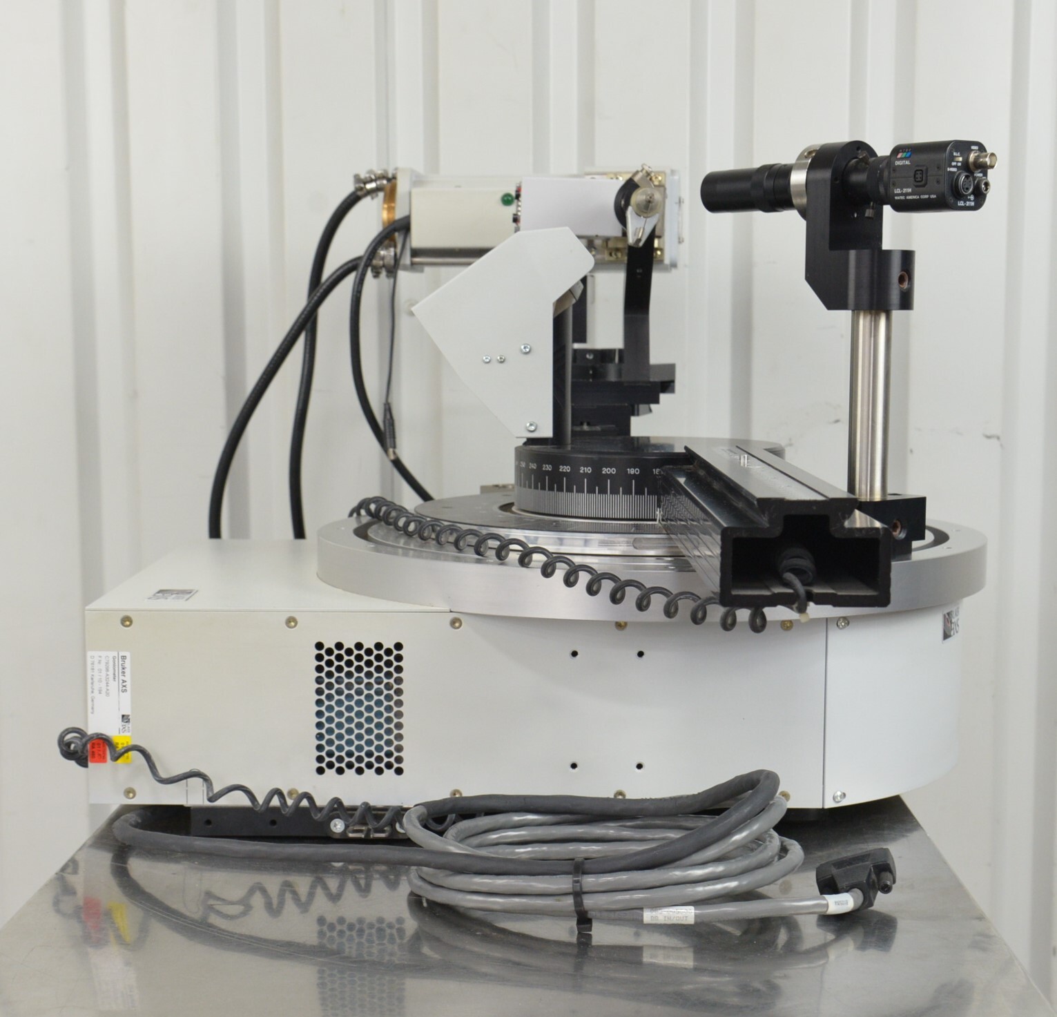 This Bruker AXS D8 Goniometer C79298-A3244-A20 W/ Diffractometer & Generator K760 is in good cosmetic condition. This system came from a working unit; however, we don’t have the means to test it. For this reason, it is being sold for parts. There are minor scuff marks and discoloration from previous use (see photos). Includes everything in the pictures and nothing else.