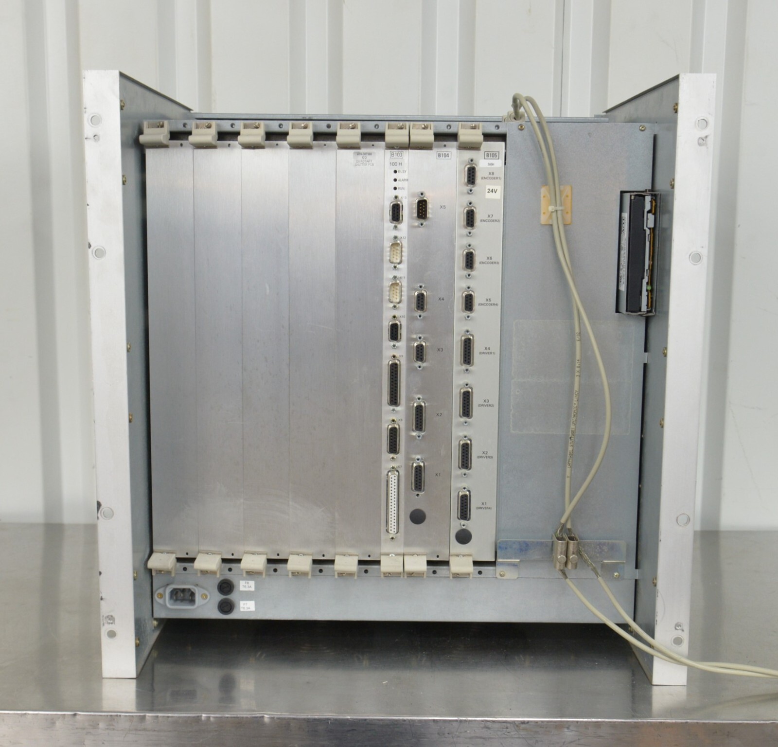 This Bruker AXS D8 Steuereinschub C79298-A3240-A3 Control Unit is in good cosmetic condition. This unit came from a working system and powers on; however, we do not have the means to fully test this unit and for this reason it is being sold for parts. All connection points are clean and in good condition. There are minor scuff marks and discoloration from previous use (see photos). Includes everything in the pictures and nothing else.