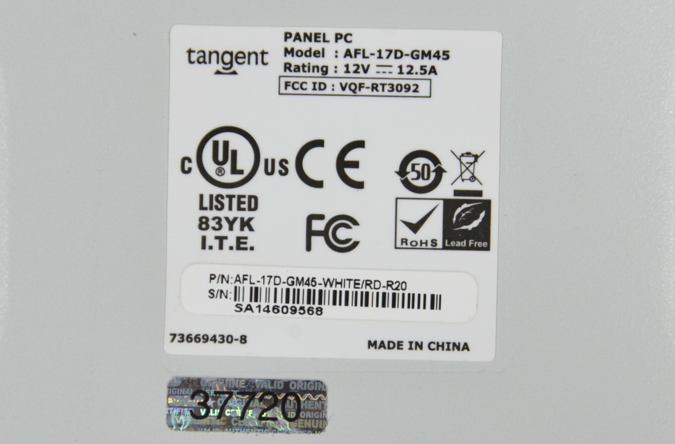 Carestream Tangent Panel PC AFL-17D-GM45