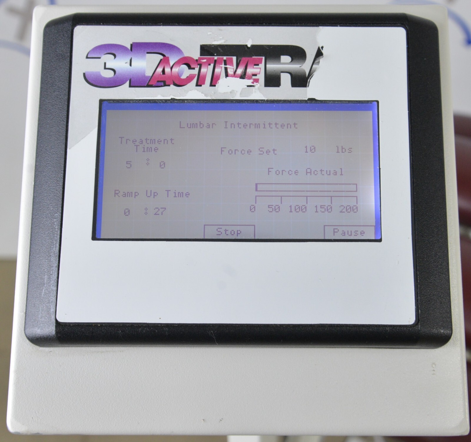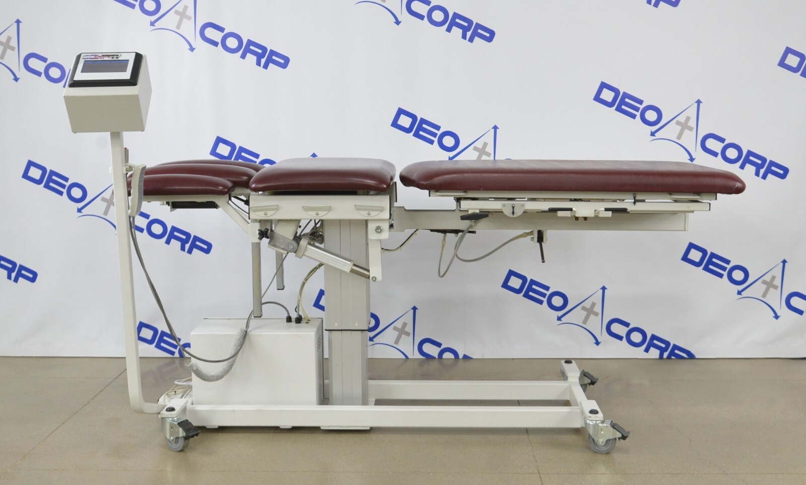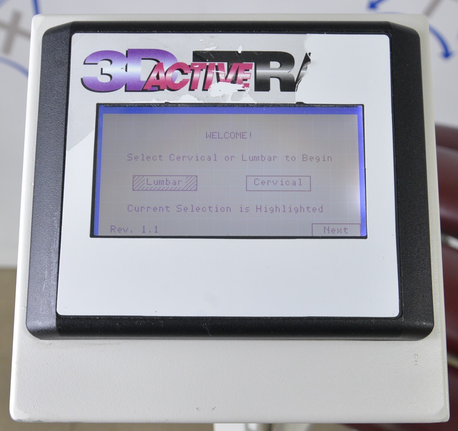 This Chattanooga 3D-Active Trac 73000A Chiropractic Traction Exam Table is in great working condition. This unit powers on and moves smoothly through all range of motion. The display screen produces a clear image and responds properly to touch screen. The remote responds to selection. There are some minor scuff marks from previous use (see photos). This unit comes with a 30 day satisfaction guarantee. Includes everything in the pictures and nothing else.