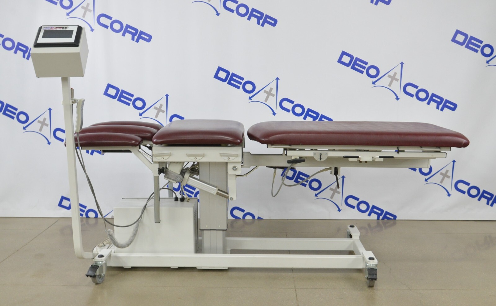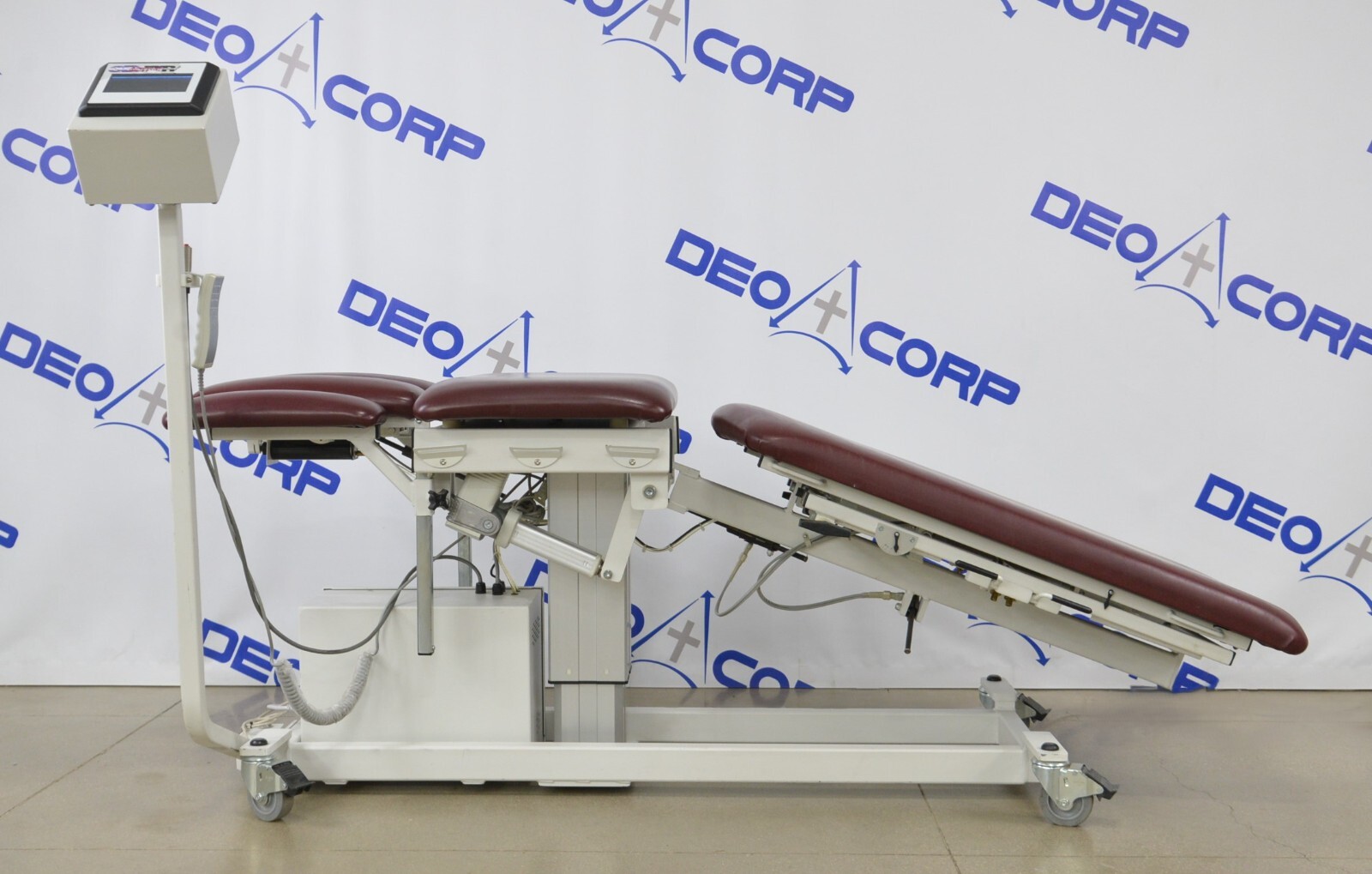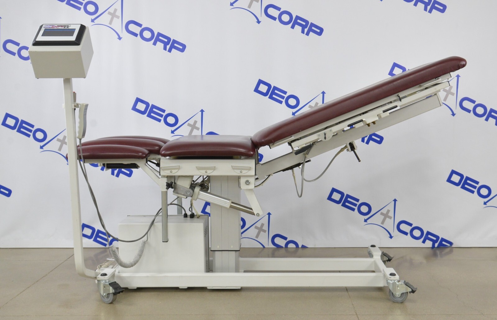 This Chattanooga 3D-Active Trac 73000A Chiropractic Traction Exam Table is in great working condition. This unit powers on and moves smoothly through all range of motion. The display screen produces a clear image and responds properly to touch screen. The remote responds to selection. There are some minor scuff marks from previous use (see photos). This unit comes with a 30 day satisfaction guarantee. Includes everything in the pictures and nothing else.