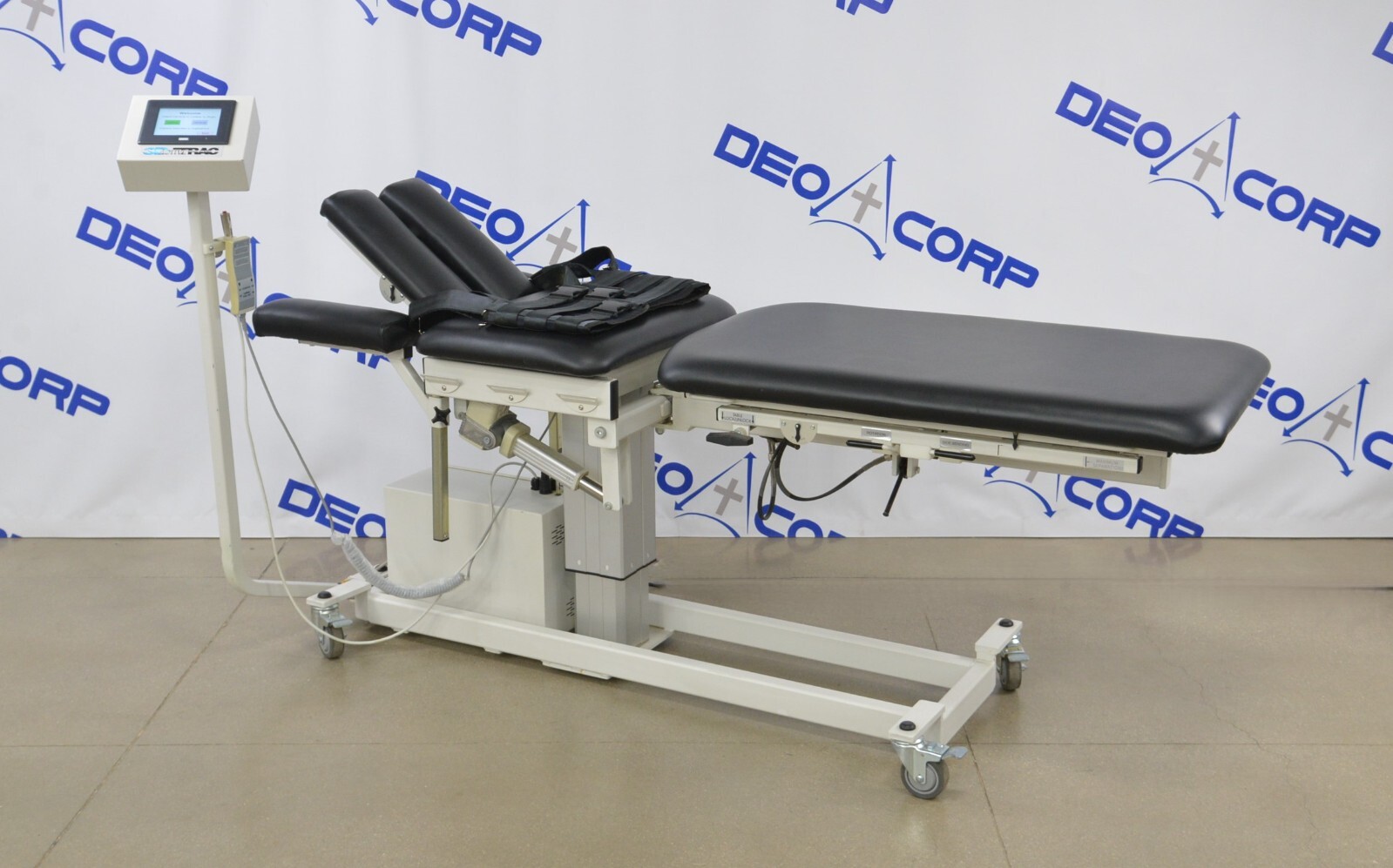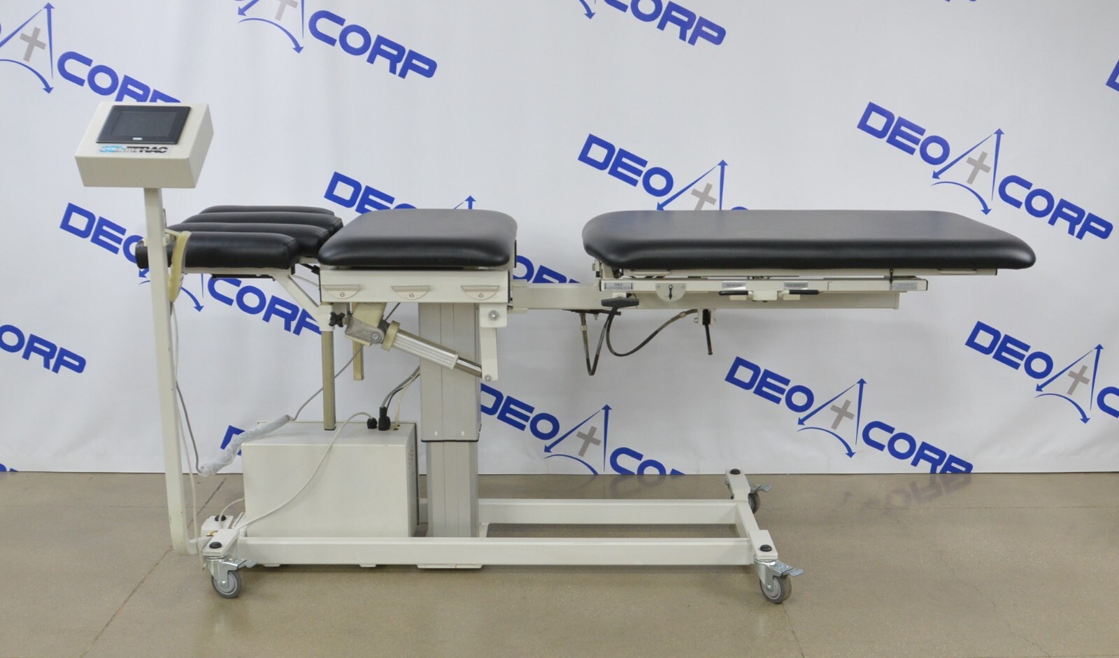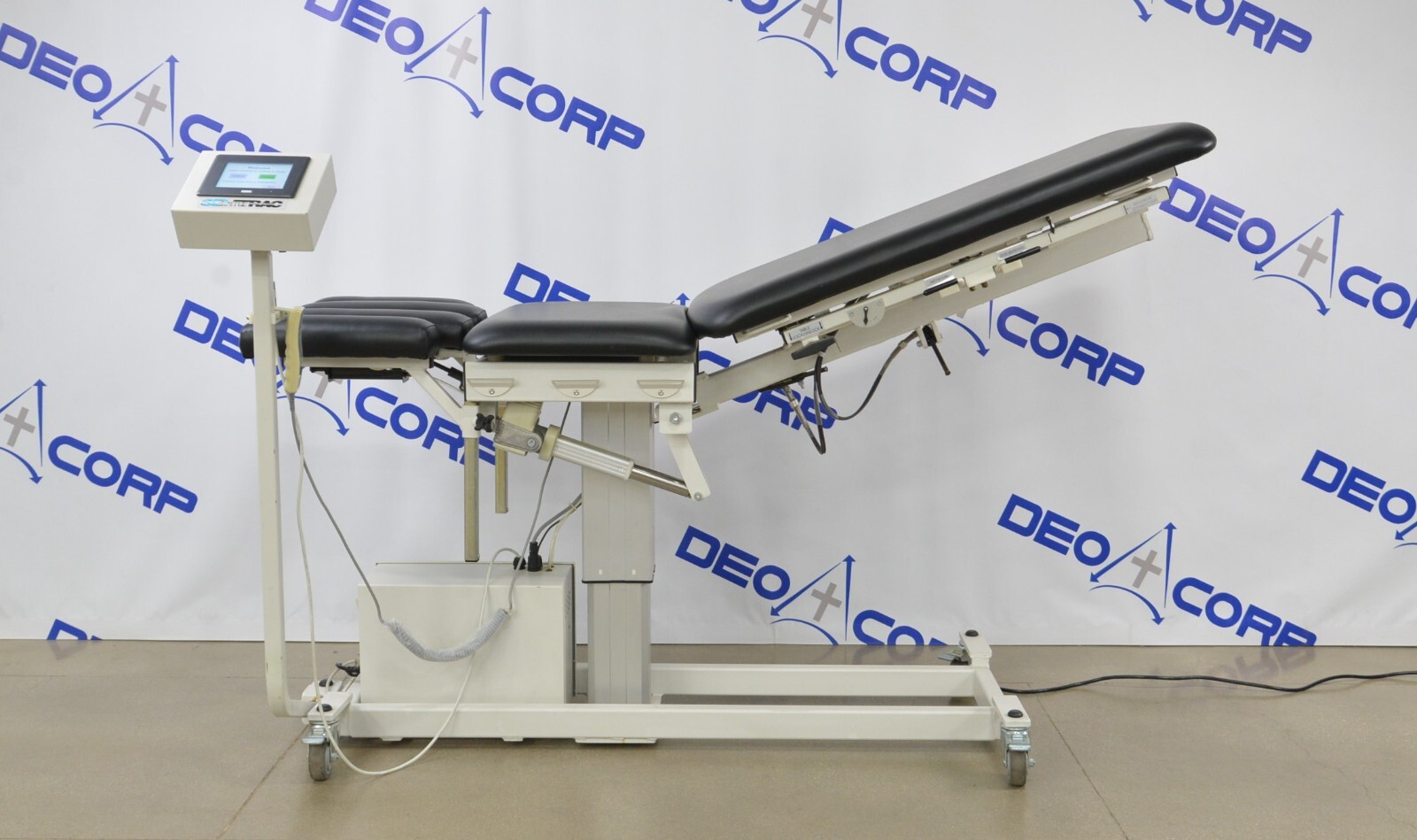 This Chattanooga 3D-Active Trac 8042 Chiropractic Traction Exam Table W/ Accessory is in great working condition. This unit powers on and moves smoothly through all range of motion. The display screen produces a clear image and responds properly to touch screen. The remote responds to selection. There are some minor scuff marks from previous use (see photos). This unit comes with a 30 day satisfaction guarantee. Includes everything in the pictures and nothing else.