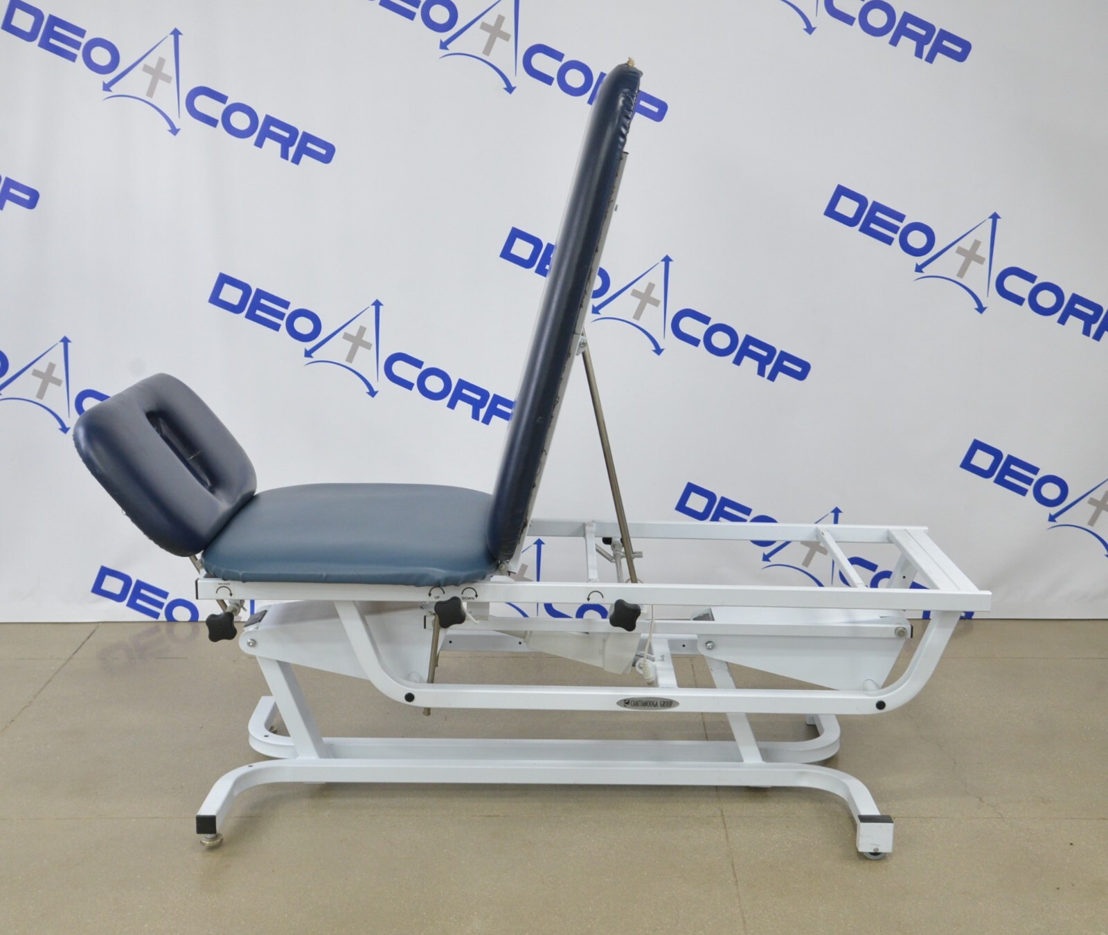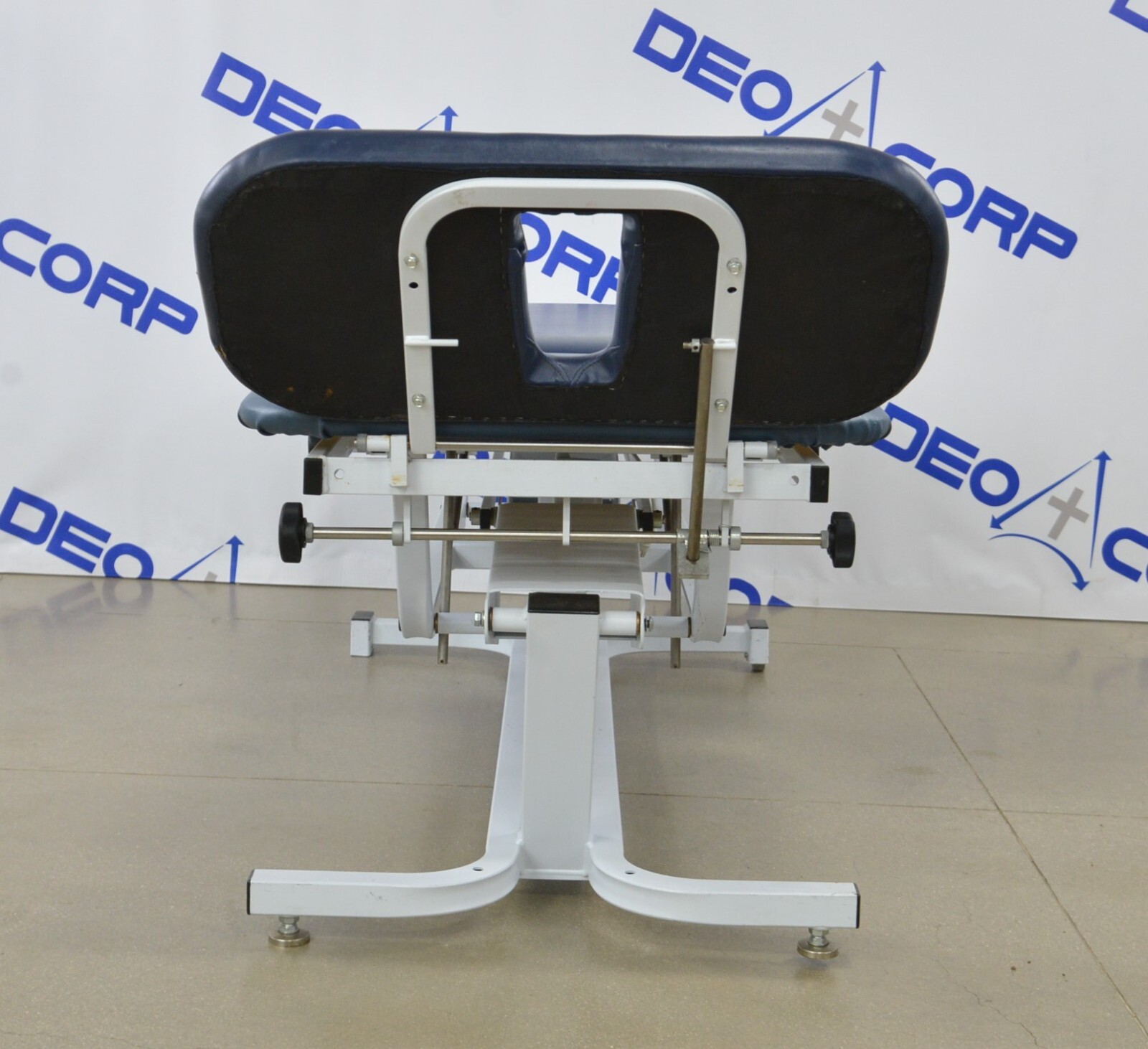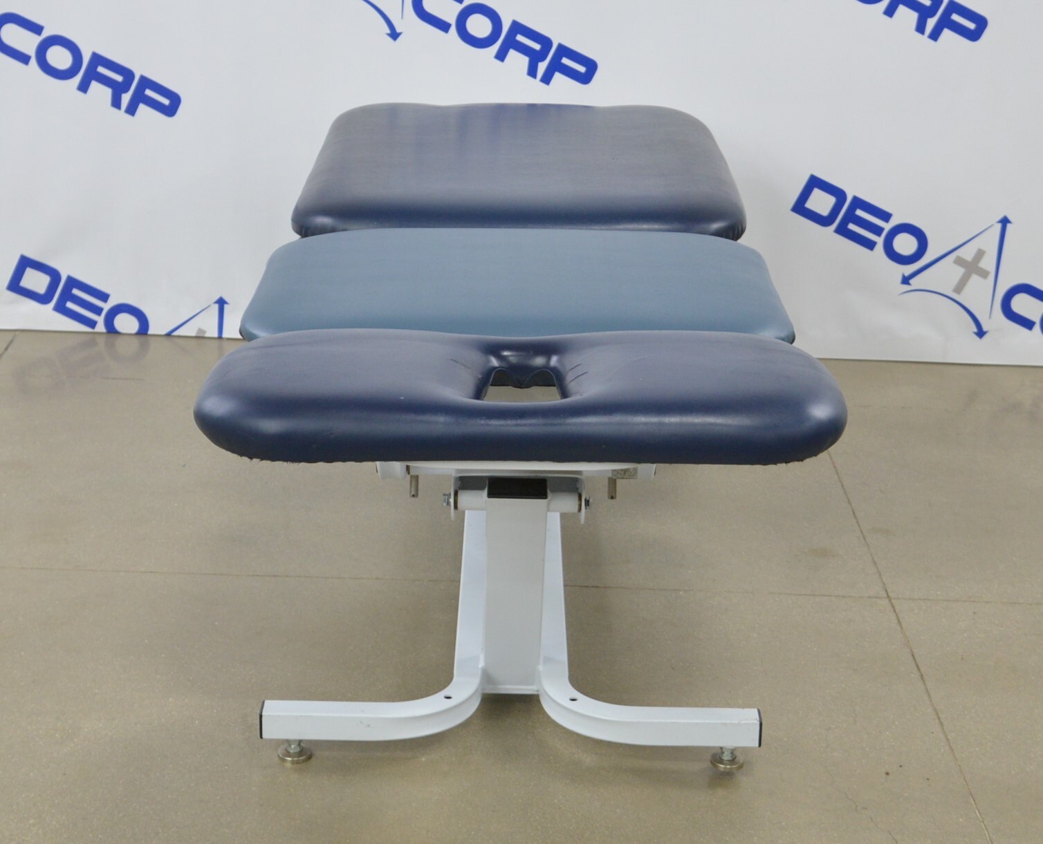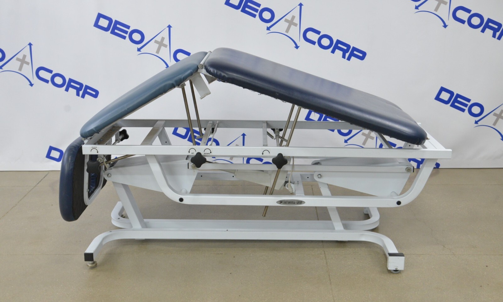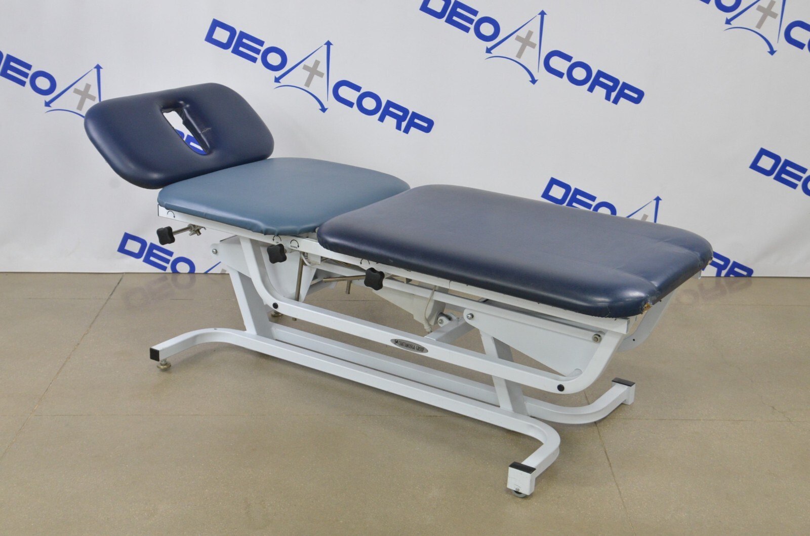 This Chattanooga Adapta ADP-300 Treatment Table is in fair cosmetic condition. The manual adjustments work properly. Some parts of the upholstery have been repaired. The unit’s actuator and power supply are no longer working causing the table not power on and rise/lower, for this reason, its being sold for parts. One of the wheels are missing. There are some scuff marks, tears and indents in the upholstery from previous use (see photos). Includes everything in the pictures and nothing else.
