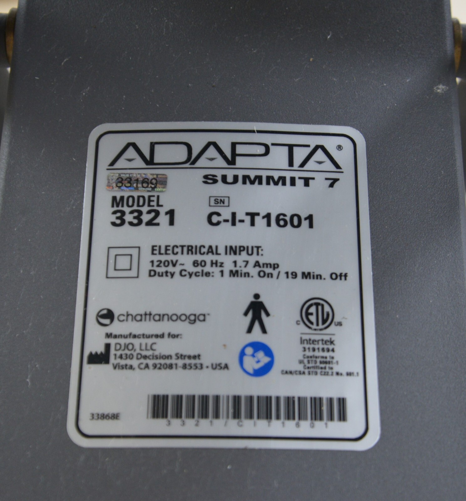This Chattanooga Adapta Summit 7 3321 Physical Therapy Table is in good working condition. The table rises and lowers smoothly. Each section adjusts properly. The overall cosmetic condition is good with the exception a few tears in the upholstery (see photos). This unit comes with a 30 day money back guarantee. Includes everything in the pictures and nothing else.