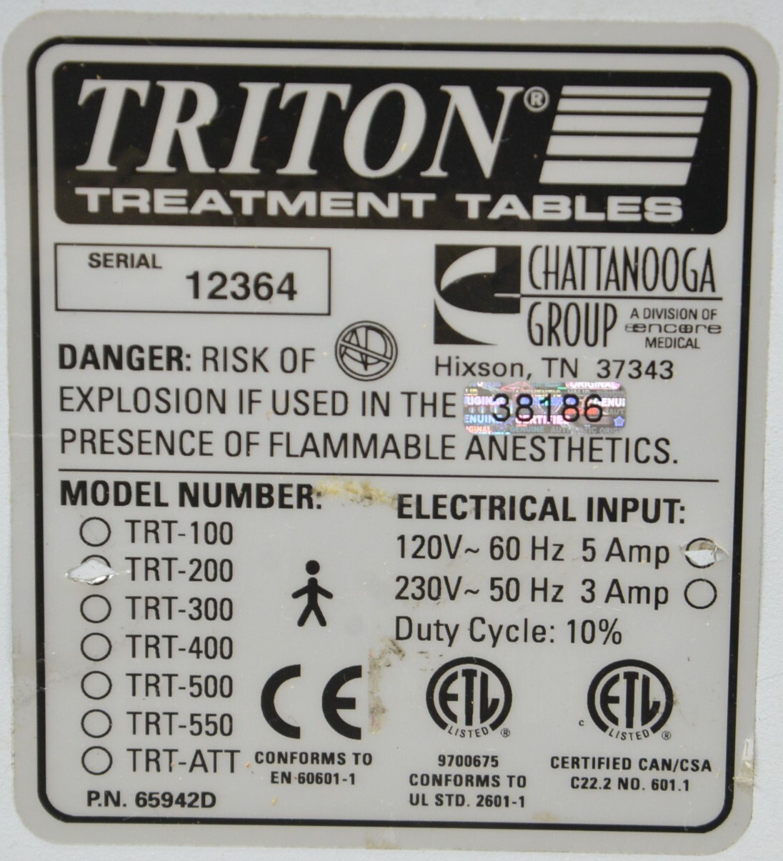 Chattanooga Group Triton TRT-200 Treatment Table W/ Foot Switch