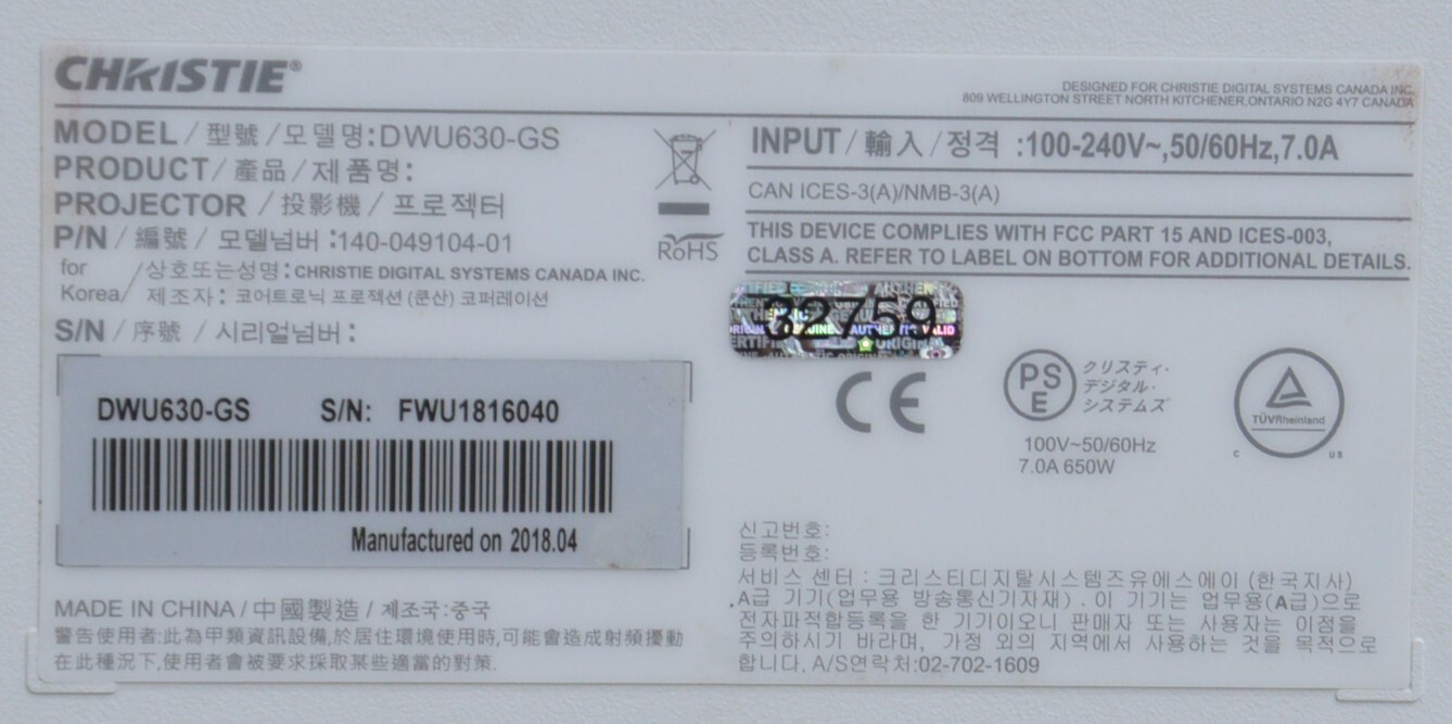 Christie DWU630-GS Projector 140-049104-01