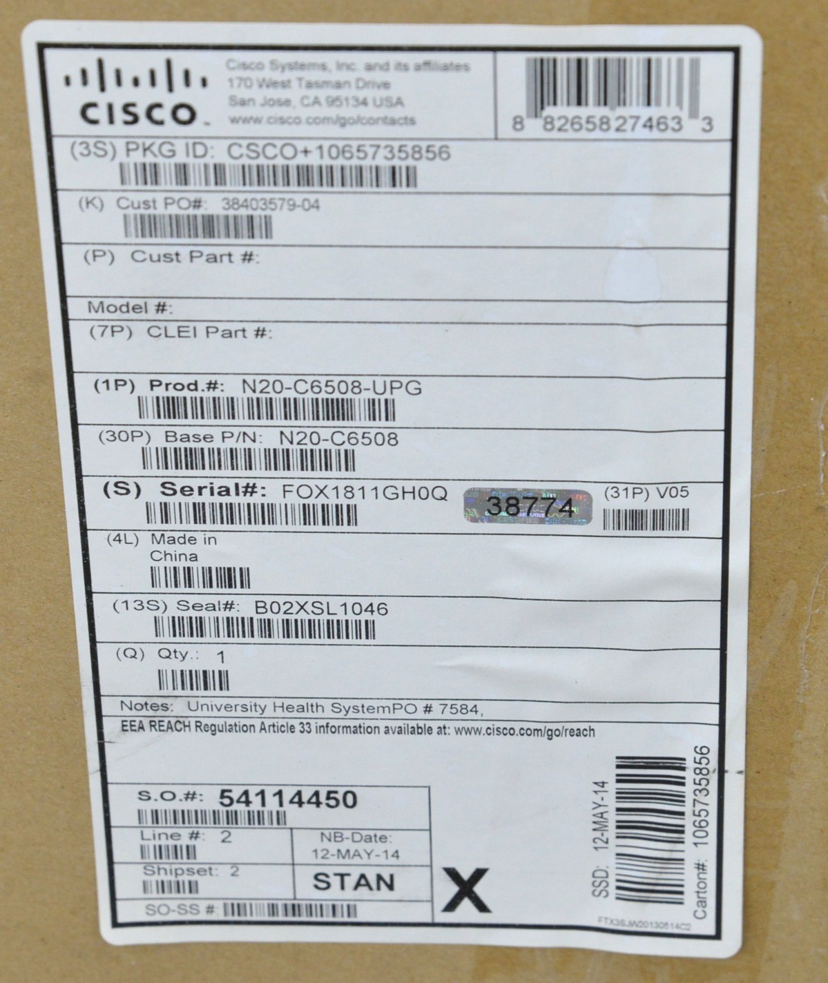 Cisco N20-C6508-UPG Blade Server Chassis