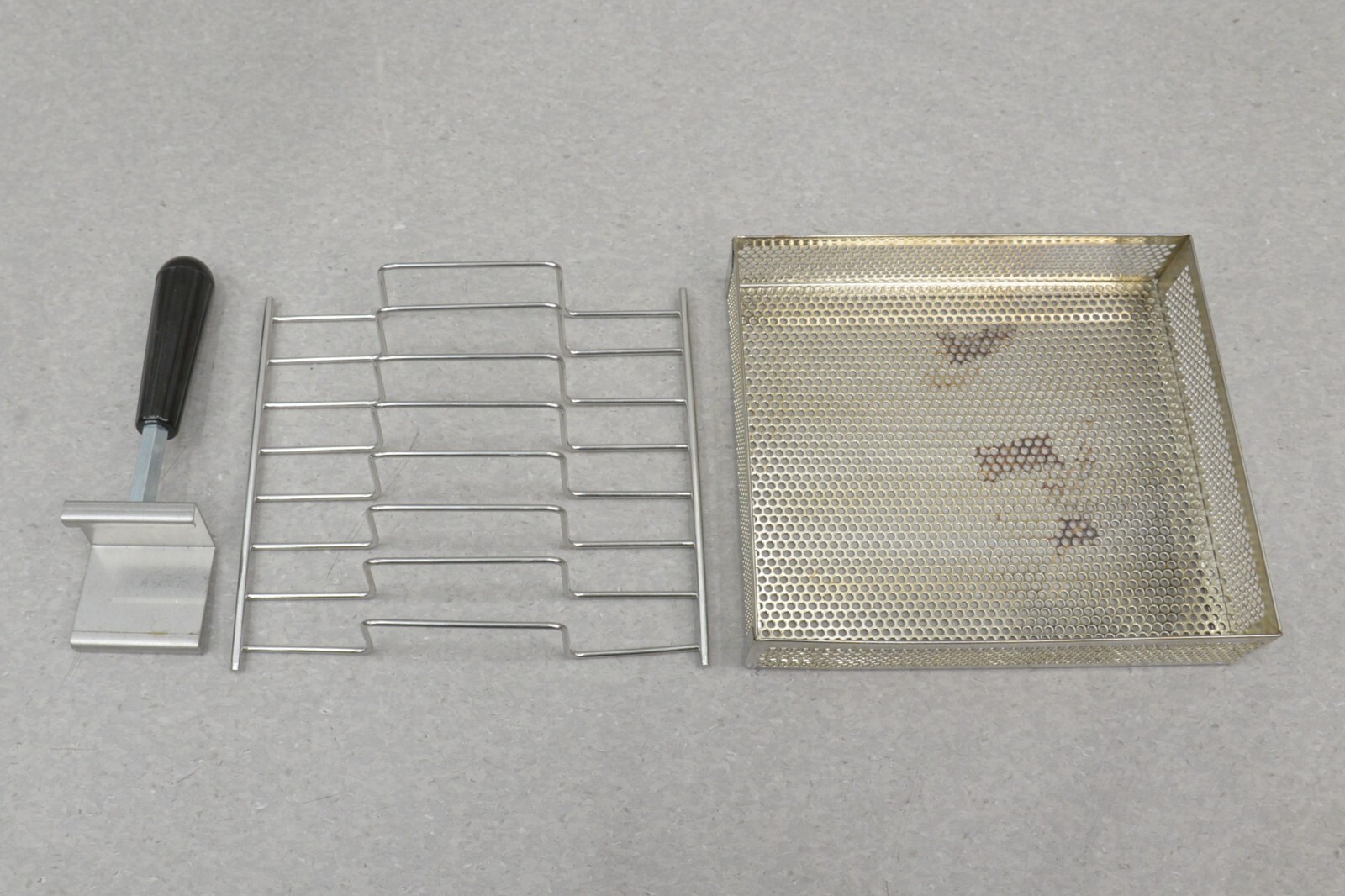 This CPAC Equipment Inc CoxRapidHeat 6000 High Velocity Hot Air Rapid Heat Sterilize is in good working condition. The unit powers on and functions properly. The sterilizer heats fully and all three sterilization cycle buttons are in good working condition and respond to menu selections. The front latch opens, closes and locks properly. The overall cosmetic condition is good with the exception of a few minor scuff marks from previous use (see photos). There is some minor rusting on the instrument tray. This system comes with a 30 day satisfaction guarantee. Includes everything displayed in the photos and nothing else.