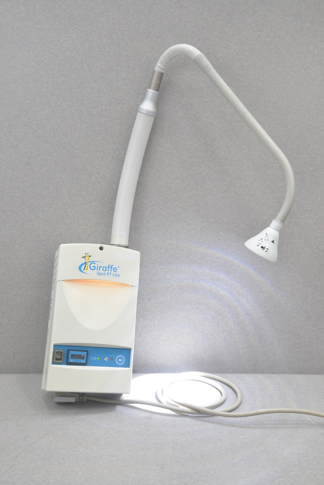 This Datex-Ohmeda Giraffe Spot PT Lite REF 6600-0833-800 – Phototherapy System powers on and is in good condition. The light is clear and illuminates. This system has 4734hrs of runtime and some discoloration from previous use. This system comes with a 30 day satisfaction guarantee. Includes everything in the pictures and nothing else.