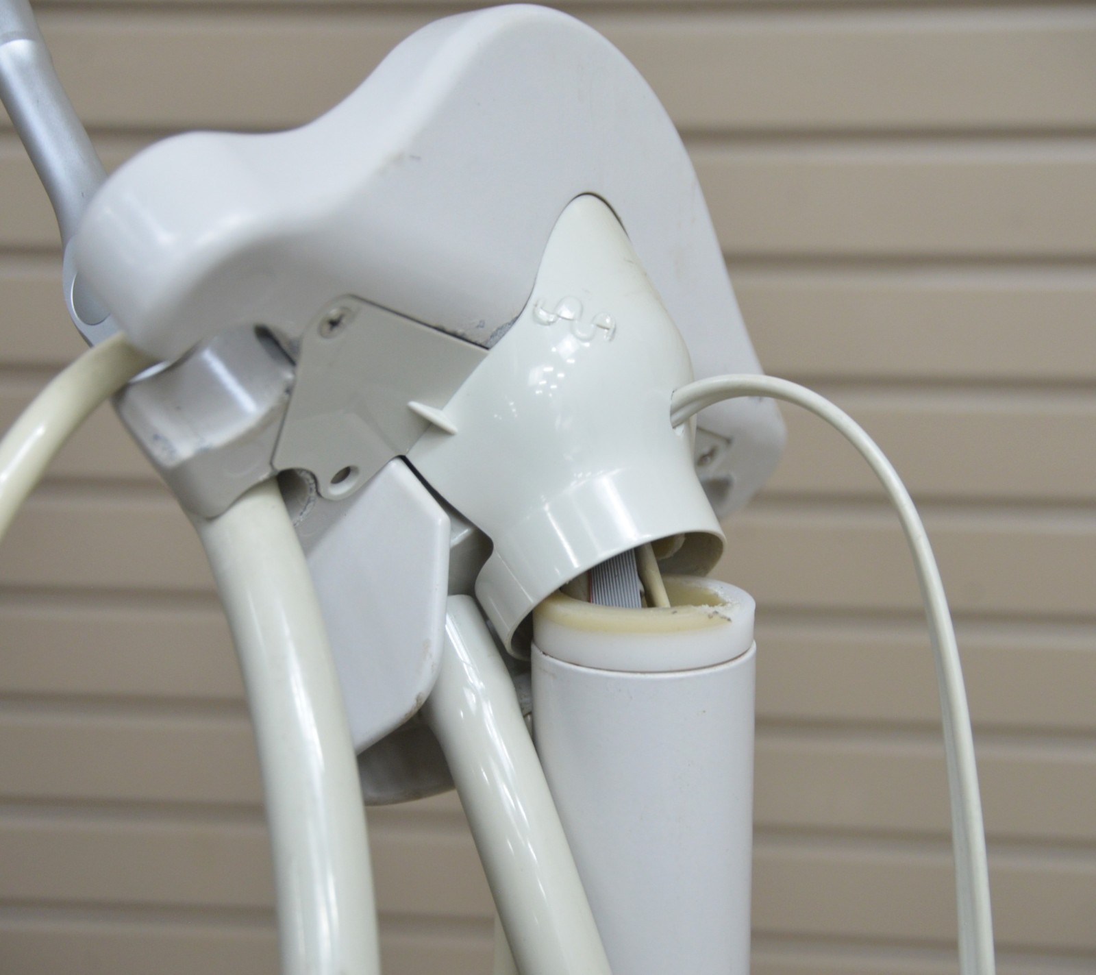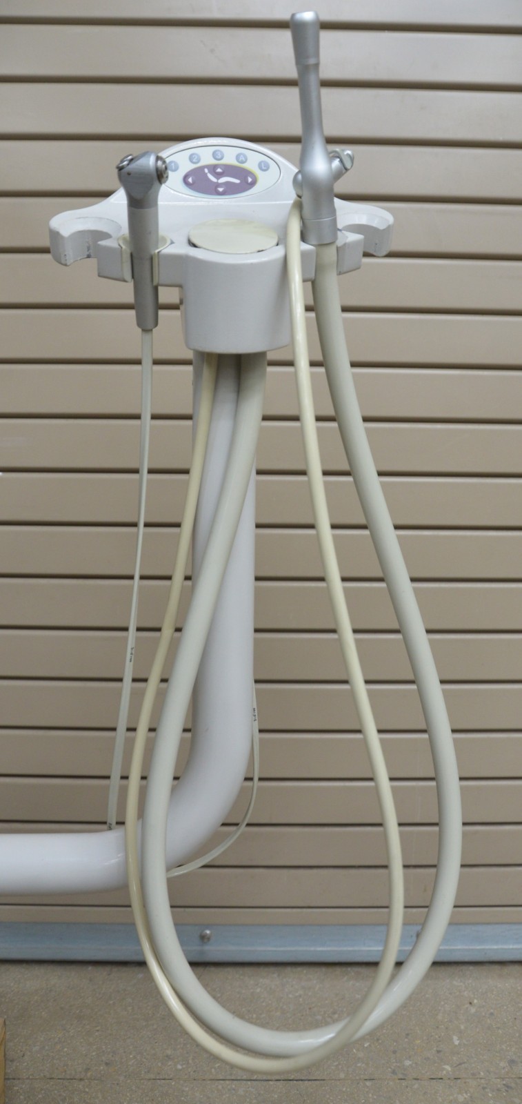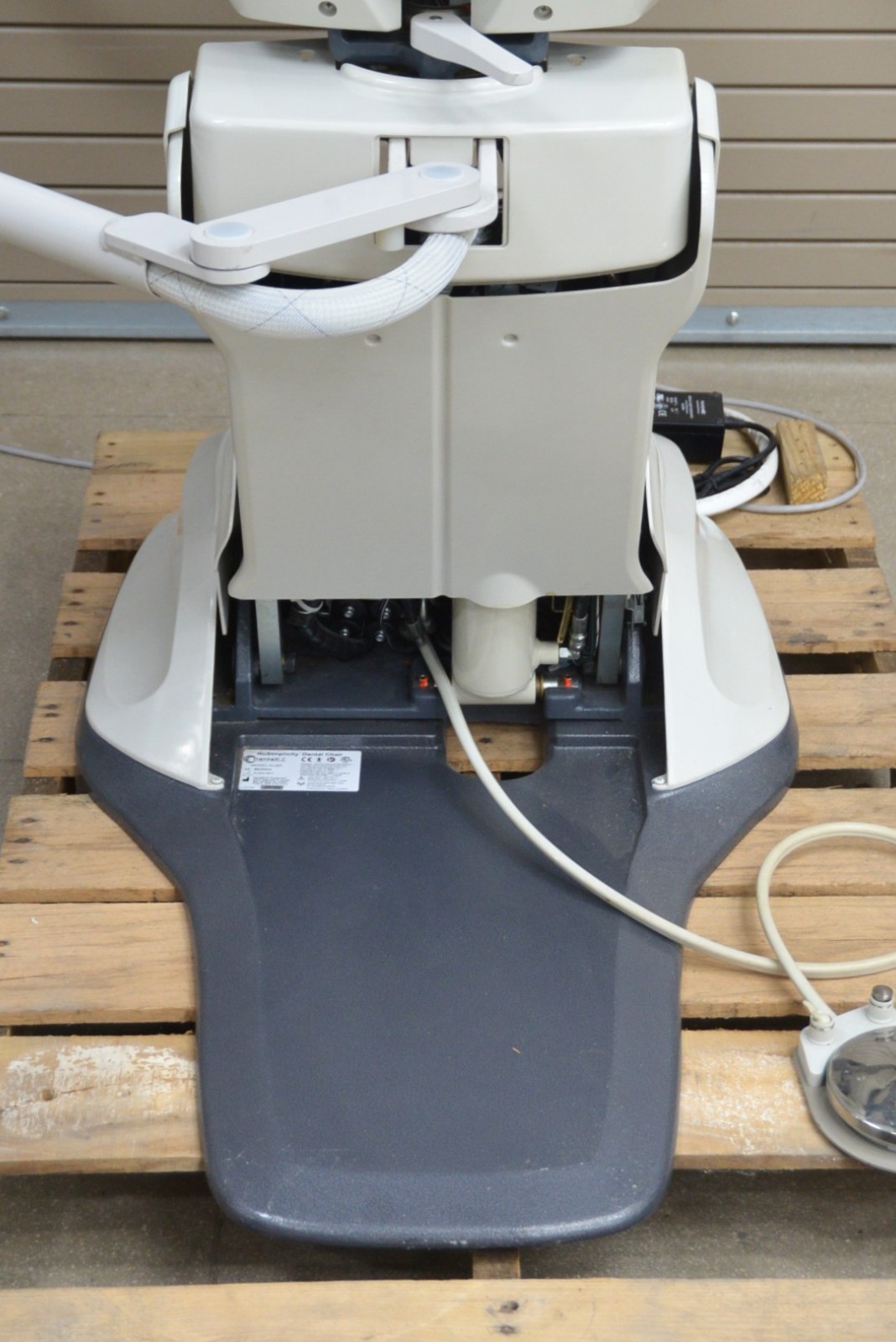 This DentalEZ NUSP NuSimplicity Dental Chair W/ Radius Delivery Unit & Mount Light is in good cosmetic condition. The chair powers on, moves through all range of motion and the controls on the side respond to selection. The radius delivery unit, the radius mount light and the assistants vacuum group do not power on and function. For these reasons this unit is being sold for parts. The control panel on the assistants vacuum is broken off the mount and the seat section is loose. There are some minor pain chips and scuff marks on the unit (see photos). Includes everything in the pictures and nothing else.