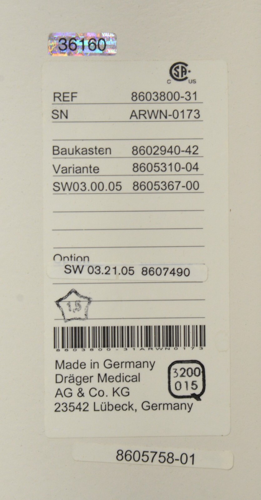Drager Apollo 8603800-31