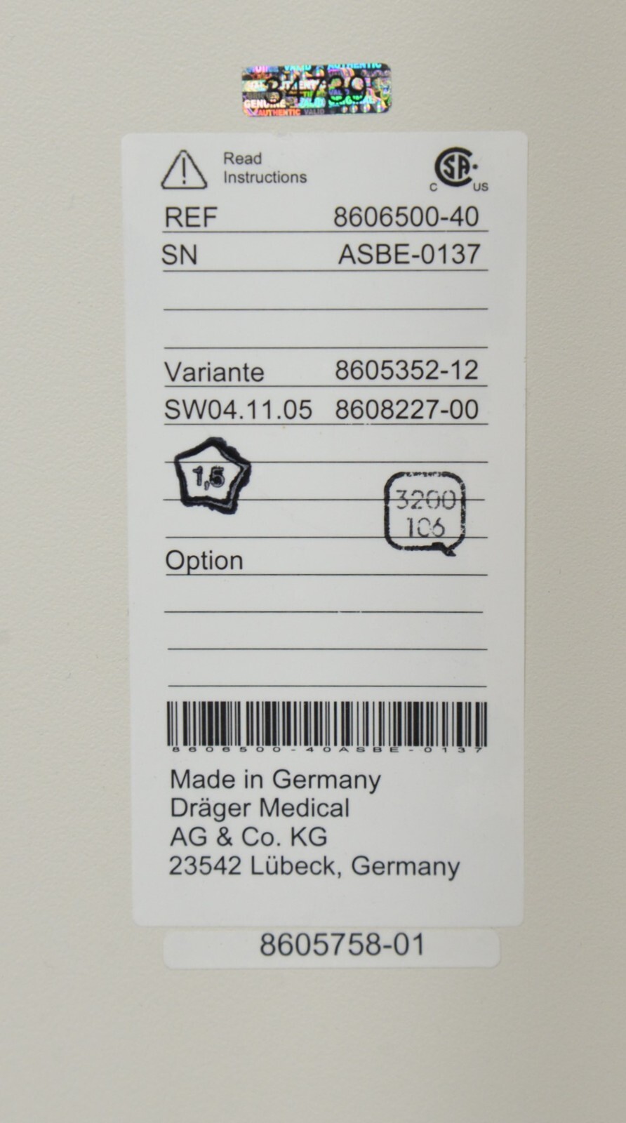 Drager Apollo 8606500 With Planar Monitor & CastrGard