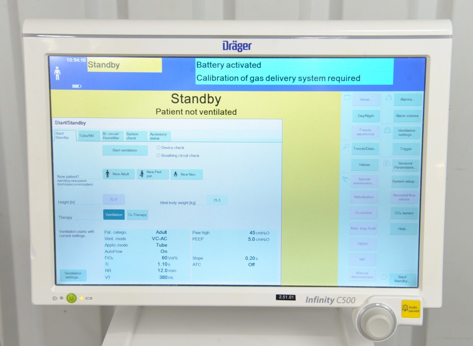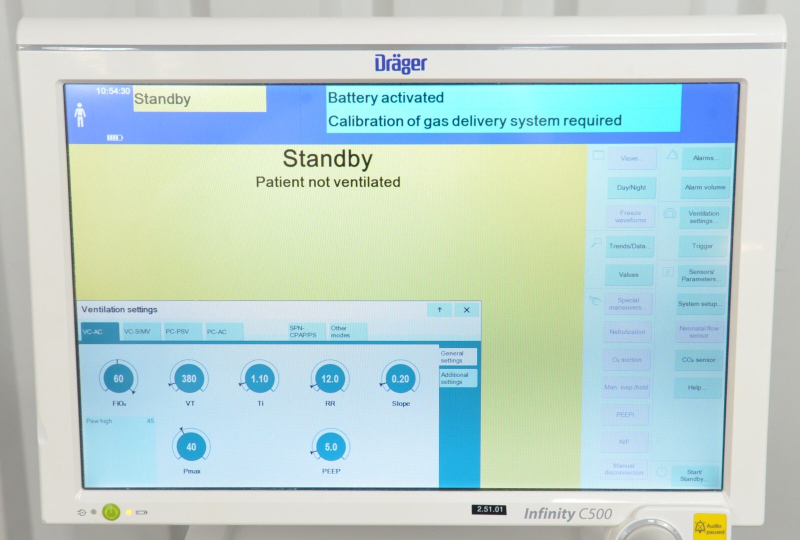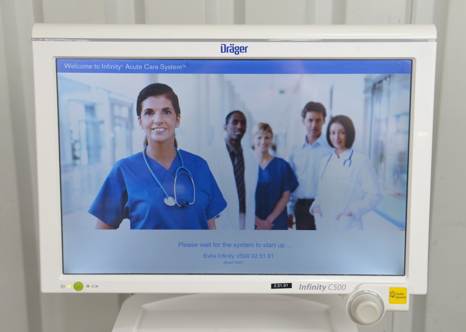 Drager Evita Infinity V500 Acute Care System 8416000 W/ C500 Screen & Mainstream CO2