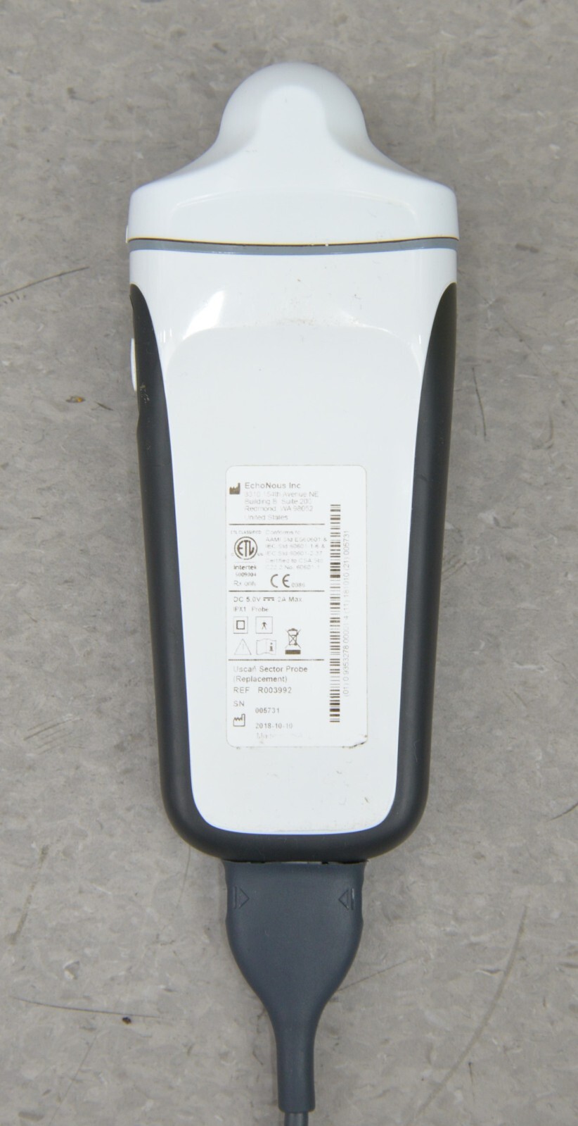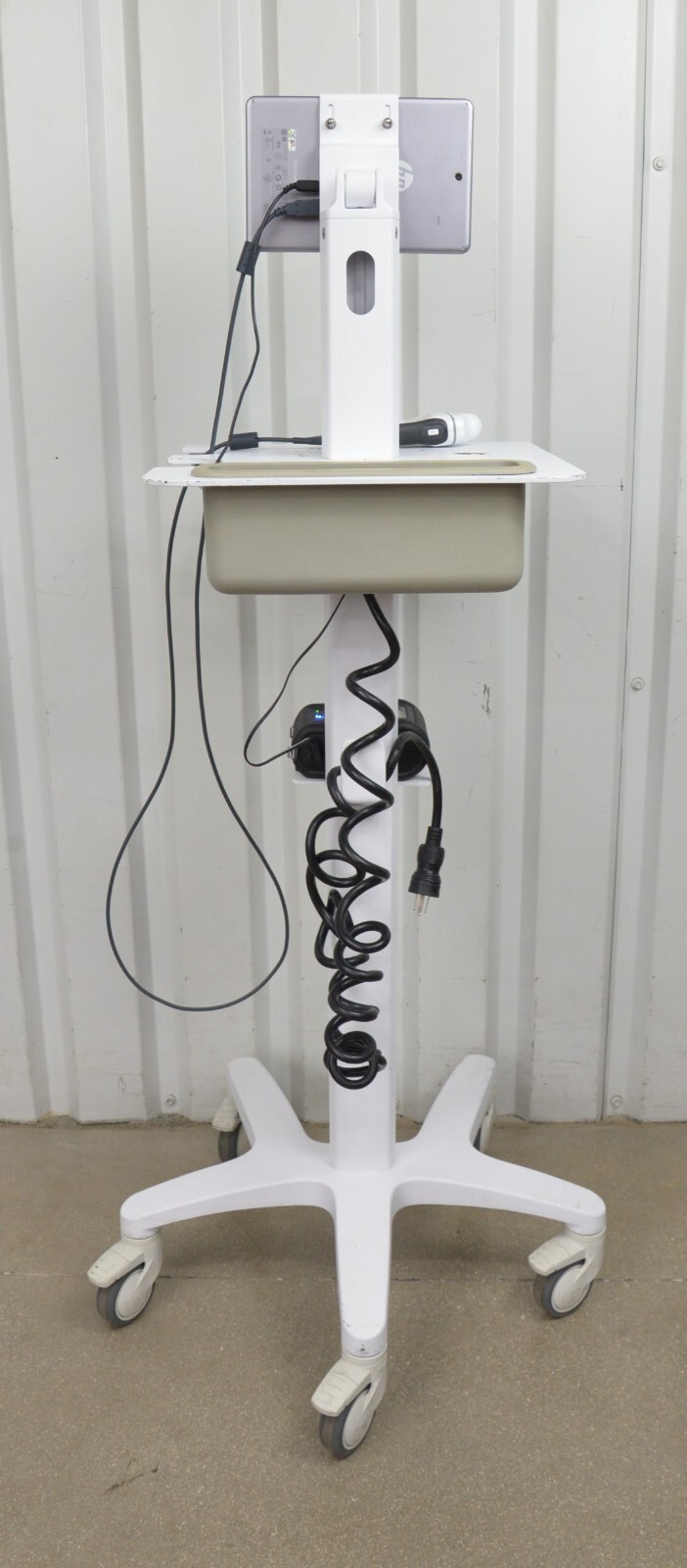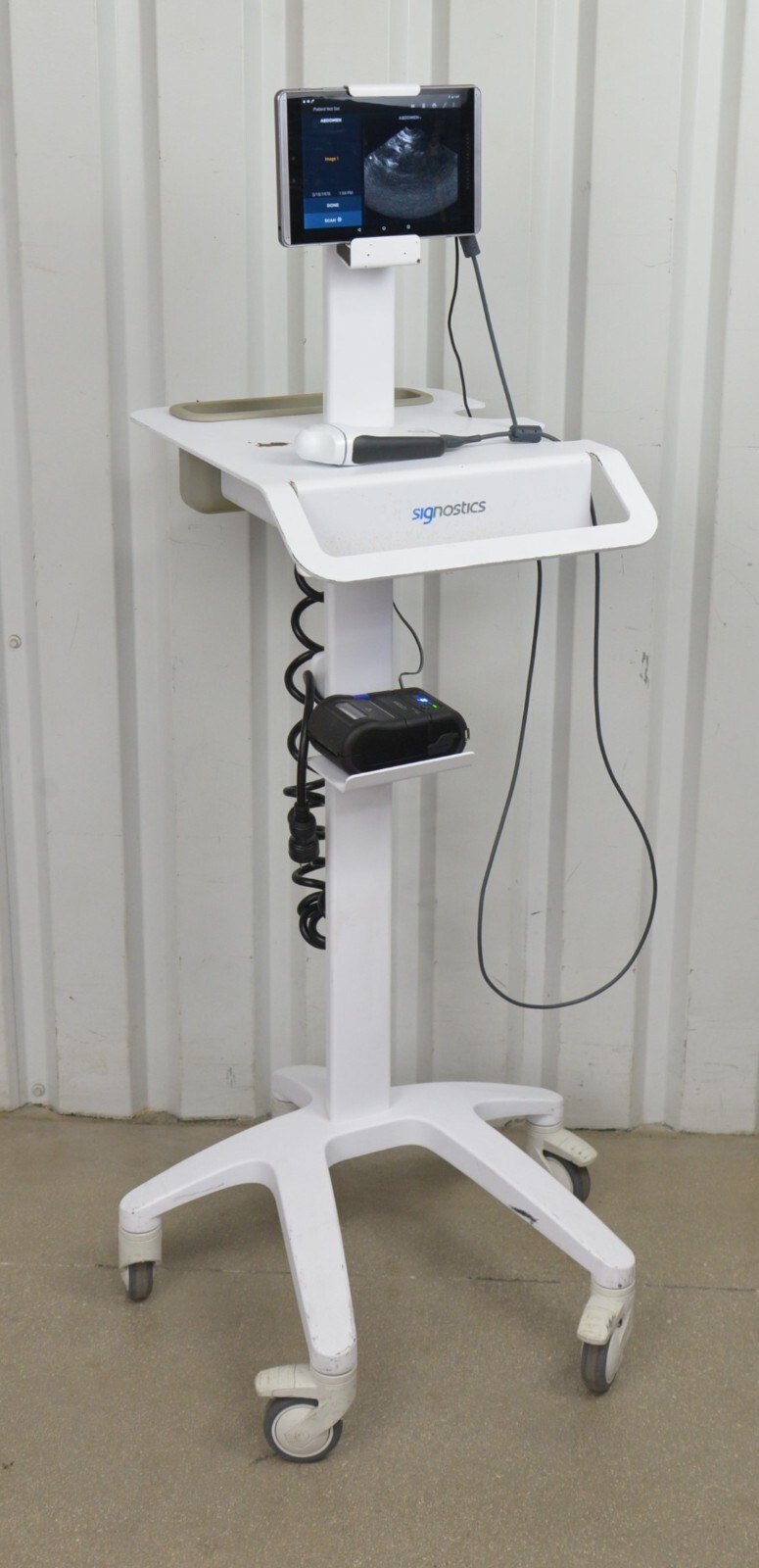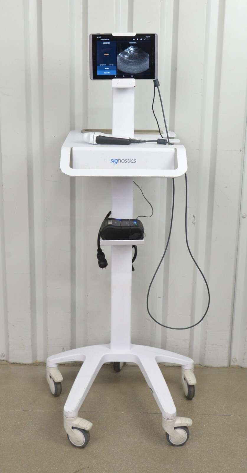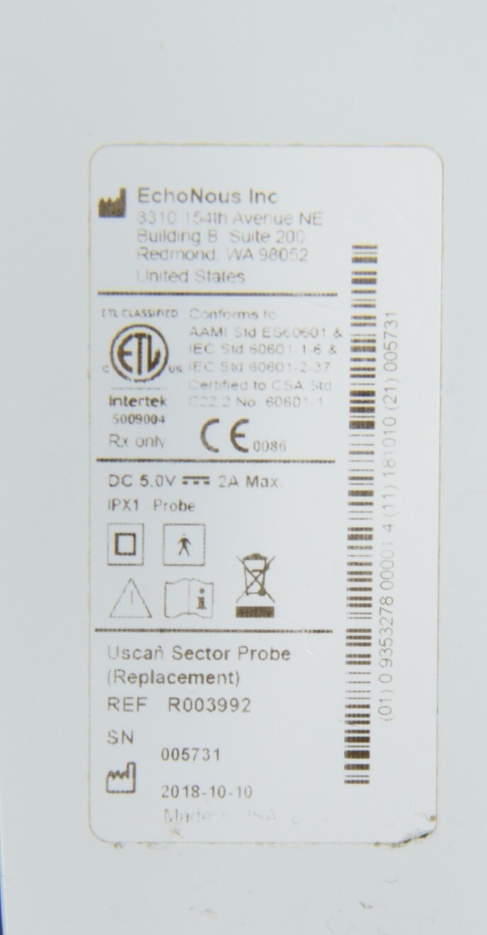 This EchoNous Uscan Sector Probe R003992 W/ HP Pro Slate 8 Tablet & Cart is in great working condition. This unit powers on properly. The Uscan captures a clean image and the button responds properly. The display screen is clear and responds to touch screen. The connection points are clean and in good condition. There are minor scuff marks and chipped paint on the stand from previous use (see photos). The unit can be sold without the cart and be shipped parcel, please reach out if you’d prefer that option. This unit comes with a 30 day satisfaction guarantee. Includes everything in the pictures and nothing else.