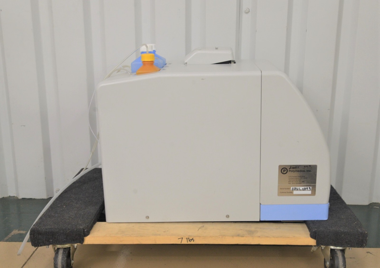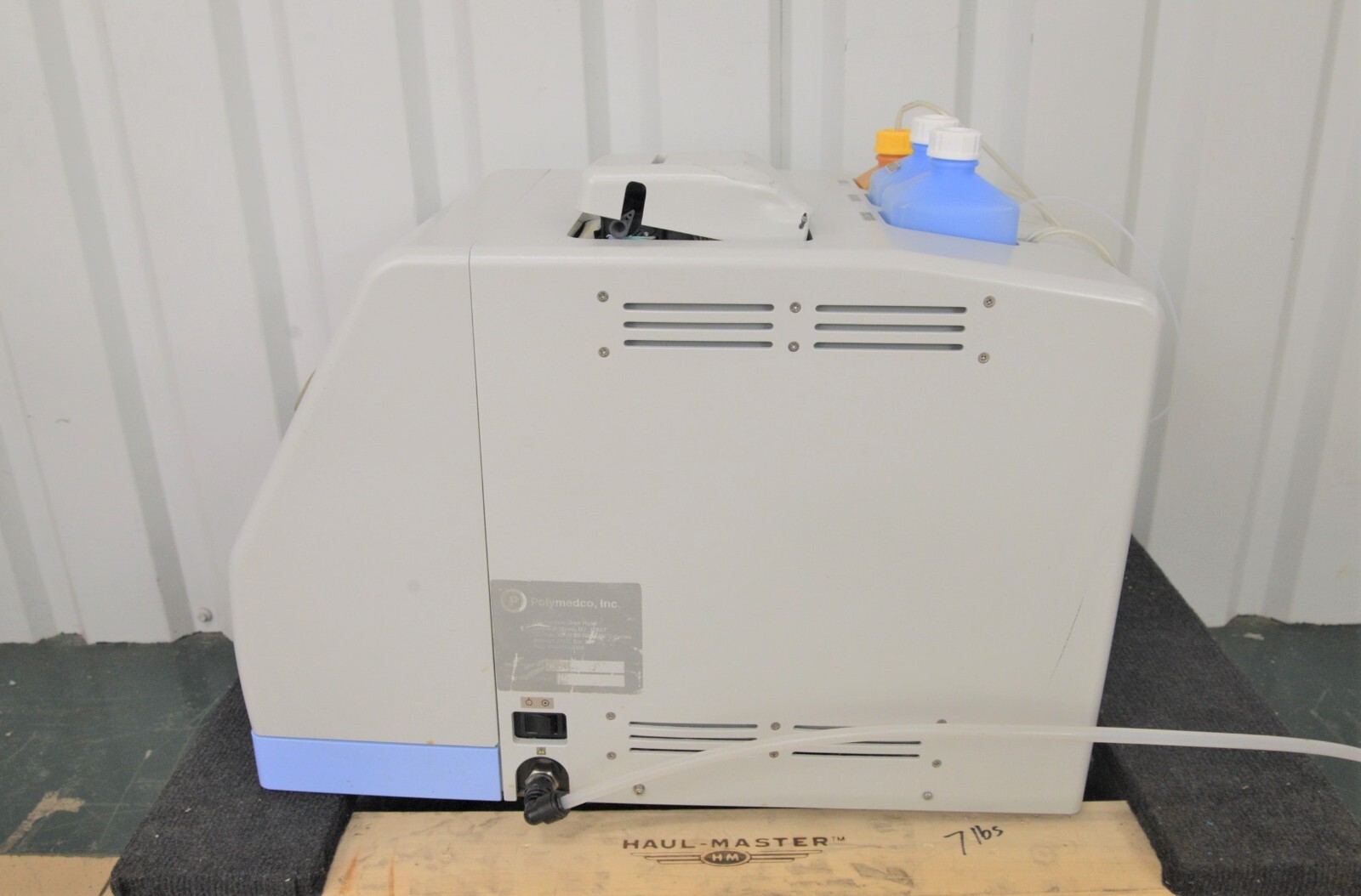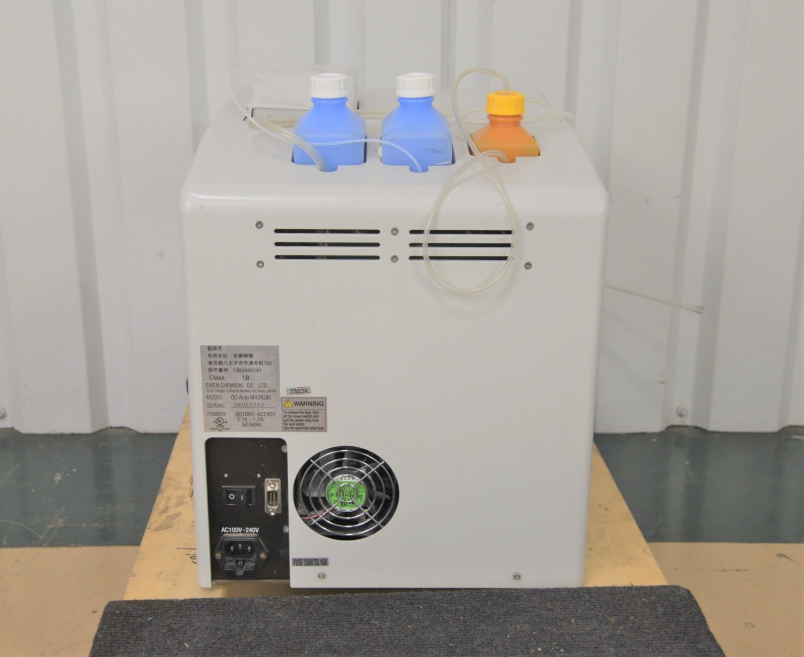 This Eiken Chemical, PolyMedCo, OC-Auto Micro80, Fully Automated Blood Analyzer is used but is in good cosmetic condition. The unit powers on but will not go past the “Initial Set Up” screen (see photo). The display screen and control panel are in good working condition and respond to menu selections. The overall cosmetic condition is good with the exception of a few minor scuff marks and slight discoloration associated with previous use (see photos).  Includes (3) Plastic Bottles, Hose and a Power Cord. Since we do not have the expertise to conduct further testing on this system, it is being sold as-is with no returns. Includes everything displayed in the photos and nothing else.