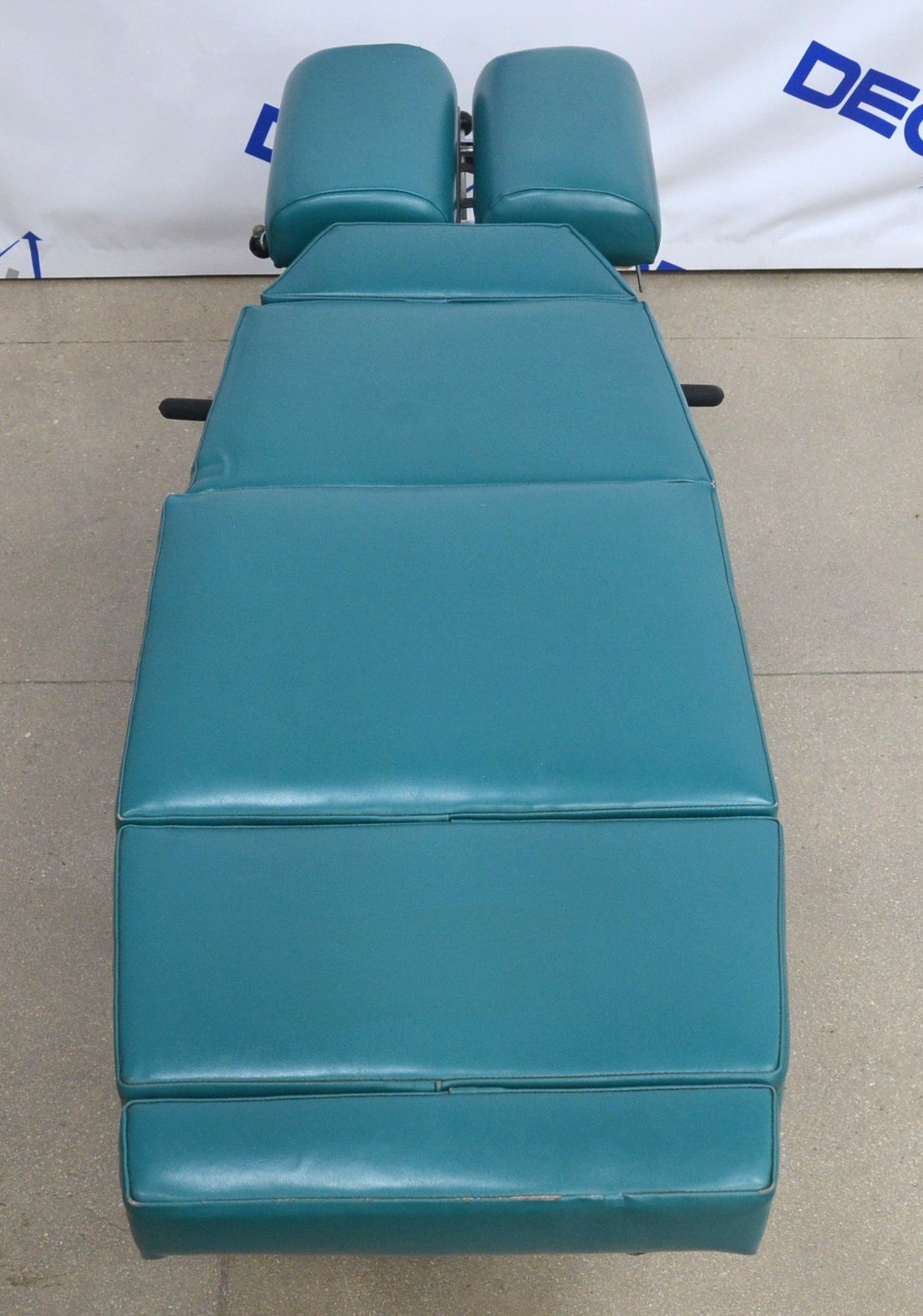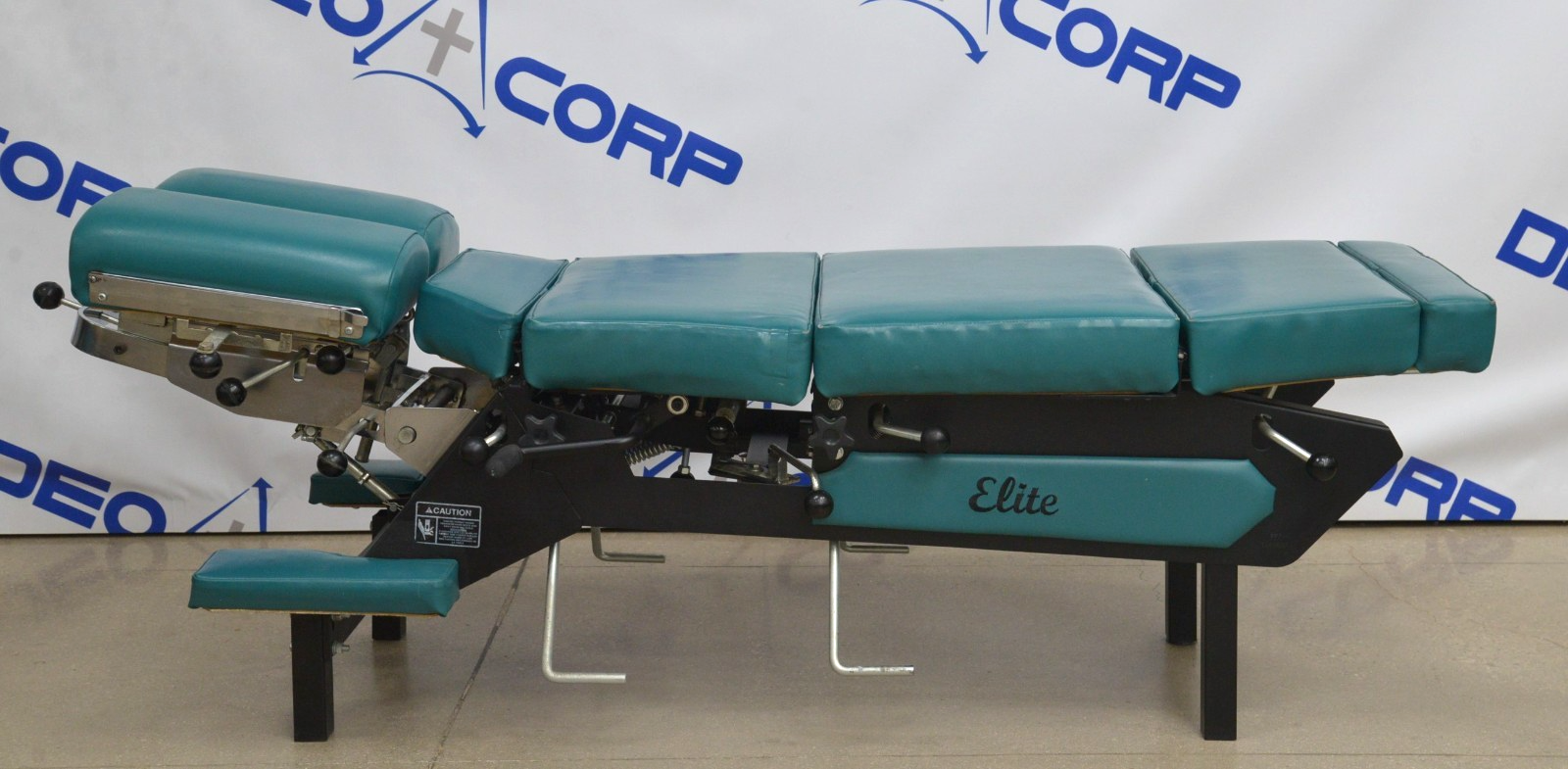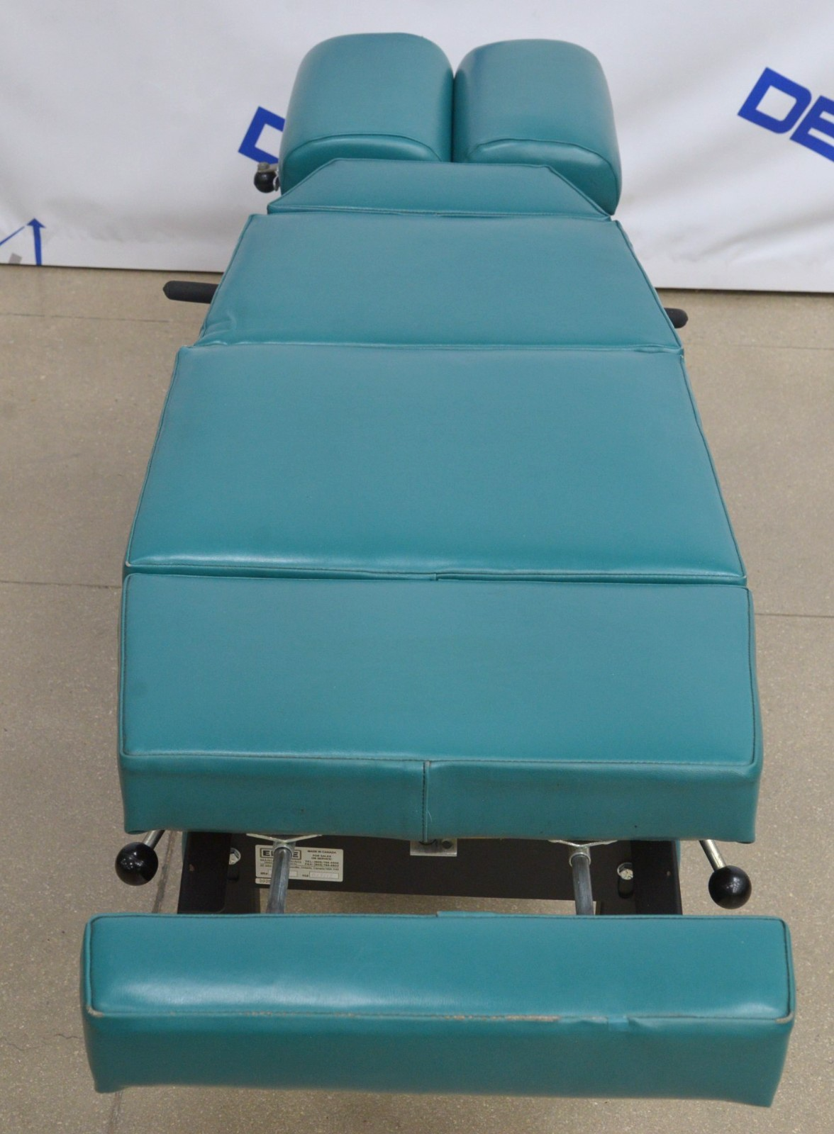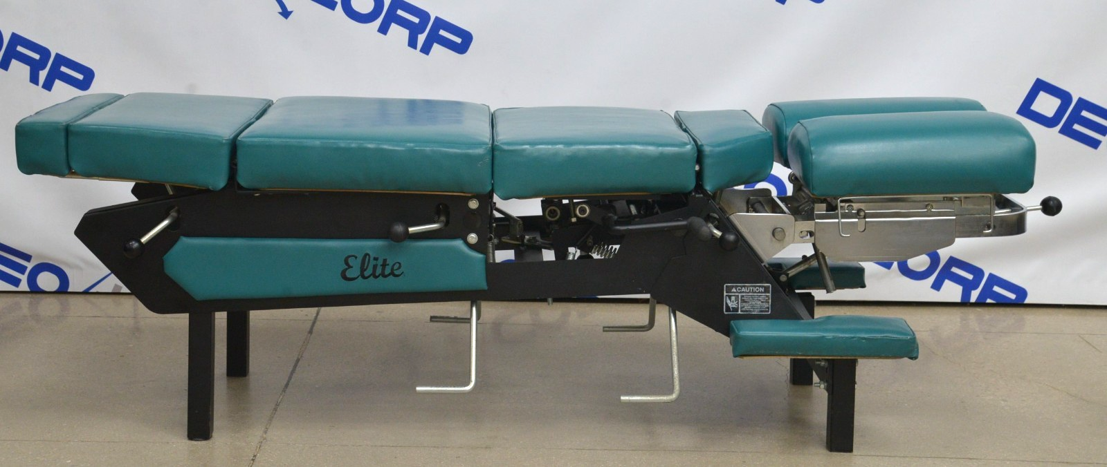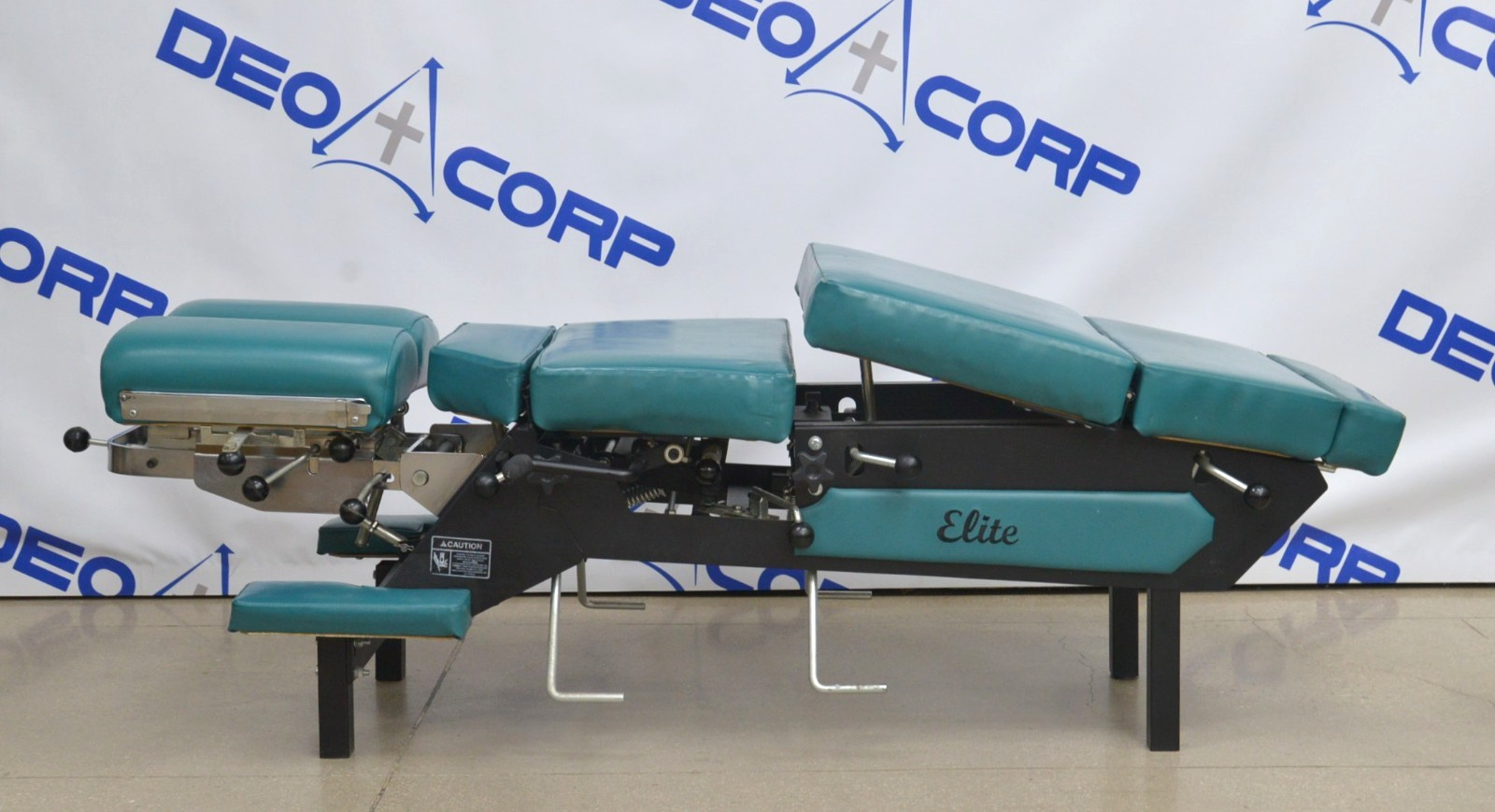 This Elite STA Stationary Chiropractic Table w/ 4 Drops is in great working condition. All manual adjustments move properly. This unit is equipped with manually adjustable head, chest, pelvic, and ankle sections. This unit has a pelvic, thoracic, lumbar and cervical drop. There are minor scuff marks and the upholstery has been repaired on the sides (see photos). This unit comes with a 30 day satisfaction guarantee. Includes everything in the pictures and nothing else.