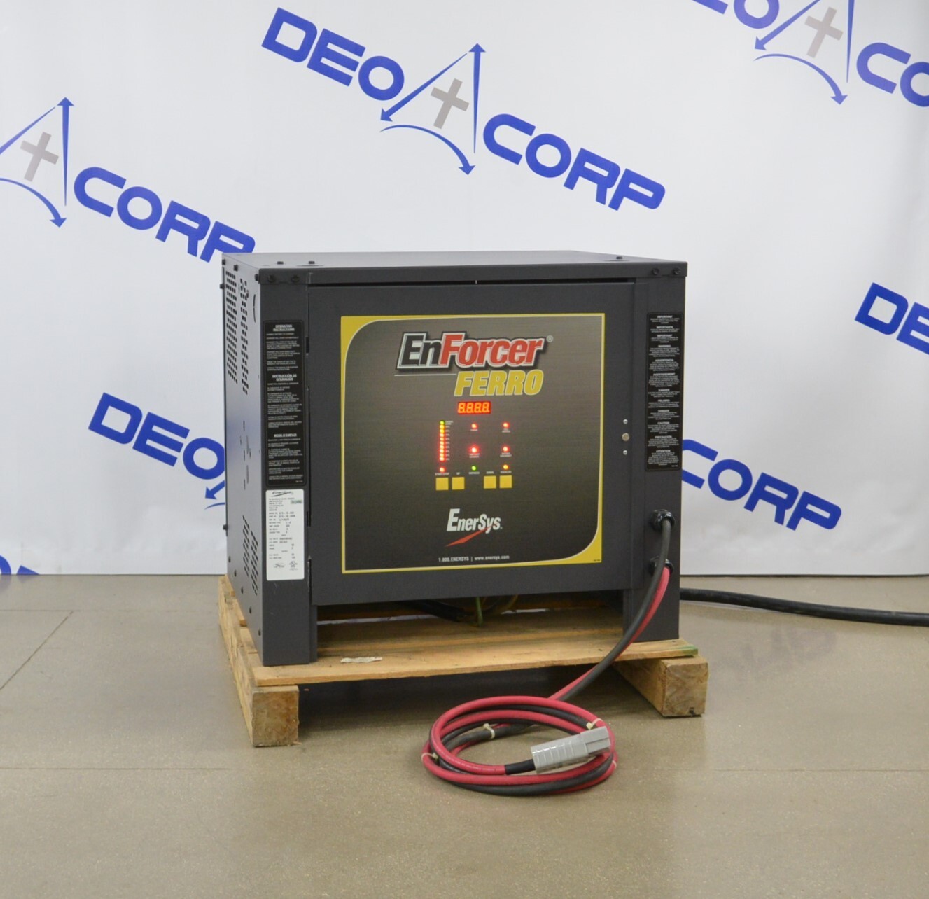 This EnerSys EF3-18-680 EnForcer Ferro Charger 208/240/480 Volts 20/18/9 Amps 3 PH is in great working condition. The unit powers on and responds to selections. This unit was tested at 240 Volts. There are some scuff marks from previous use (see photos). This unit comes with a 30 day satisfaction guarantee. Includes everything in the photos and nothing else.