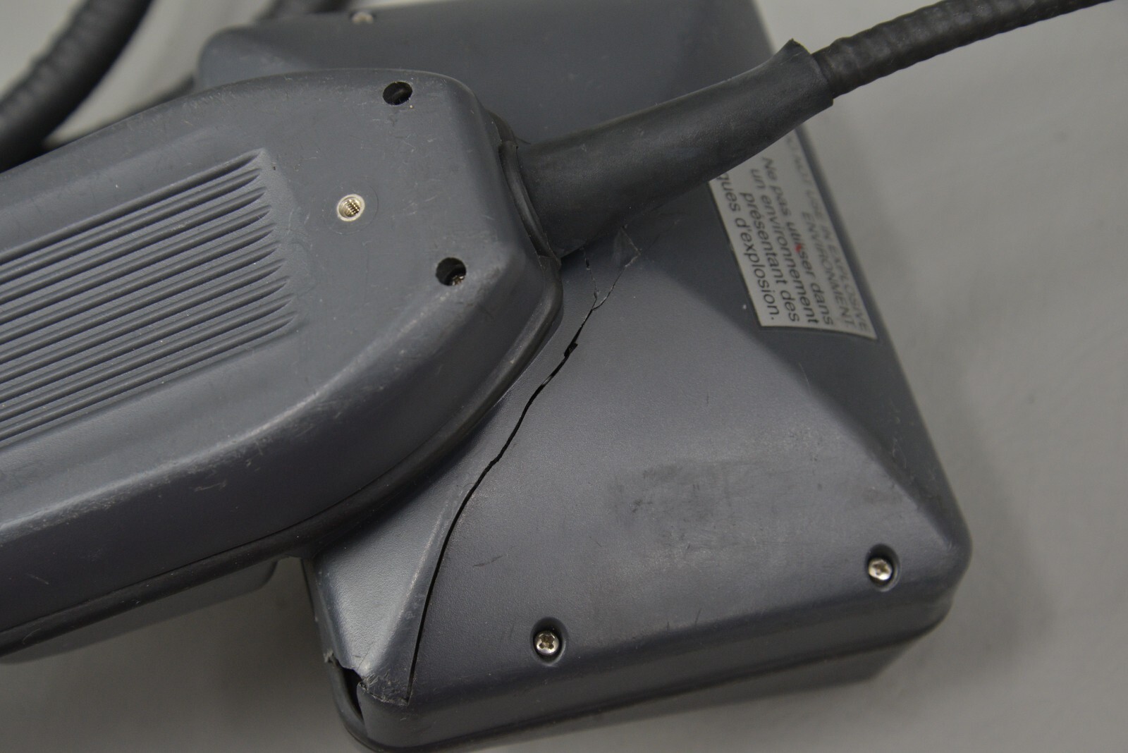 This system powers on and function properly. The insertion tube is in good condition however, the articulating section does not appear to move when the joystick is operated. There is a large crack on the back of the handpiece monitor (see photo). Includes a power cord, replacement bulb, operating manual and rolling case. We do not have the necessary equipment to to test all the video functions on the processor/light source. Includes everything in the pictures and nothing else.
