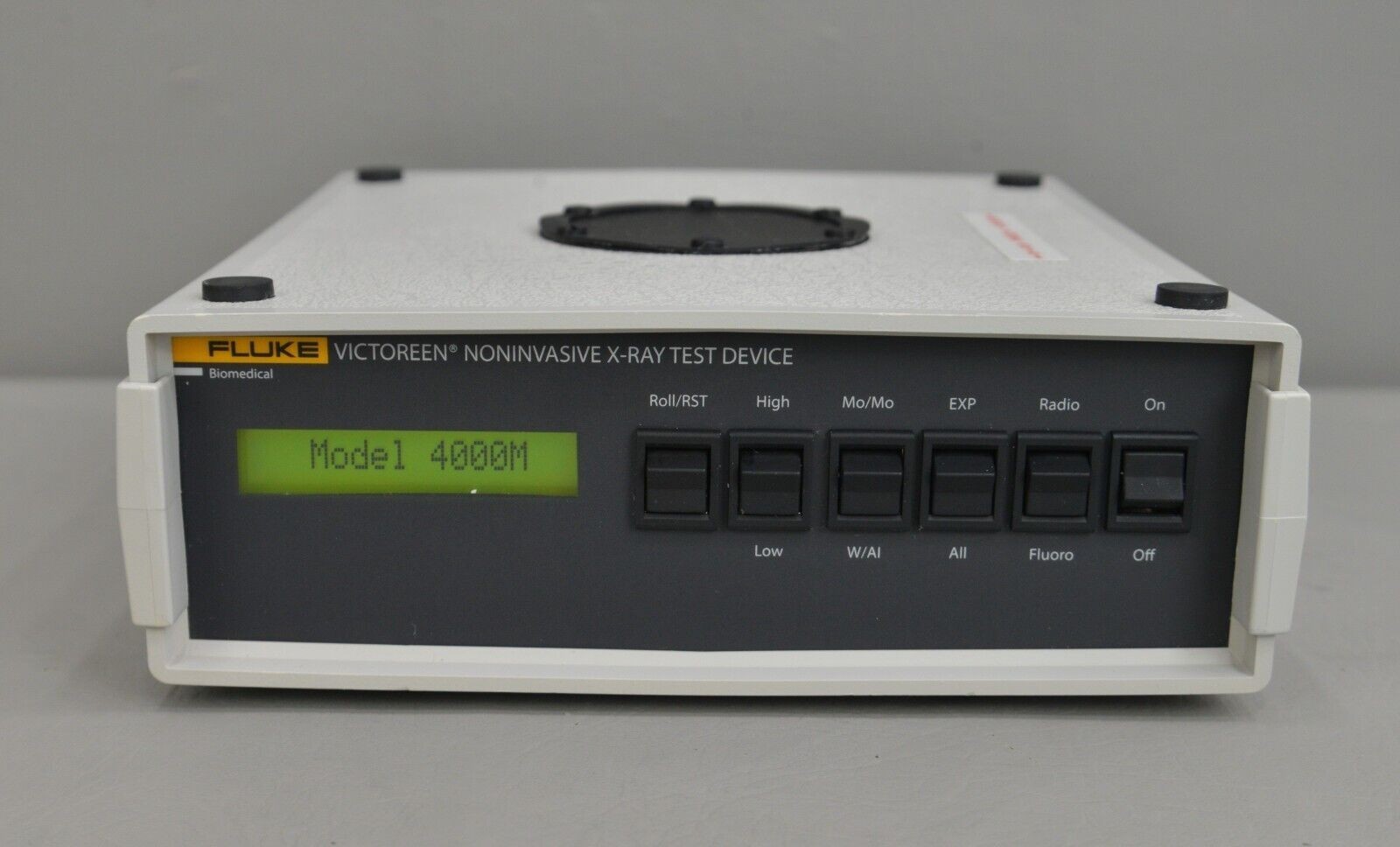 This Fluke Biomedical 4000M+ Victoreen NonInvasive Imaging Test Device is in good working condition. The unit powers on and appears to function properly. The display screen is in good condition and all control switches function properly. Includes a power supply. This unit comes with a 30 day satisfaction guarantee. Includes everything in the pictures and nothing else.