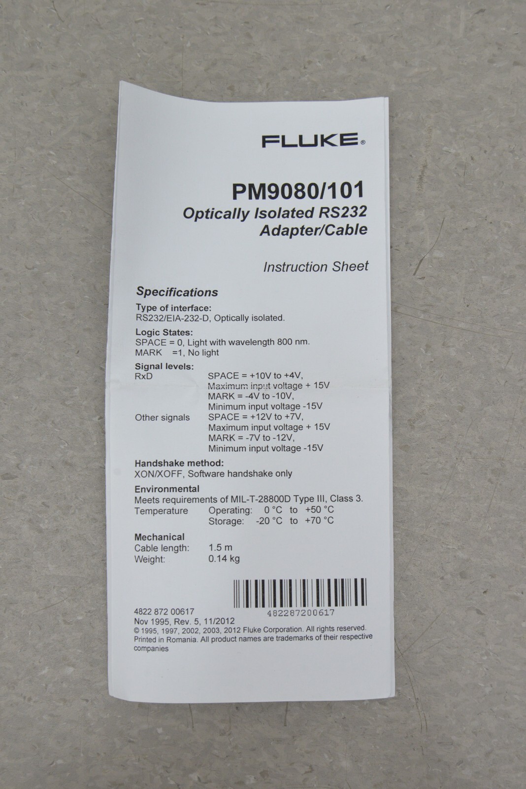 This Fluke Optically Isolated RS232 Interface Adapter Cable PM9080/101 is newThis item comes with a 30 day satisfaction guarantee. Includes everything in the pictures and nothing else.