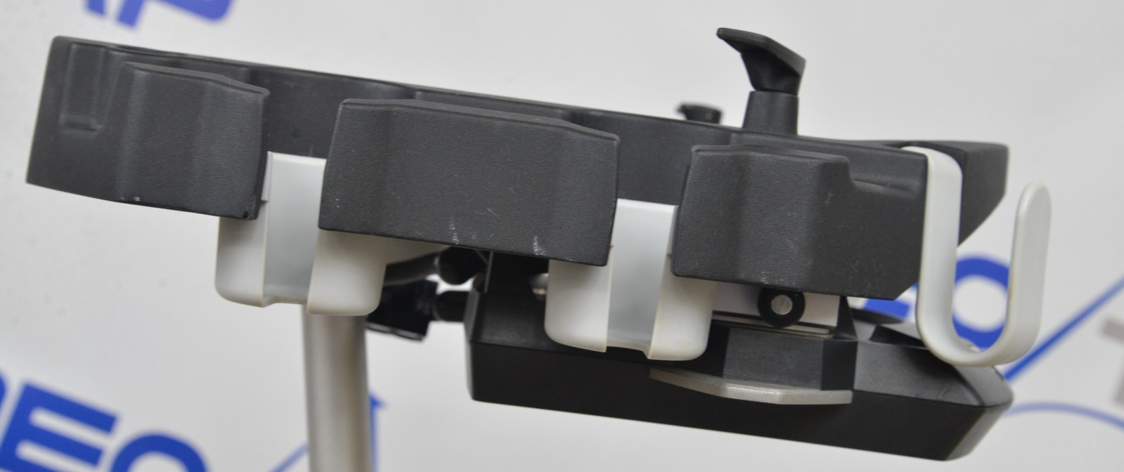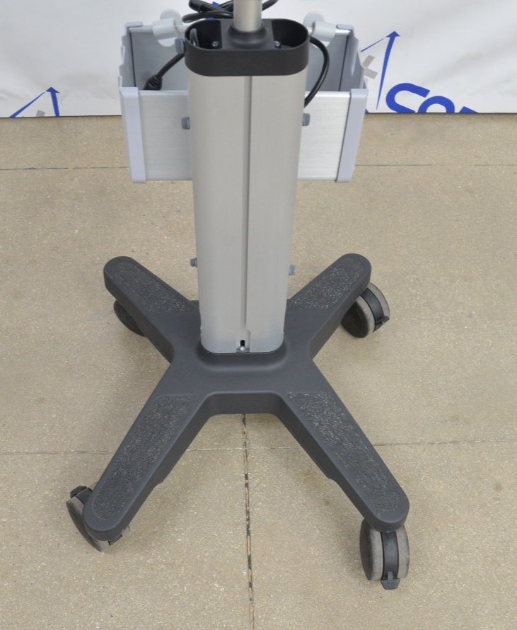 This Fujifilm Sonosite Edge H-Universal Stand P12163-10 w/ Triple Connect P1653 is in great working condition. The connections are clean and in great condition. The wheels roll smoothly and lock securely. There are minor scuff marks from previous use (see photos). This unit comes with a 30 day satisfaction guarantee. Includes everything in the pictures and nothing else.