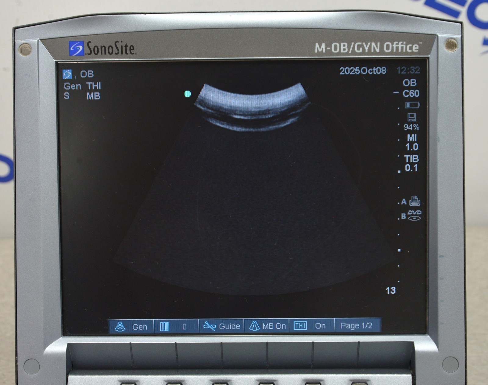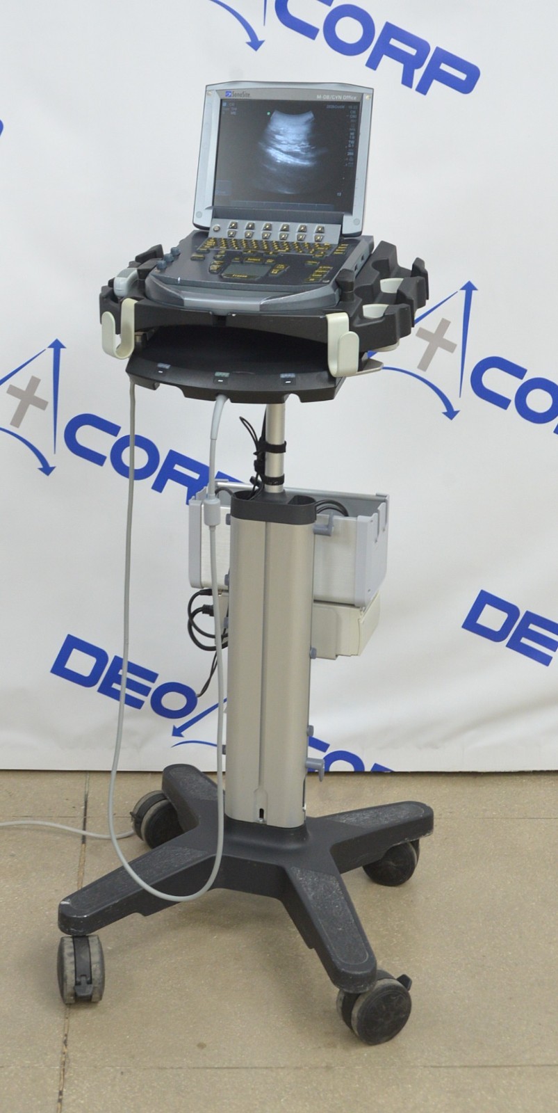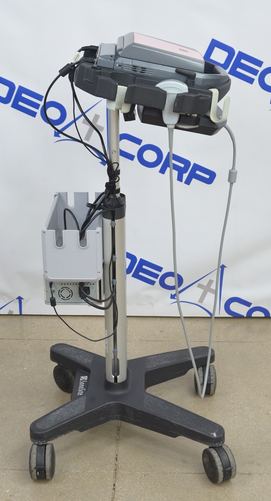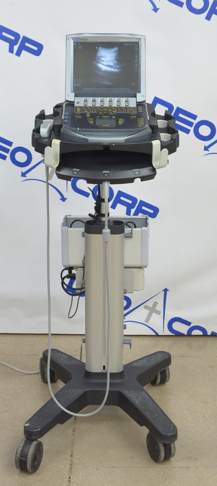 This Fujifilm Sonosite M-Turbo Imaging System P08189-84 w/ C60x/5-2 MHz & Cart is in good working condition. The unit powers on. The display screen produces a clear image and responds properly to selections. The battery holds a charge. The C60x/5-2 MHz captures a clear image. There are some minor scuff marks from previous use (see photos). This unit comes with a 30 day satisfaction guarantee. Includes everything in the pictures and nothing else.
