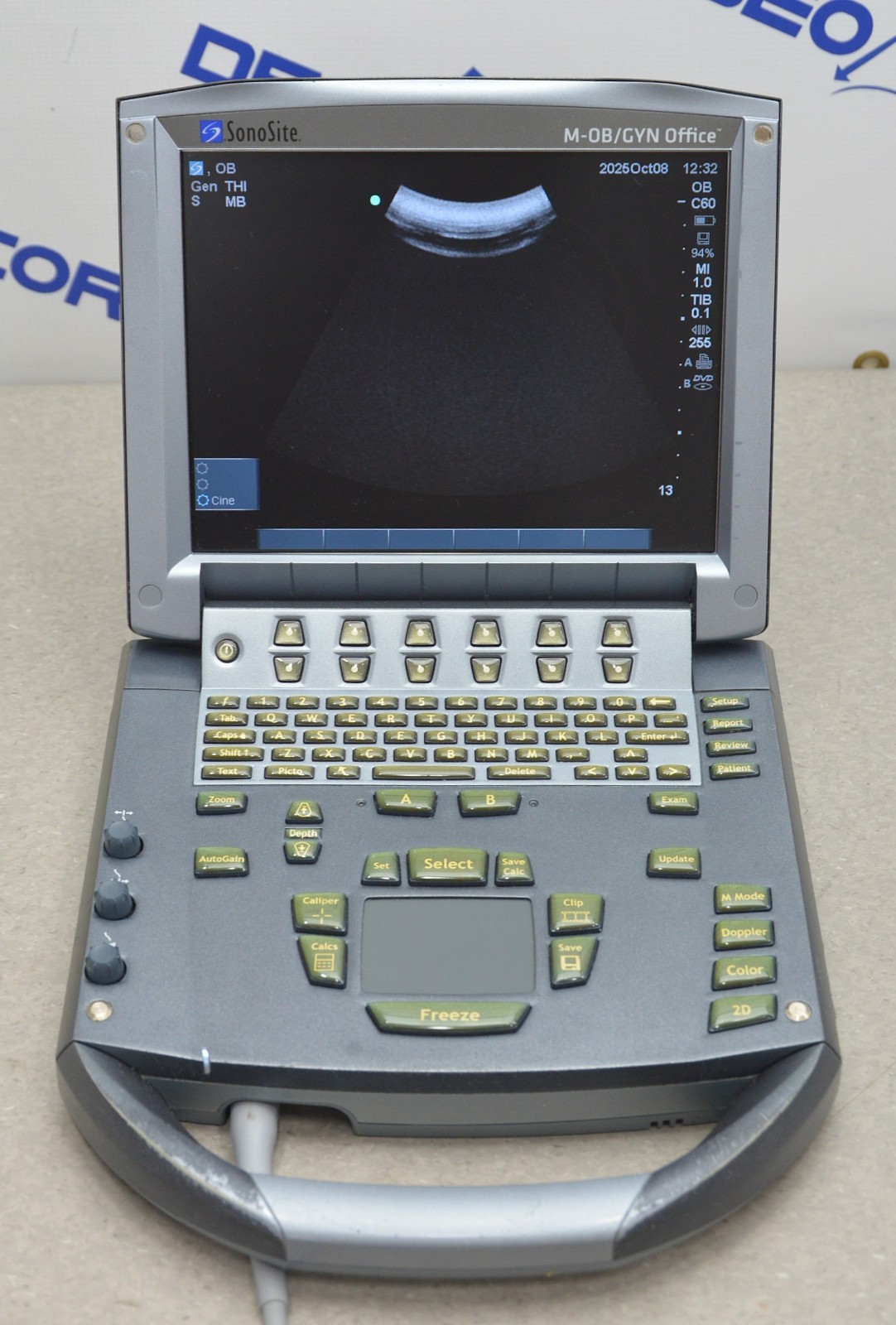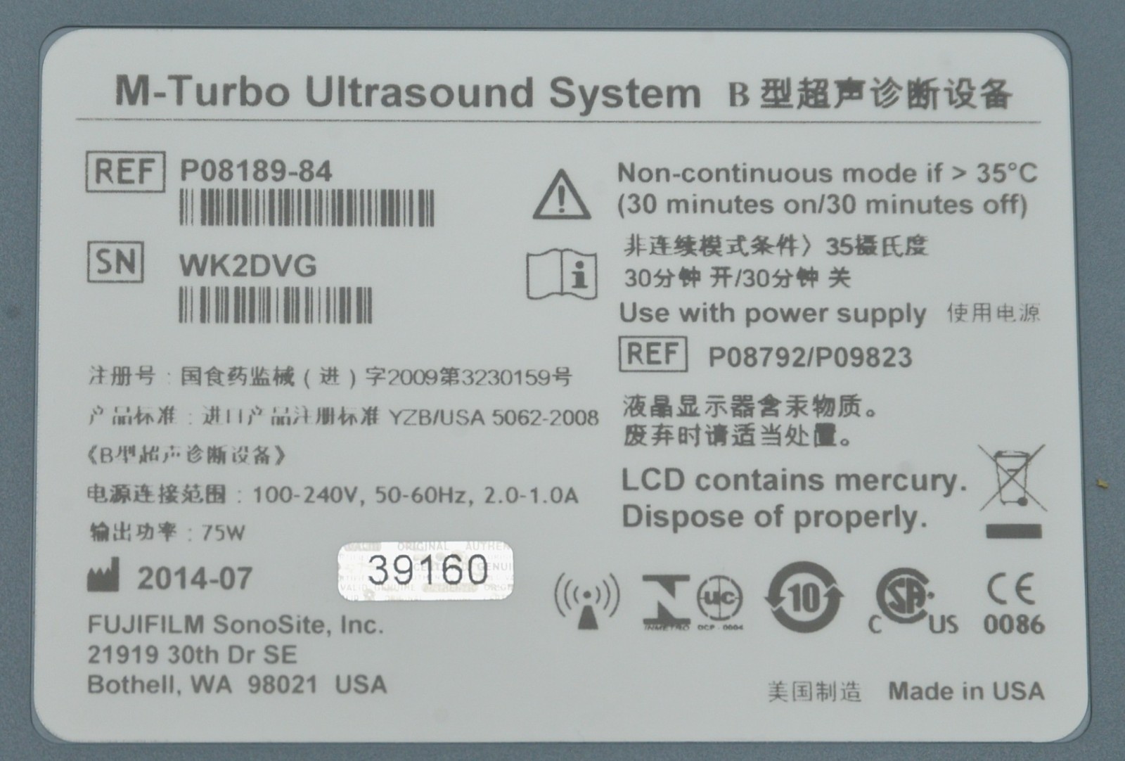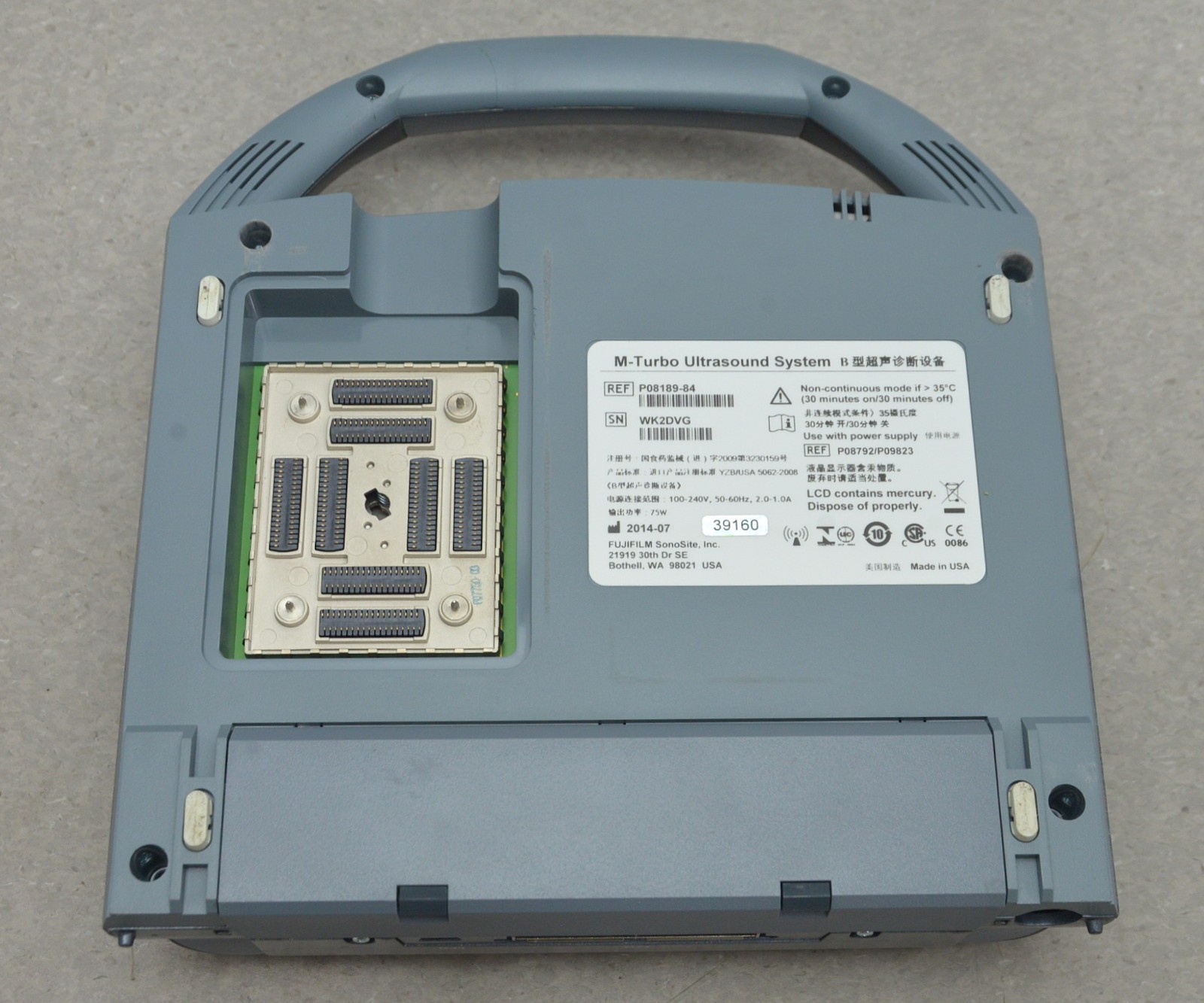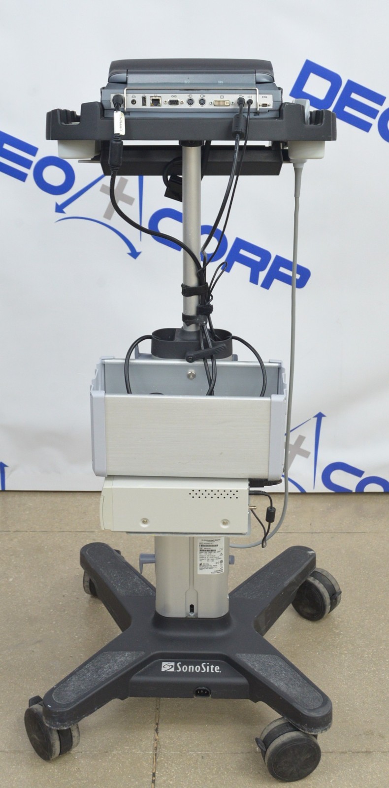 This Fujifilm Sonosite M-Turbo Imaging System P08189-84 w/ C60x/5-2 MHz & Cart is in good working condition. The unit powers on. The display screen produces a clear image and responds properly to selections. The battery holds a charge. The C60x/5-2 MHz captures a clear image. There are some minor scuff marks from previous use (see photos). This unit comes with a 30 day satisfaction guarantee. Includes everything in the pictures and nothing else.