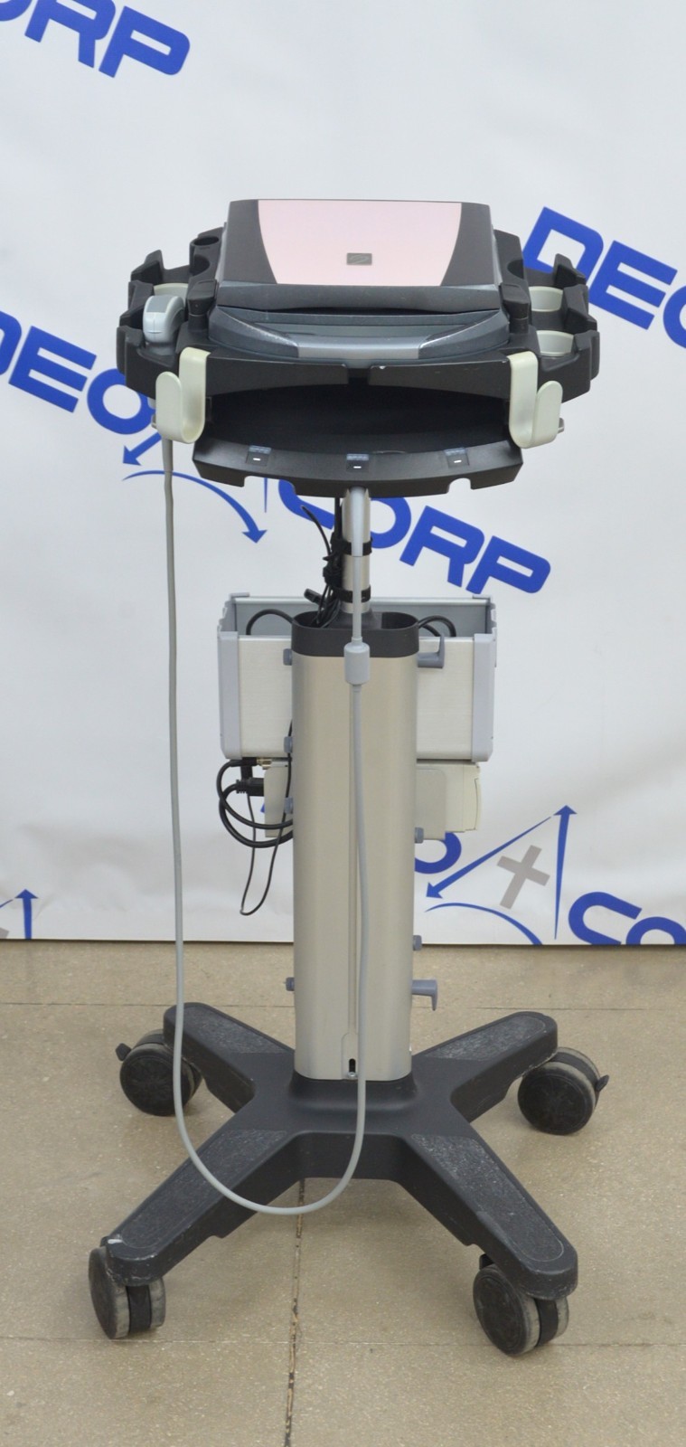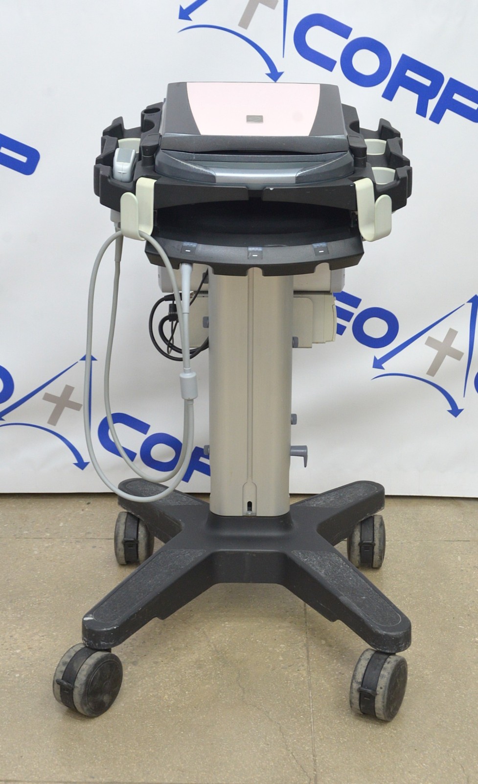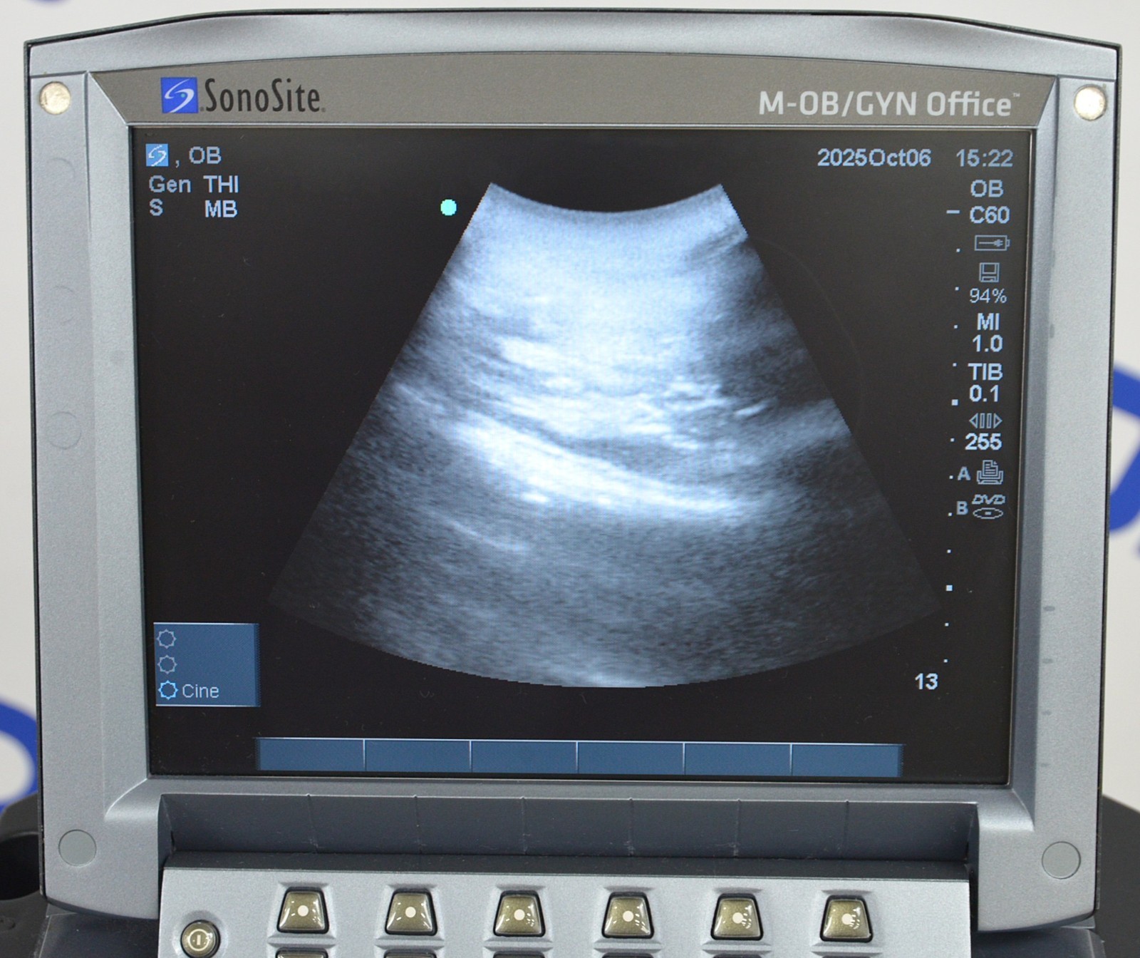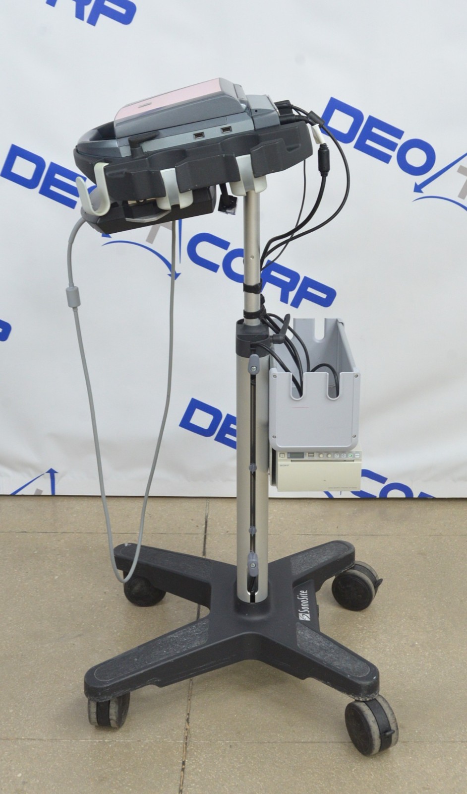 This Fujifilm Sonosite M-Turbo Imaging System P08189-84 w/ C60x/5-2 MHz & Cart is in good working condition. The unit powers on. The display screen produces a clear image and responds properly to selections. The battery holds a charge. The C60x/5-2 MHz captures a clear image. There are some minor scuff marks from previous use (see photos). This unit comes with a 30 day satisfaction guarantee. Includes everything in the pictures and nothing else.