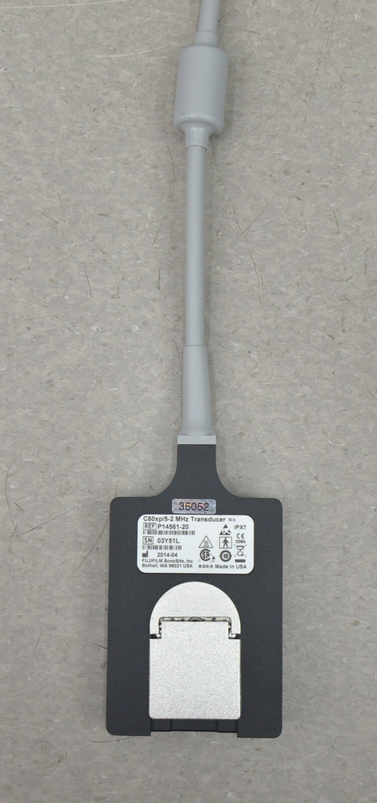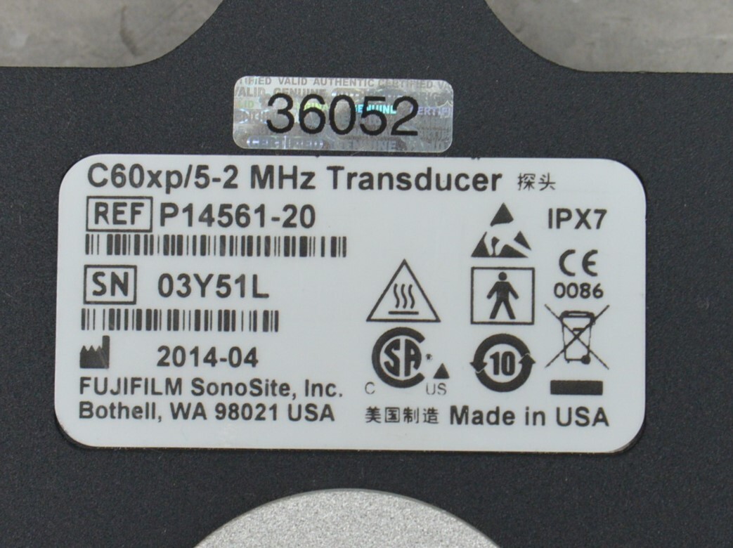 This FujiFilm SonoSite X-Porte C60xp/5-2 MHz Curved Array P14561-20 is in good working condition. This unit produced a clear image. The connection is clean and in good condition. There is minor discoloration from pervious use (see photos). This unit was tested on a system that is not included. This unit comes with a 30 day satisfaction guarantee. Includes everything in the pictures and nothing else.