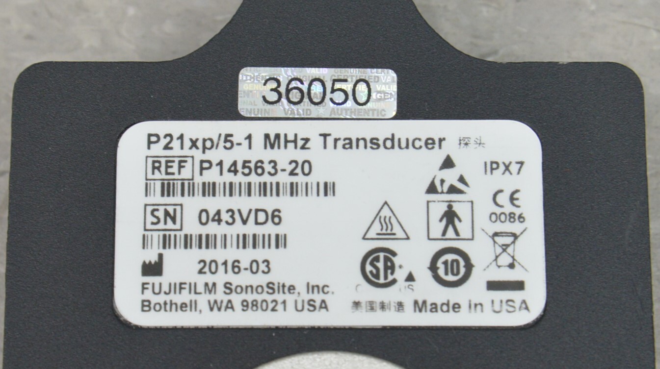 This FujiFilm Sonosite X-Porte P21xp/5-1 MHz P14563-20 is in great working condition. This unit produces a clear image. The connection is clean and in good condition. This unit appears to have little use. This unit was tested with a system that is not included. This unit comes with a 30 day satisfaction guarantee. Includes everything in the pictures and nothing else.