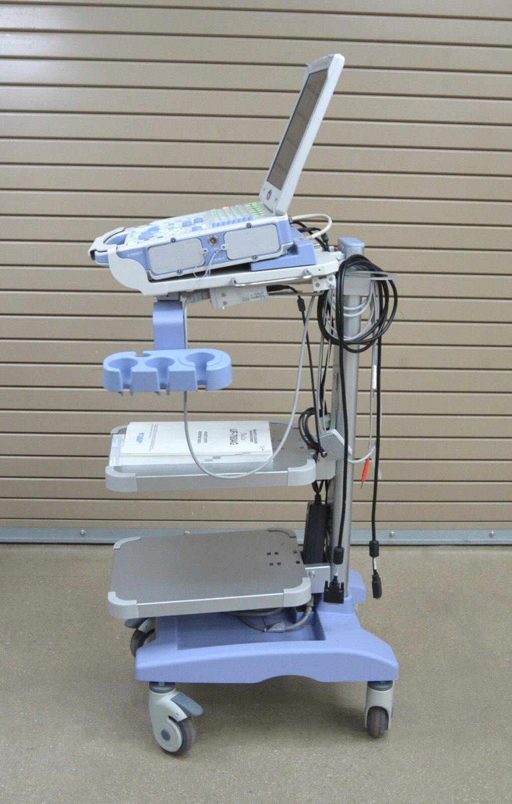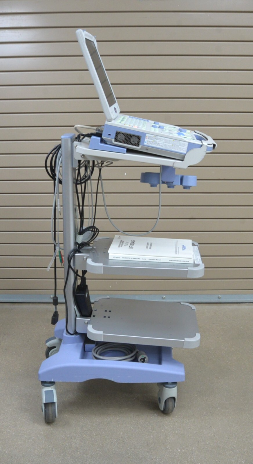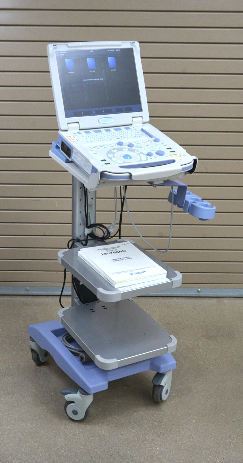 This Fukuda Denshi PaoLus UF-760AG Portable Color System With Cart is in great working condition. The unit powers on properly. The display screen produces a clear image and responds properly to selection. The battery holds a charge. There are some minor scuff marks from previous use (see photos). This unit comes with a 30 day satisfaction guarantee. Includes everything in the pictures and nothing else.