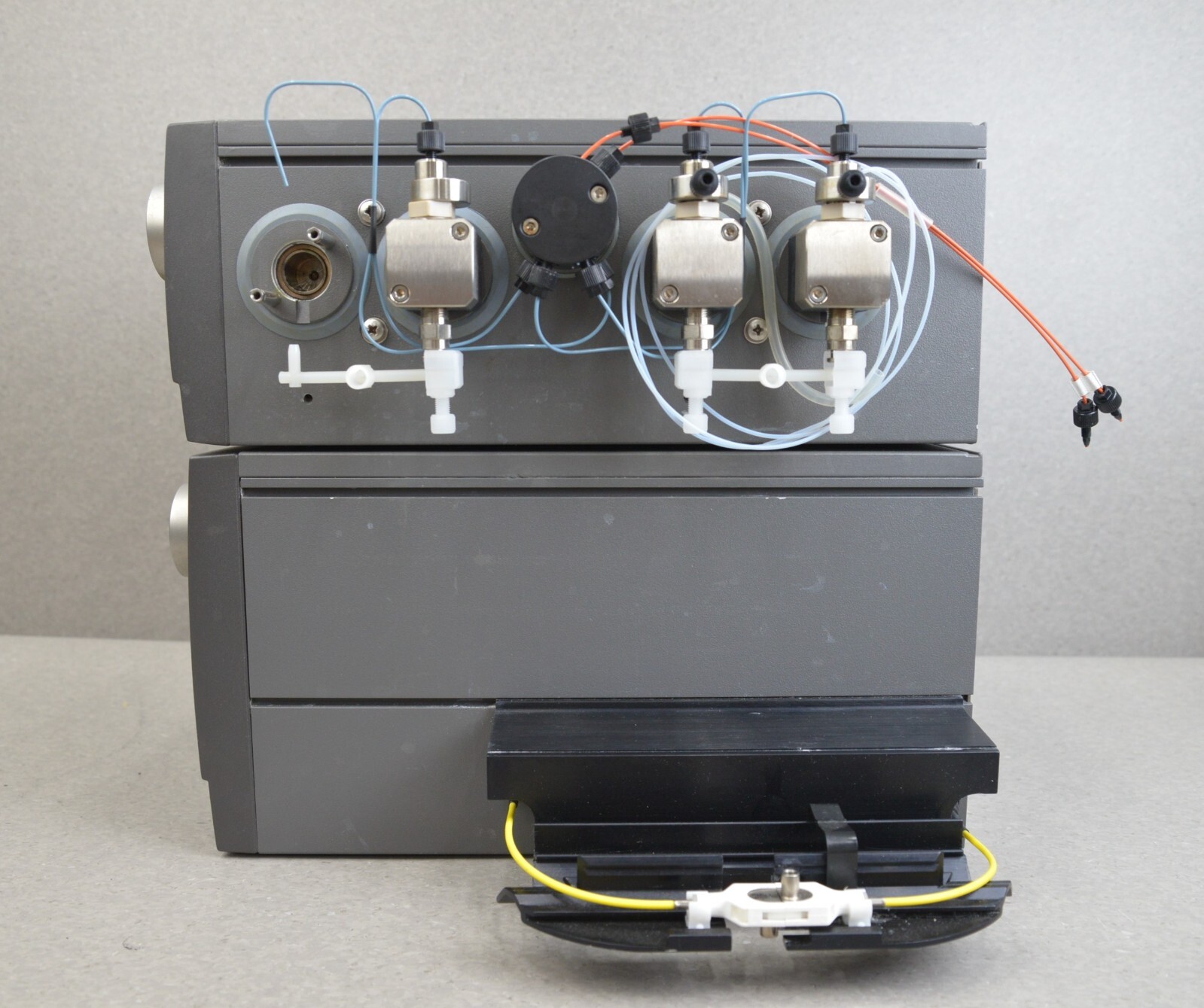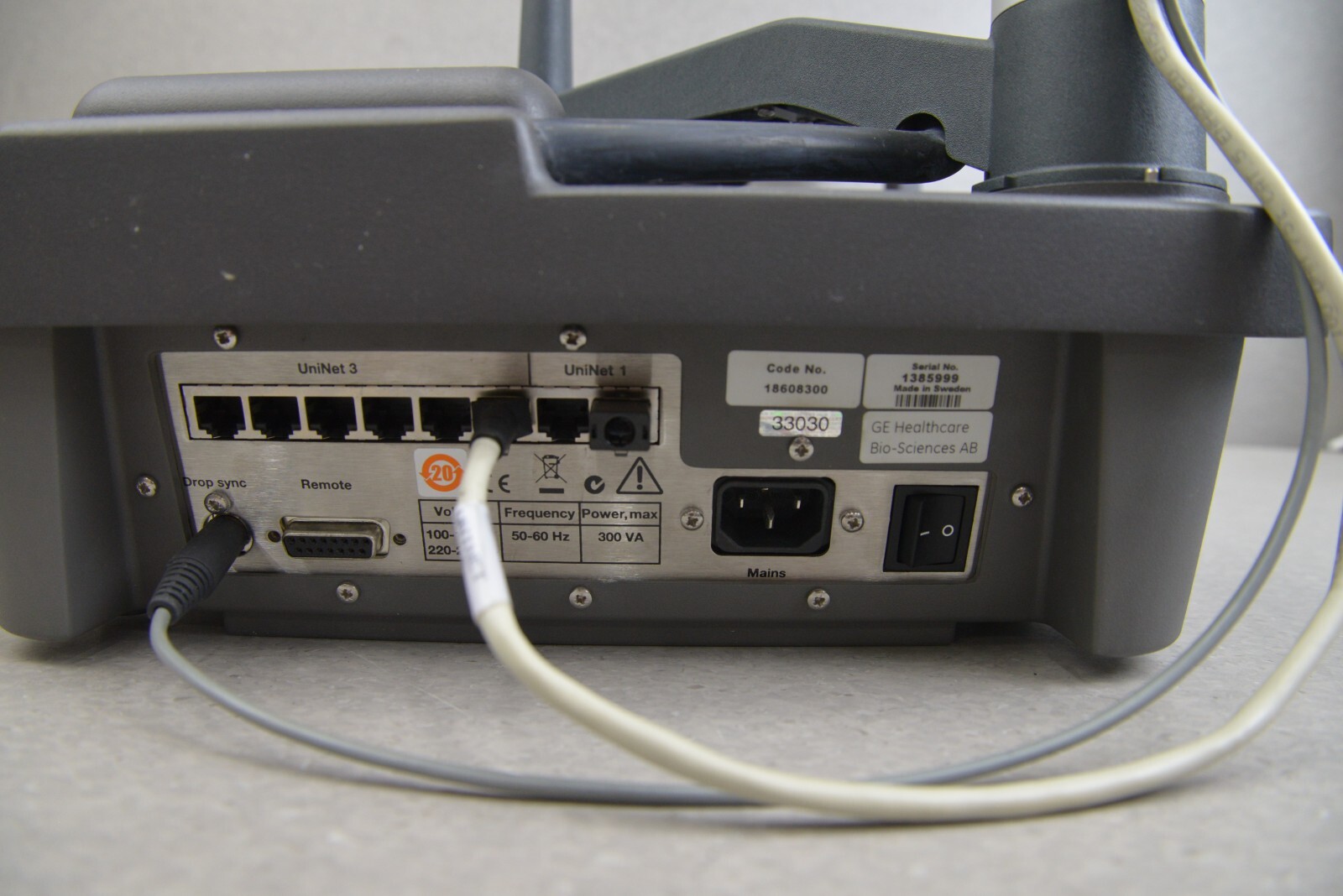 This GE (Amersham Pharmacia) Bio-Sciences AB Fraction Collector System is from a working facility. This system powers on properly. All the connection points are clean and in good condition. The over all cosmetic condition is good with the exception of some scuff marks from previous use (see photos). This unit comes with a 30 day satisfaction guarantee. Includes everything in the pictures and nothing else.