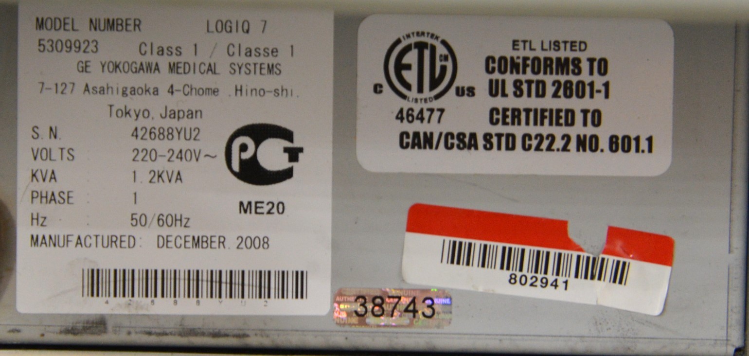GE Logiq 7 Imaging System 5309923 W/ GE 9L & 4C Handpieces