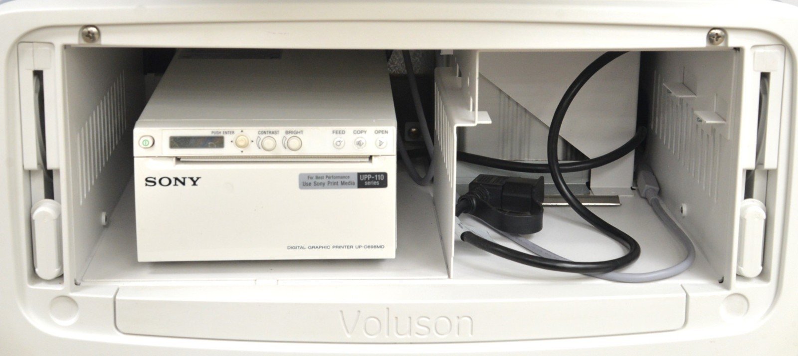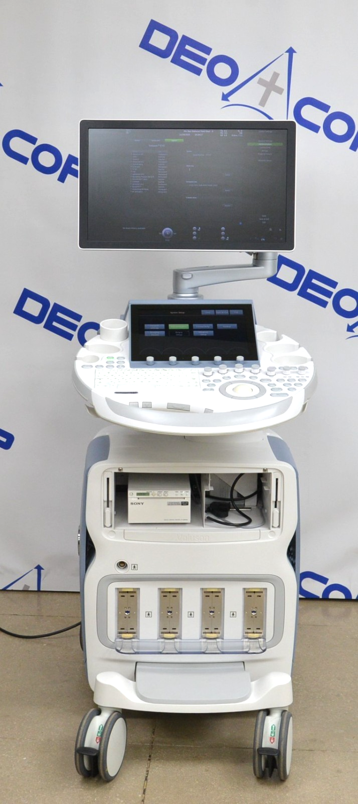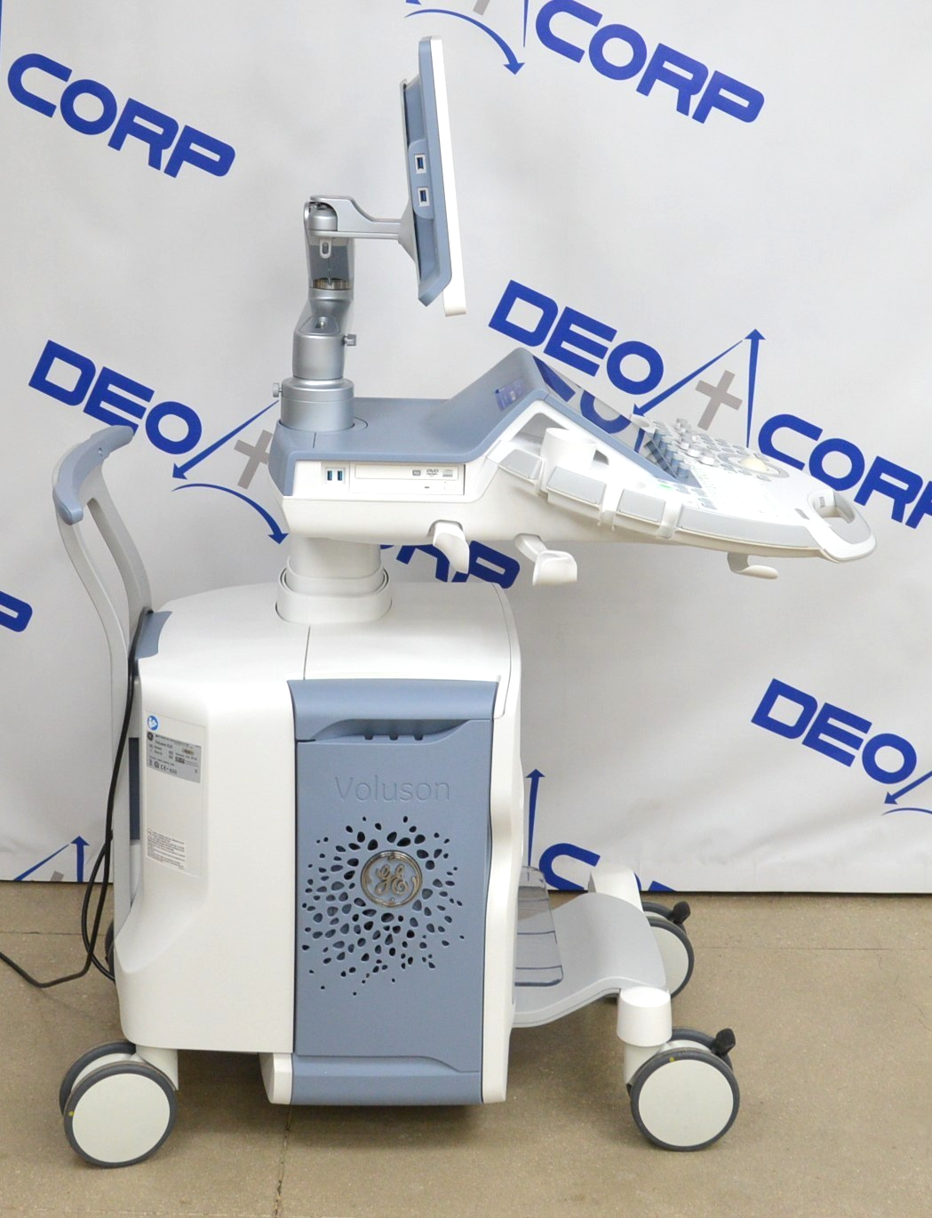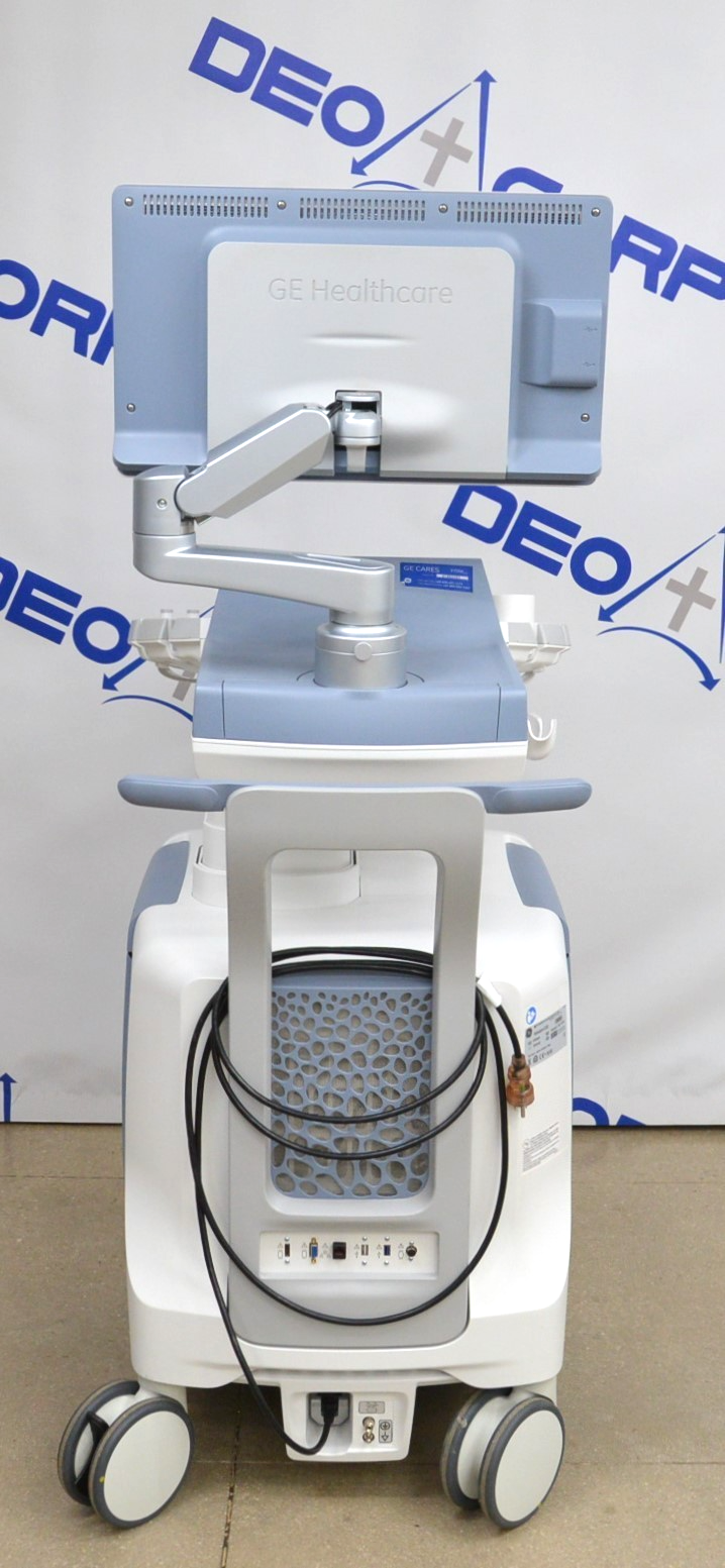 This GE Voluson E10 Imaging System BT16 is in excellent working condition. The system powers on properly. The display screens produce a clear image and respond to all selections. The connections are clean and in good condition. There are minor scuff marks and a crack on one of the handpiece holders from previous use (see photos). A handpiece was used to test but is not included. This unit comes with a 30 day satisfaction guarantee. Includes everything in the pictures and nothing else.