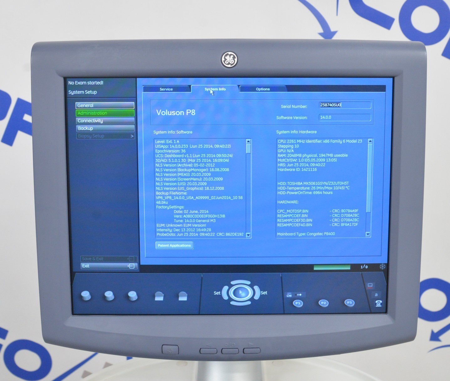 This GE Voluson P8 Imaging System 5447244 is in good cosmetic condition. The system powers on; however, it requires a software license activation key, meaning there are features that cannot be accessedFor this reason, this unit is being sold for parts. The display screen produces a clear image and responds to selections. The connections are clean and in good condition. There are minor scuff marks, and cracks from previous use (see photos). Includes everything in the pictures and nothing else.