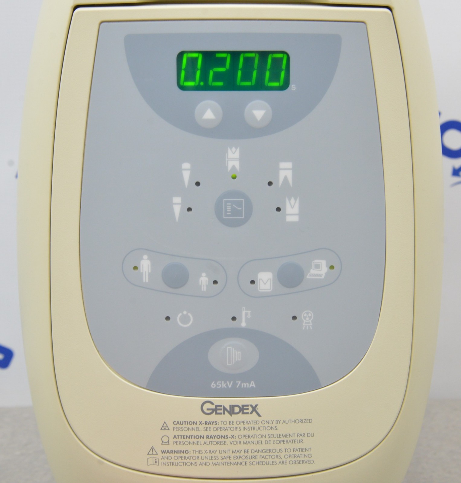 This Gendex Expert DC Dental Intraoral Master Control System 110-0205G1 is in good working condition. The unit powers on properly and responds to selections. There are scuff marks, discoloration, and scratches from previous use (see photos). The “Error 3” message is due to the unit not being connected to a tube head, which is not included. Appropriate field wiring will need to be provided by qualified personnel to meet the specific electrical and code requirements of the buyer’s application. This unit comes with a 30 day satisfaction guarantee. Includes everything in the pictures and nothing else.