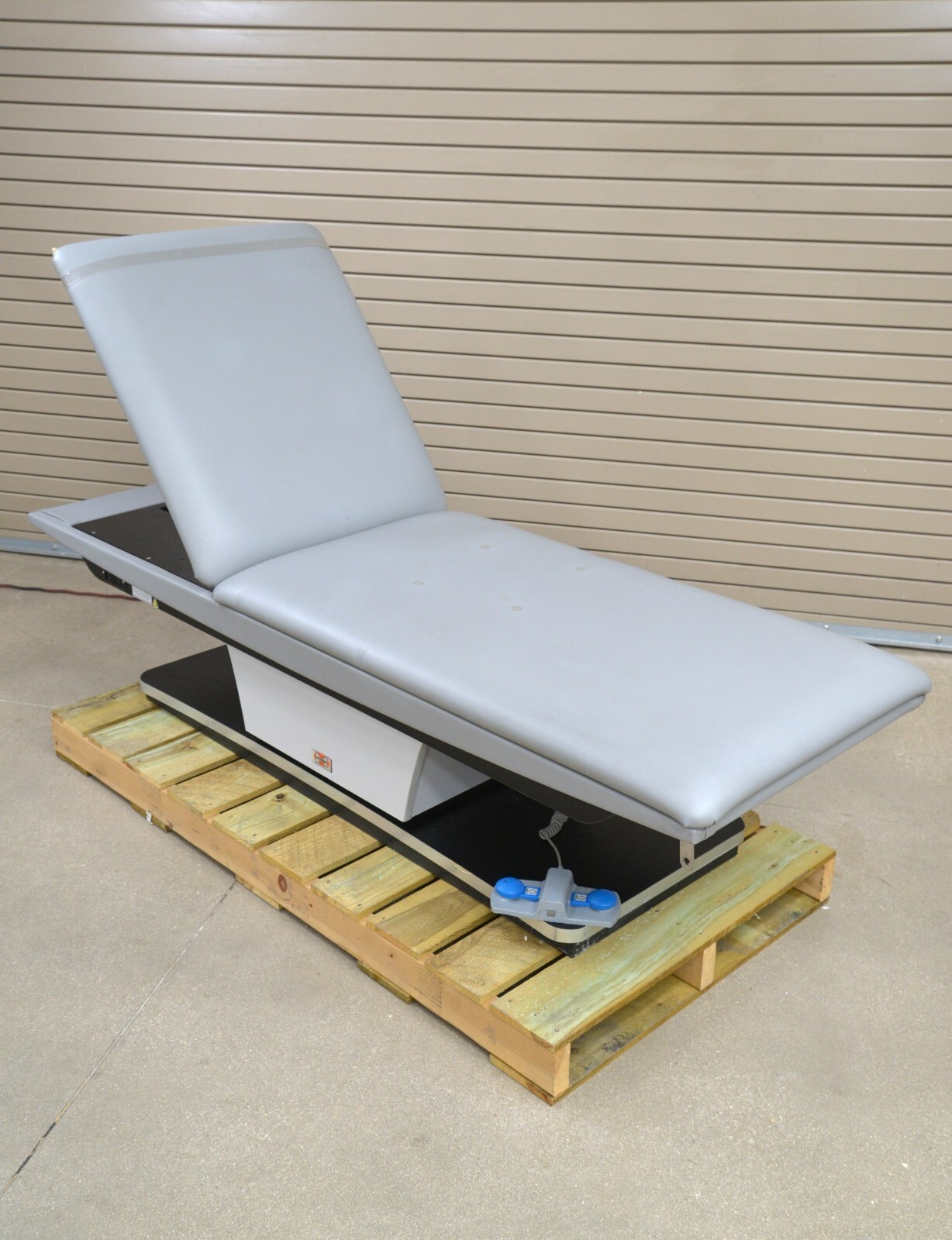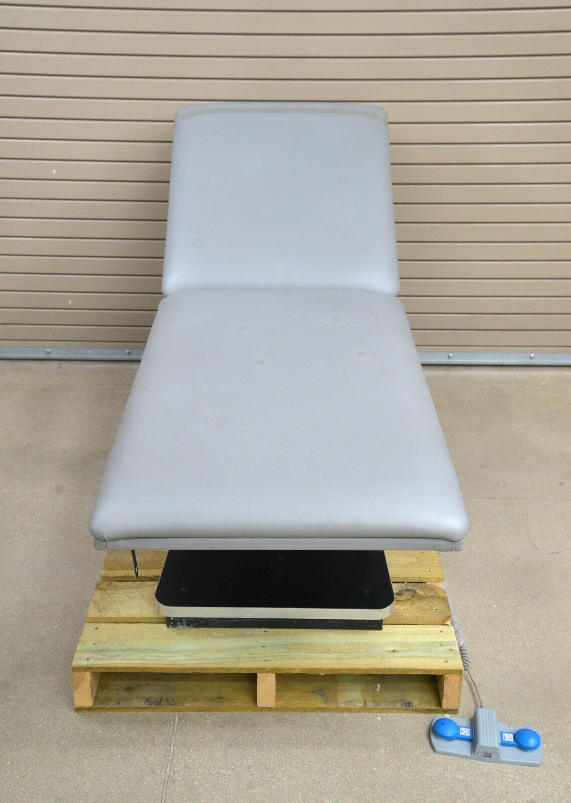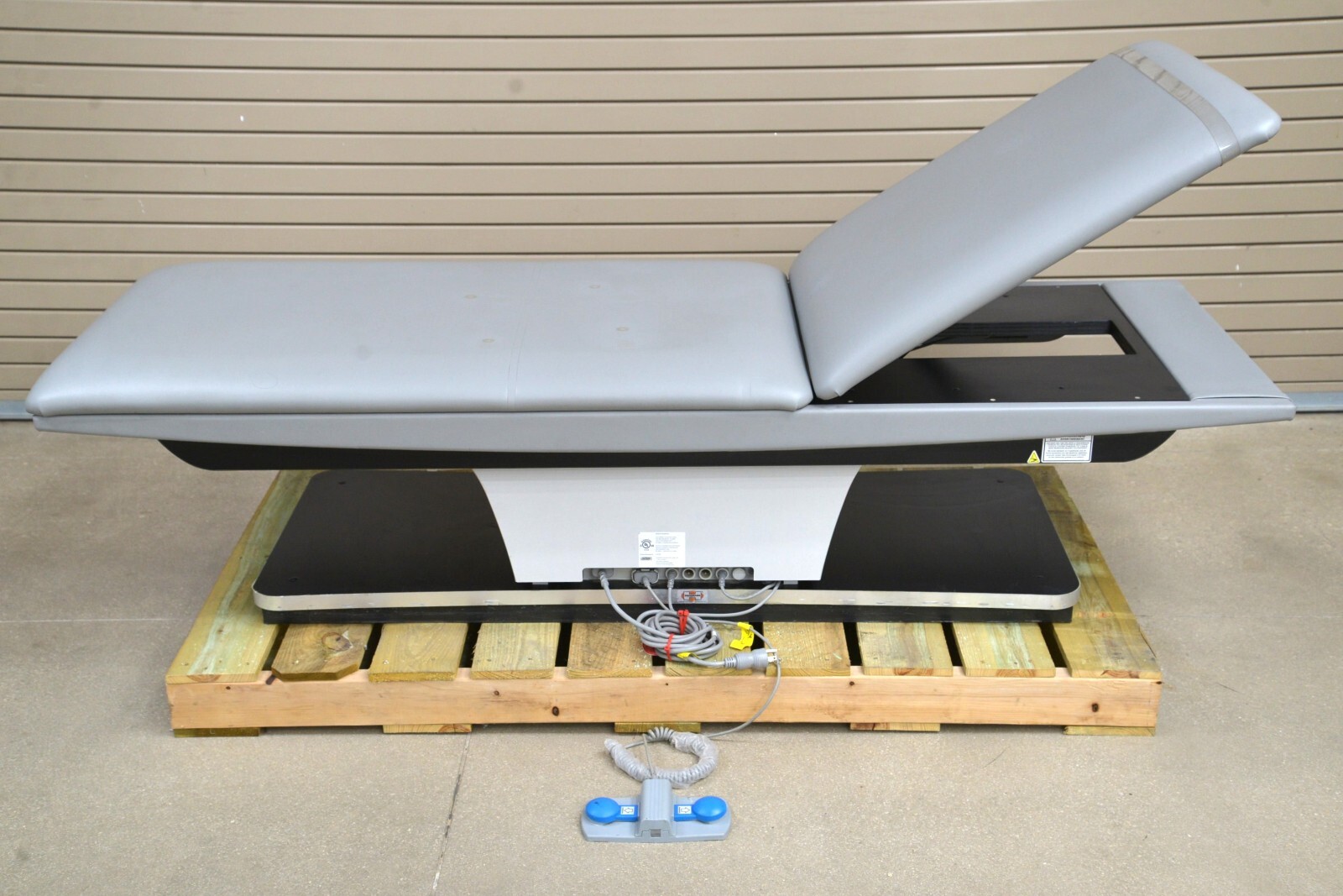This treatment table is in good working condition. The foot switch and all manual table levers adjust the table properly.  The upholstery is in good condition with the exception of a couple small tares associated with previous use and has some shipping damages (see photos). There is a missing bracket for the paper dispenser and cutter. Includes a foot pedal and power cord. This unit comes with a 30 day money back guarantee! Includes everything in the pictures and nothing else.